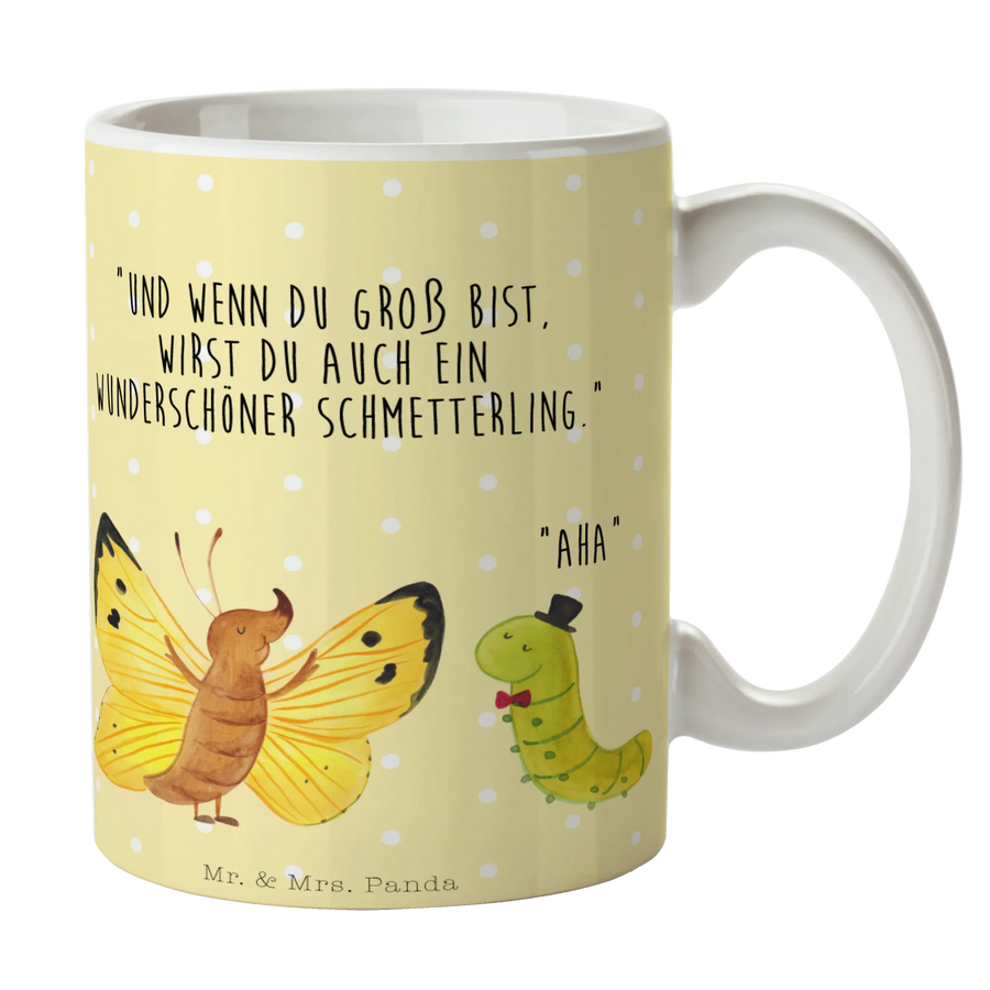 Kubek gąsienica motyl - z napisem - Ceramika - Pastelowy żółty