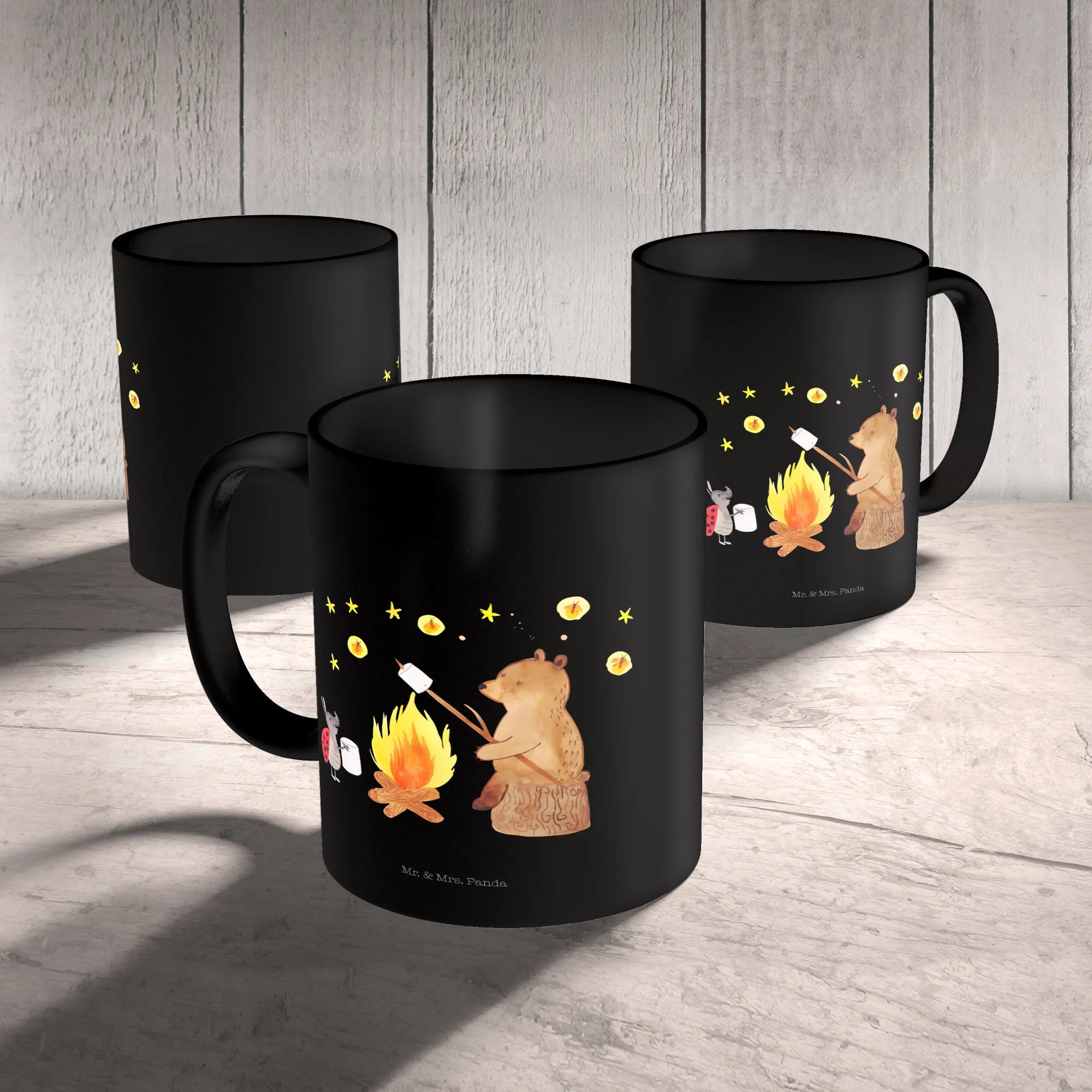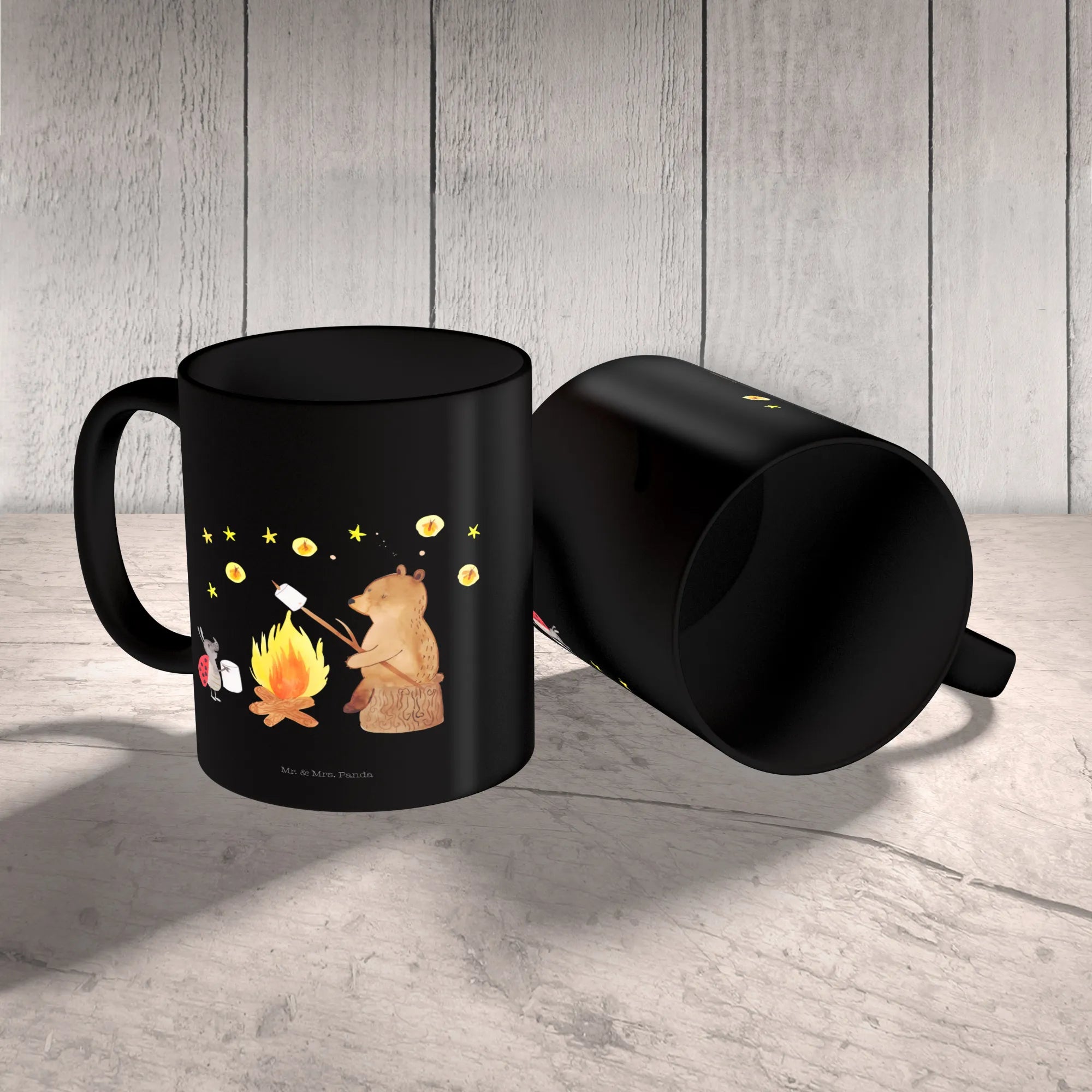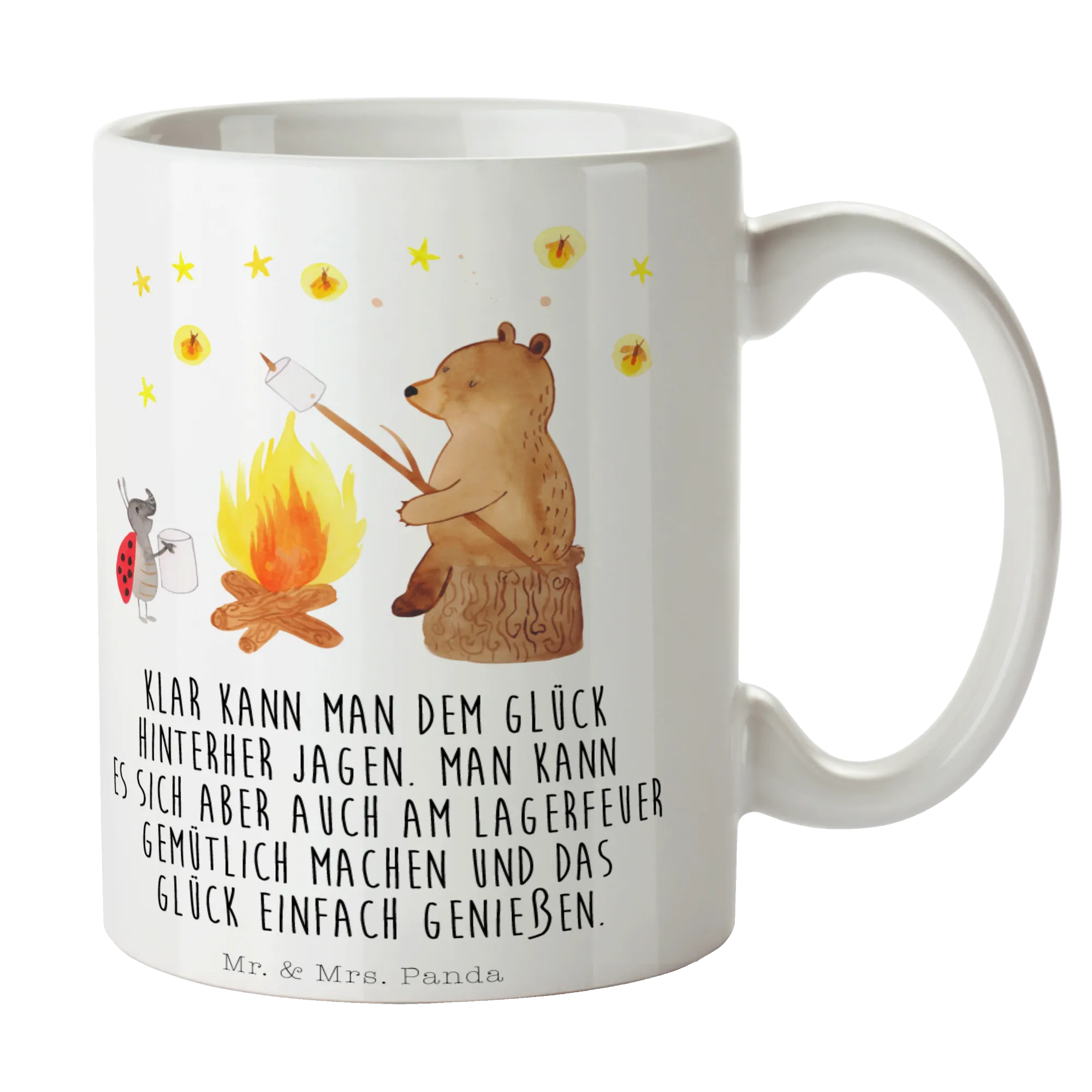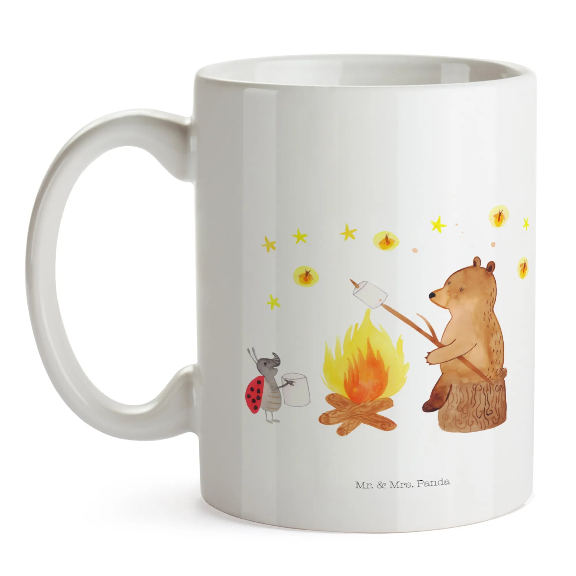 Kubek Niedźwiedź i biedronka przy ognisku - z napisem - Ceramika - biały