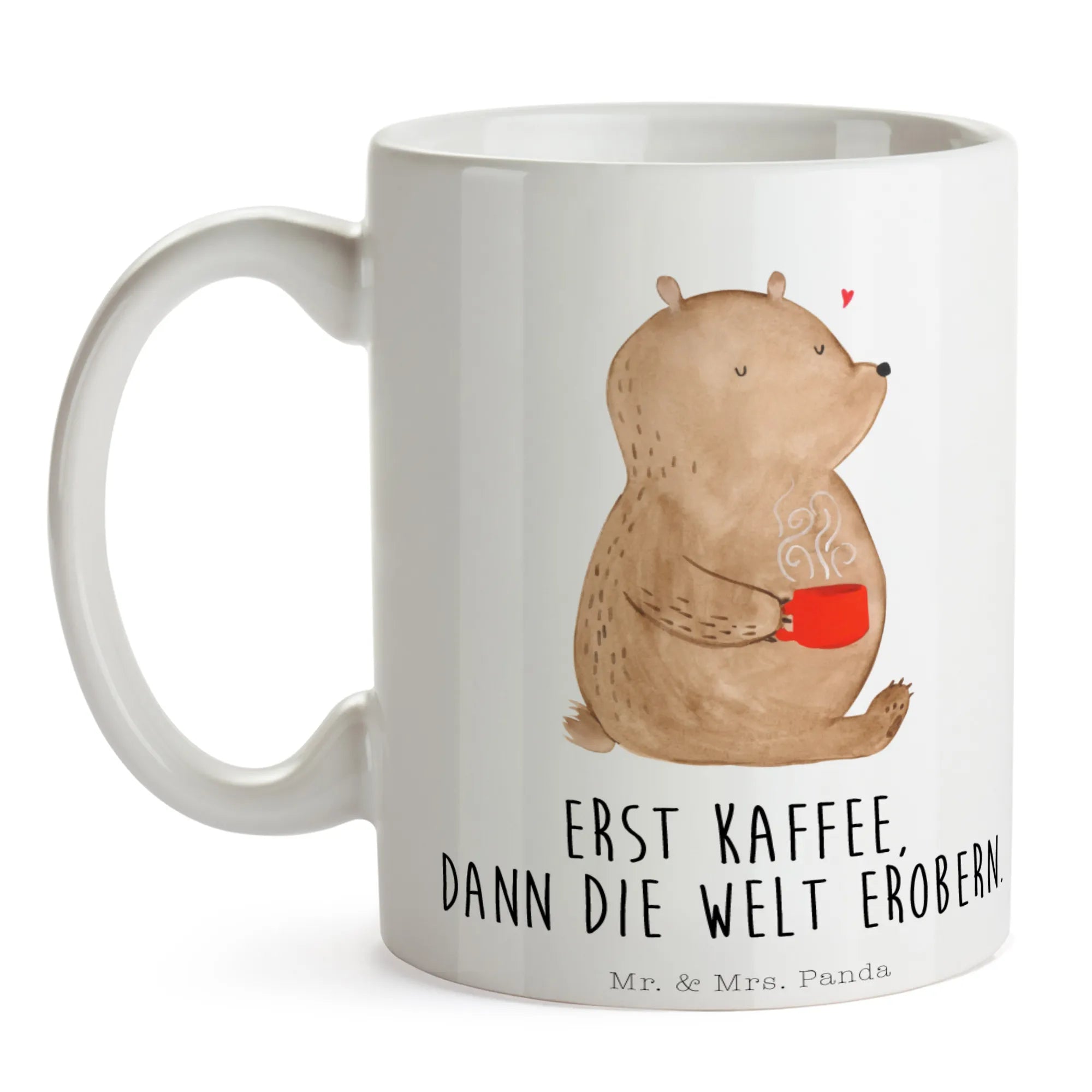 Kubek Niedźwiedź kawa - z napisem - Ceramika - Biały