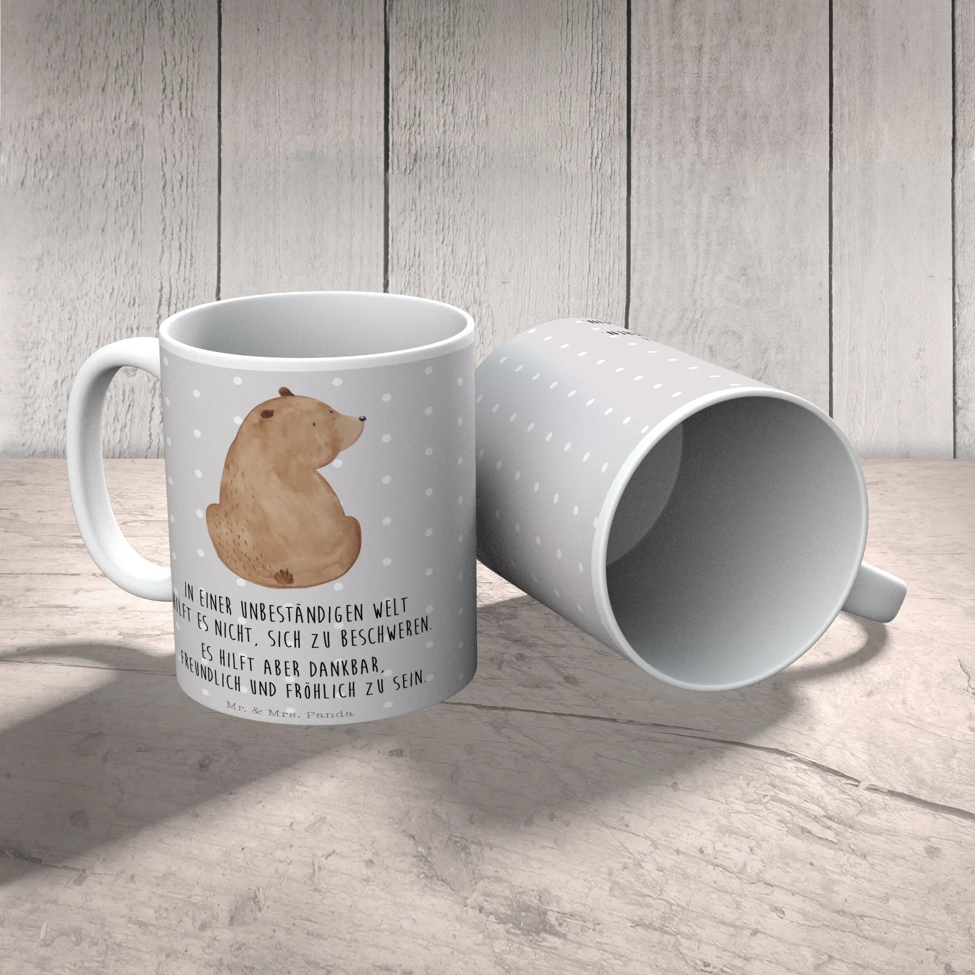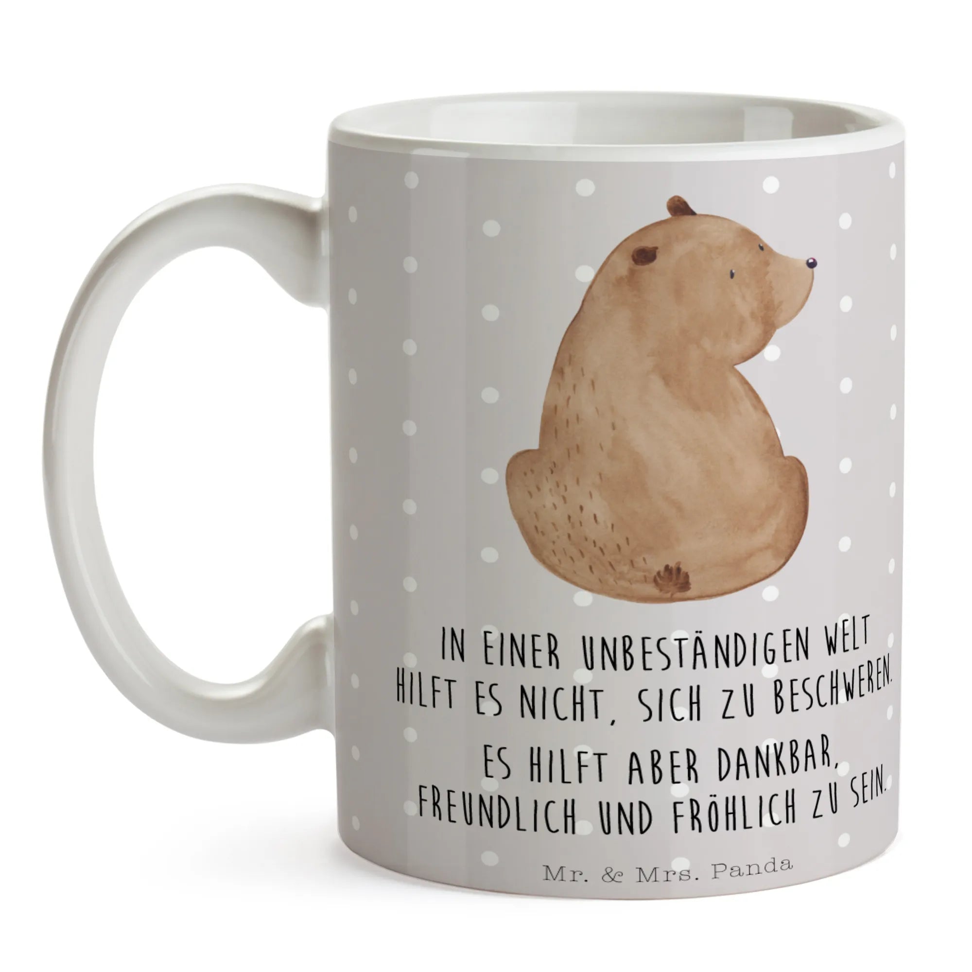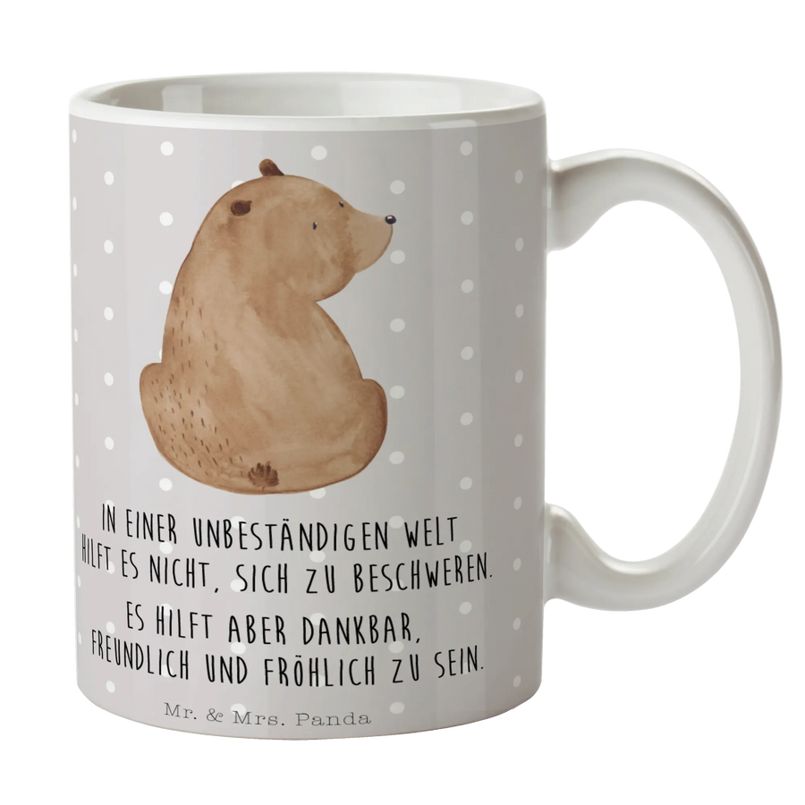 Kubek niedźwiedź spojrzenie przez ramię - z napisem - Ceramika - Szary Pastel