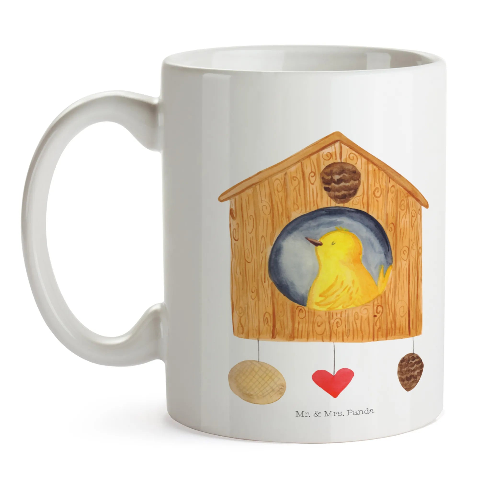 Kubek ptasi domek Strona główna - z napisem - Ceramika - biały