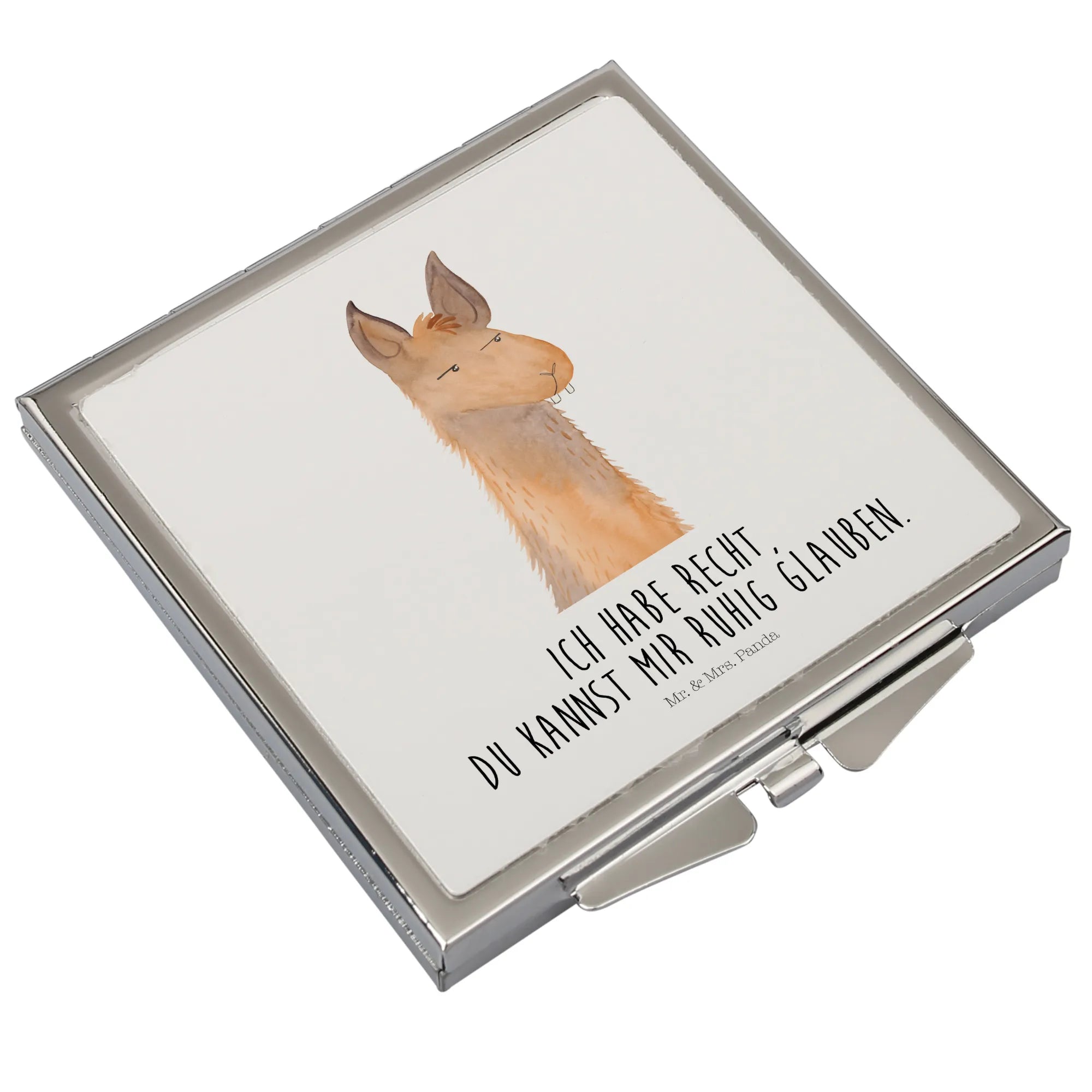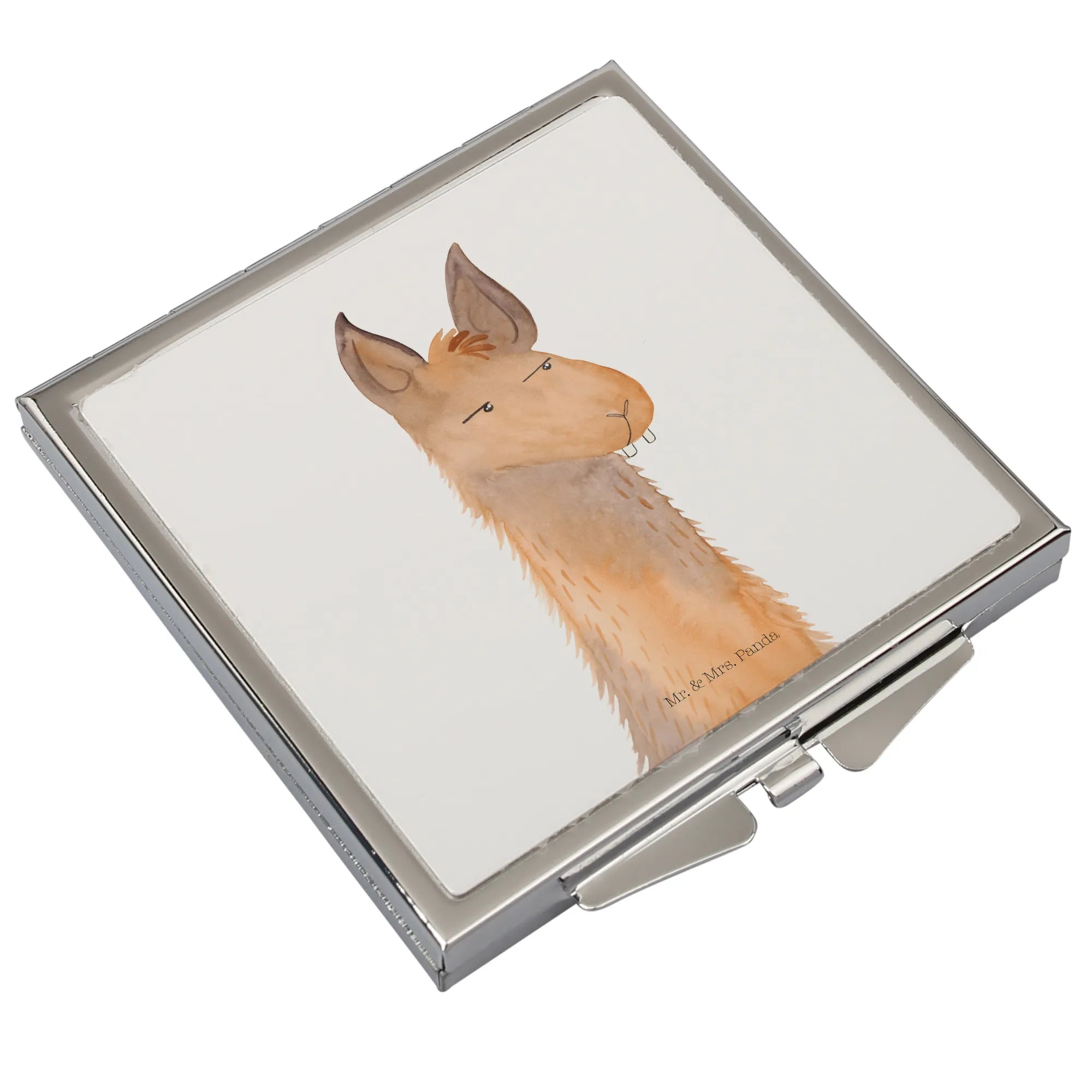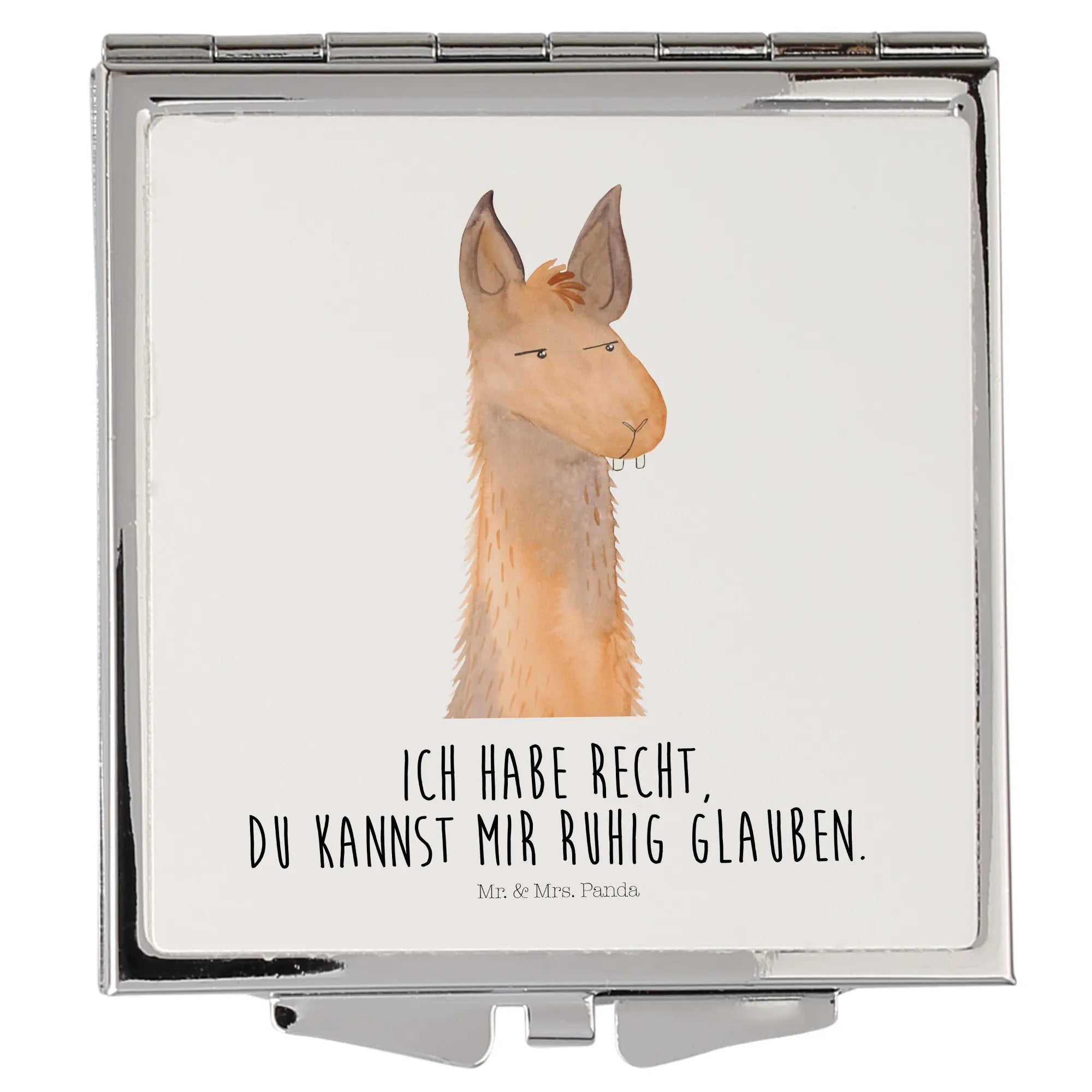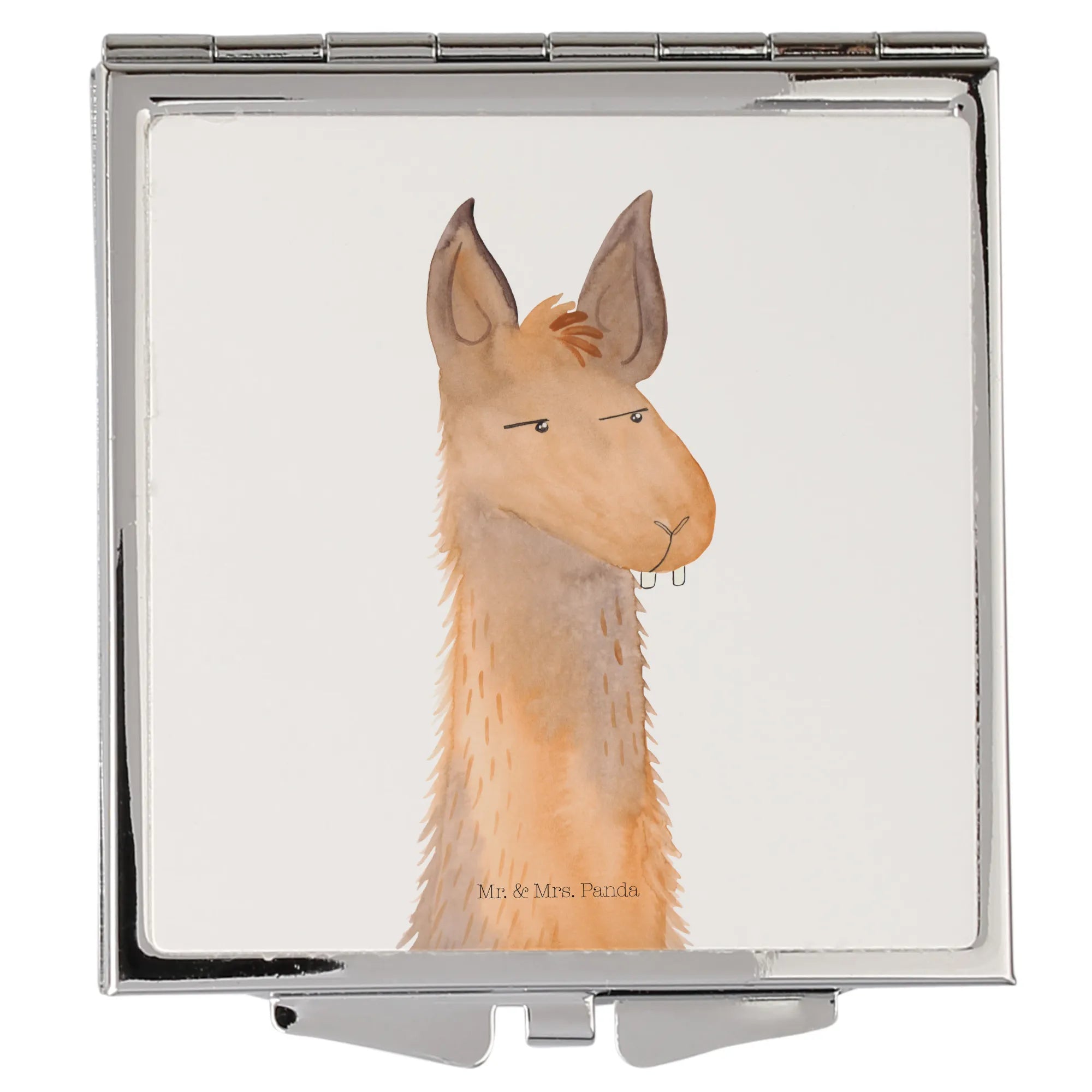 Kwadratowe lusterko do torebki głowa lamy zirytowany - z napisem