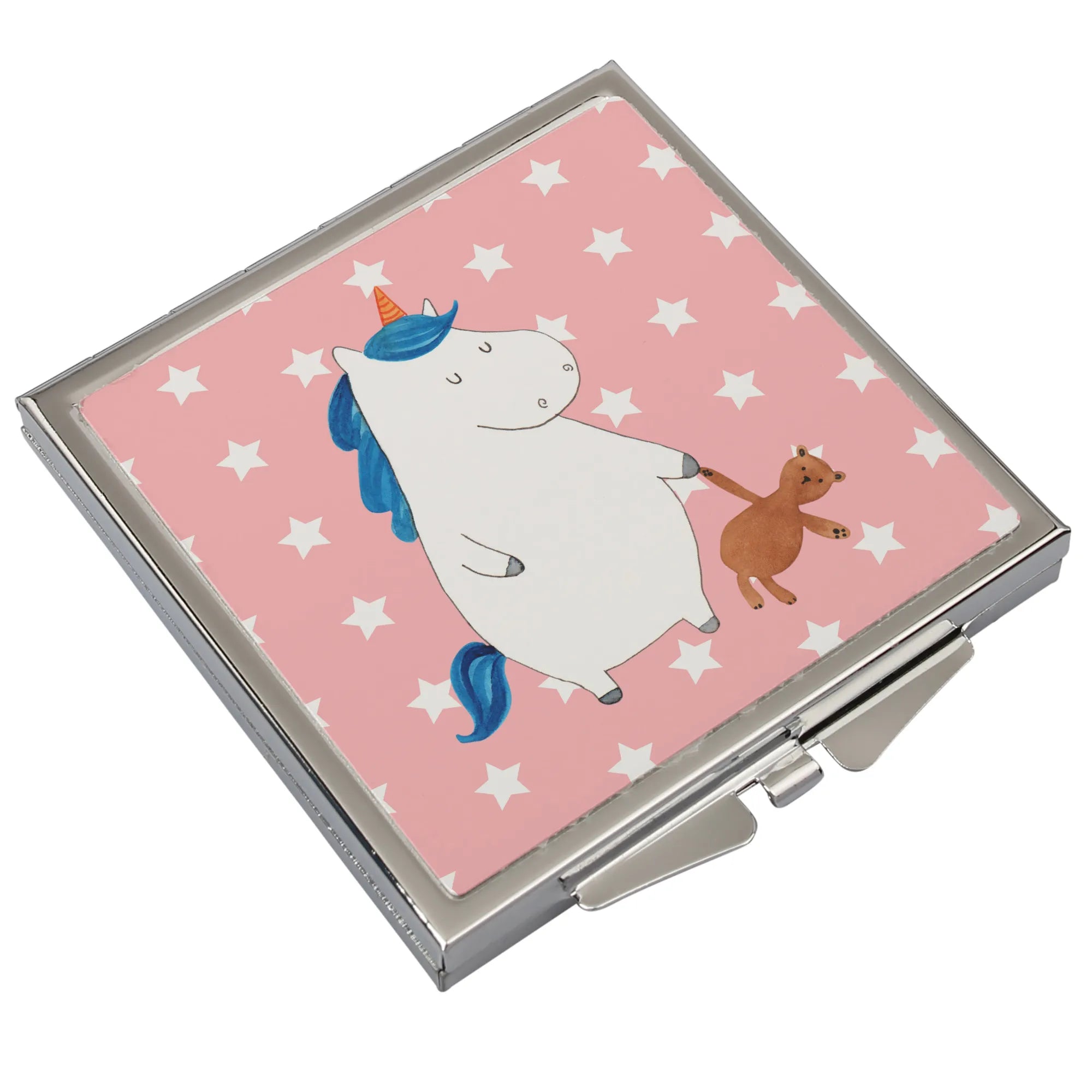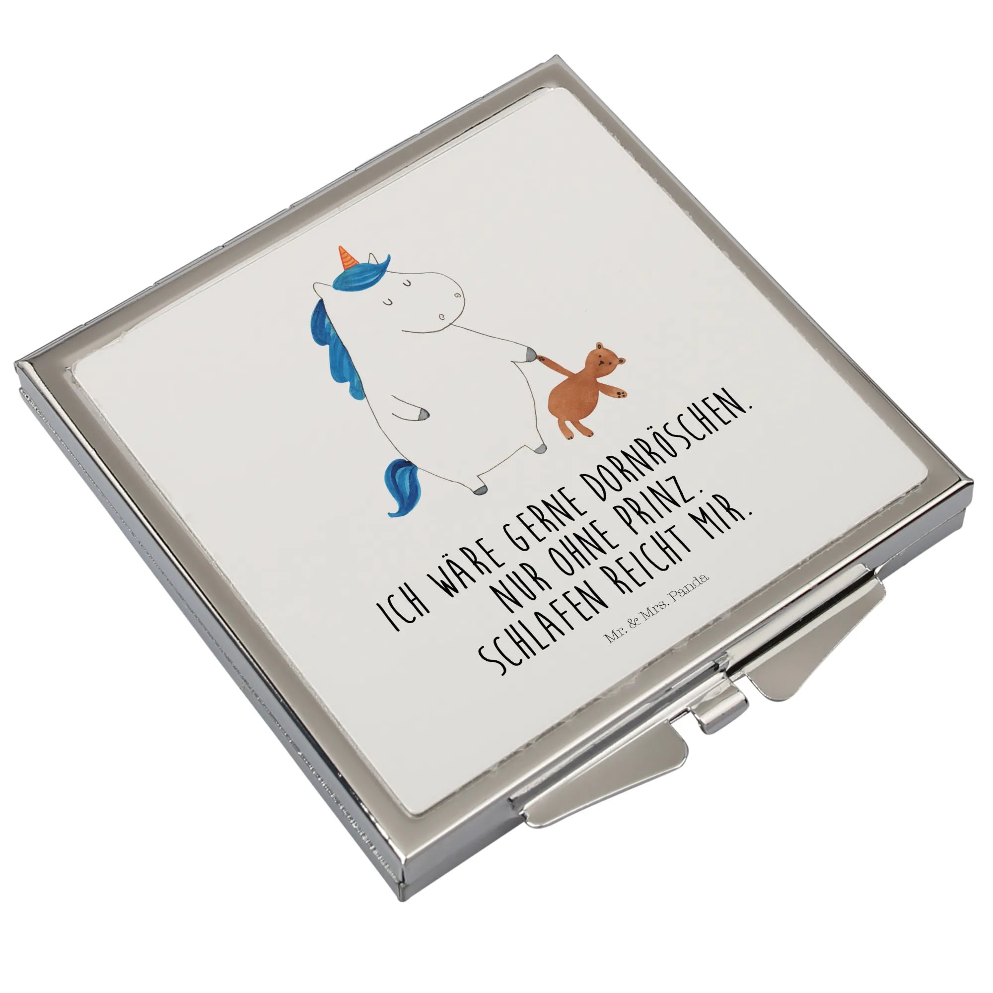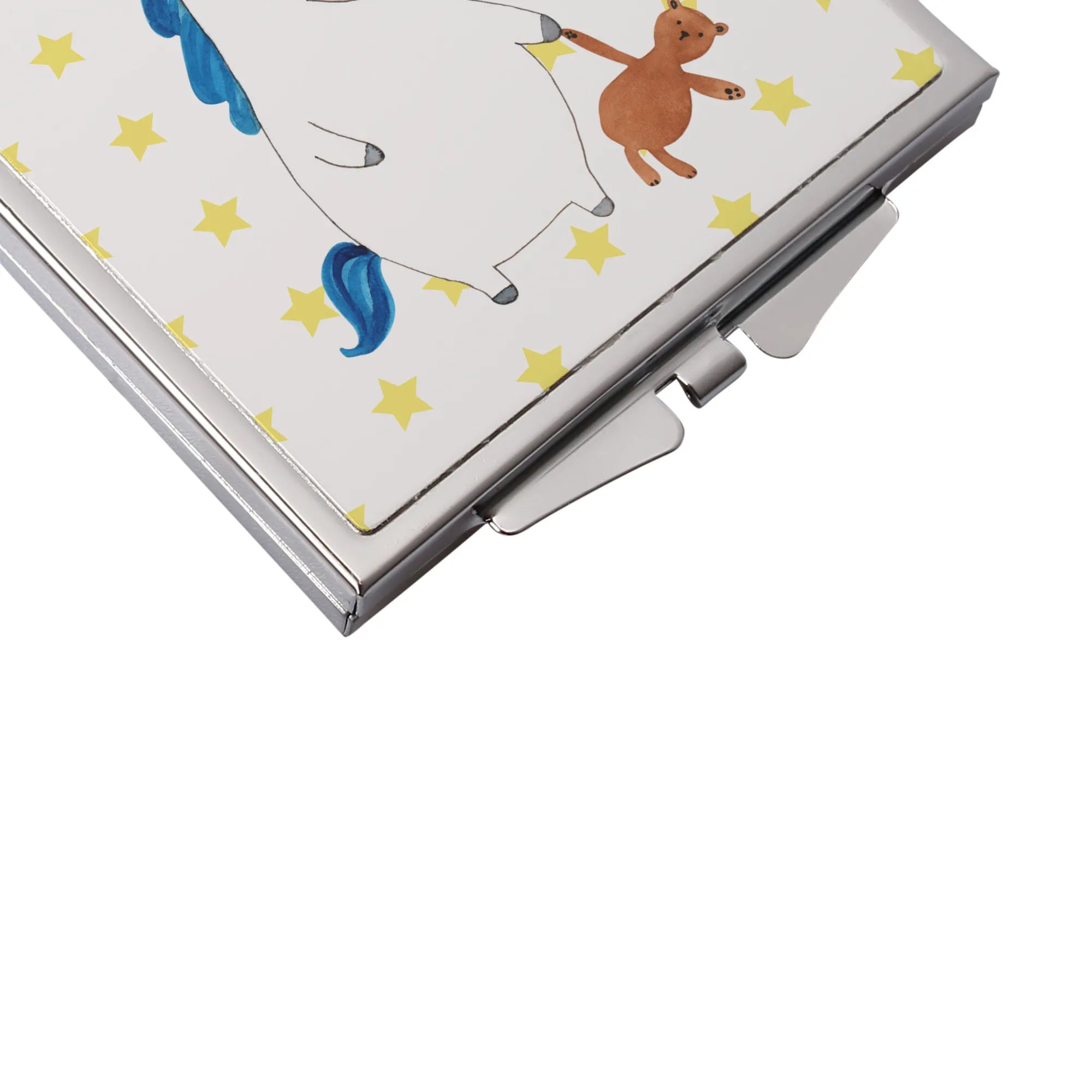 Kwadratowe lusterko do torebki Jednorożec Miś - z napisem - biały