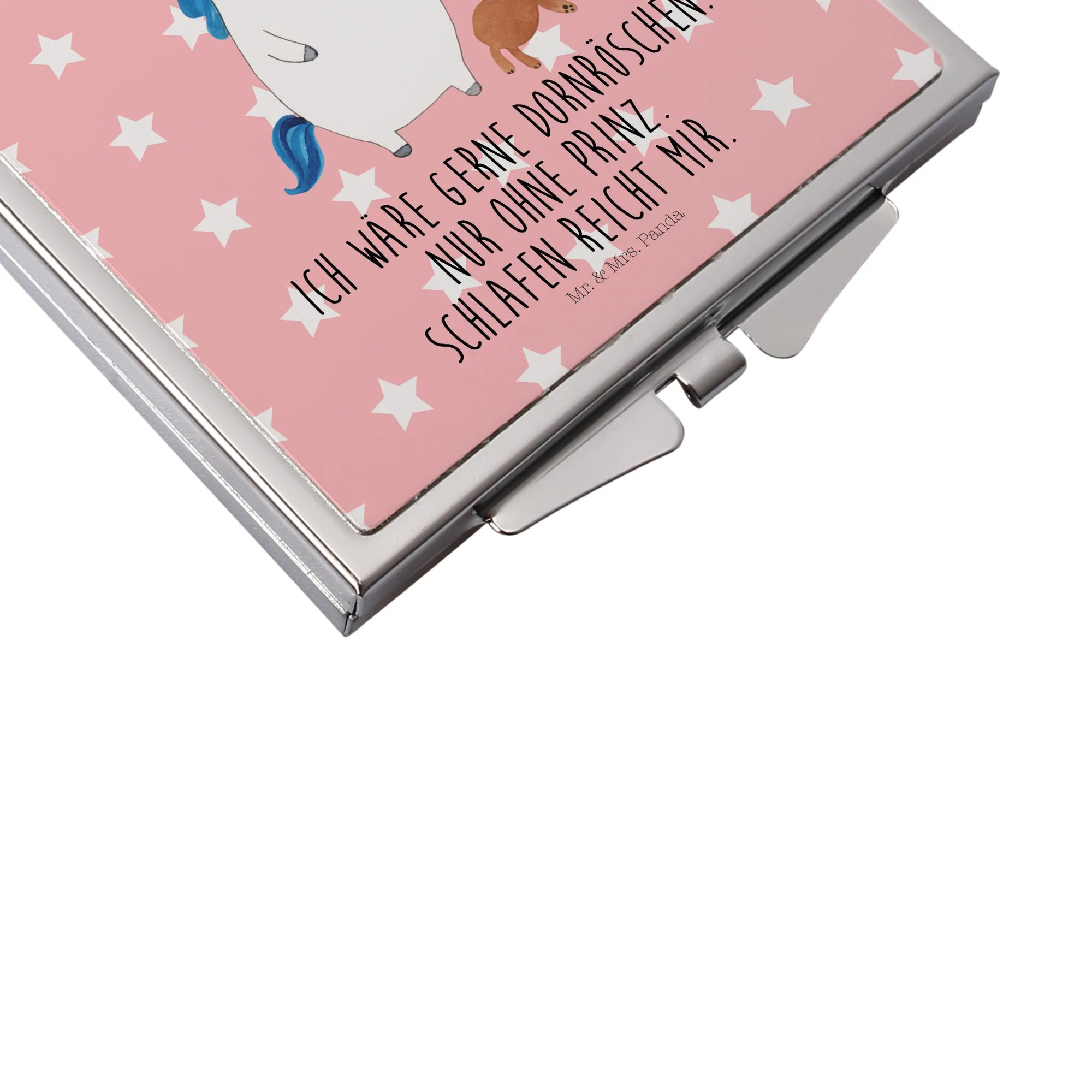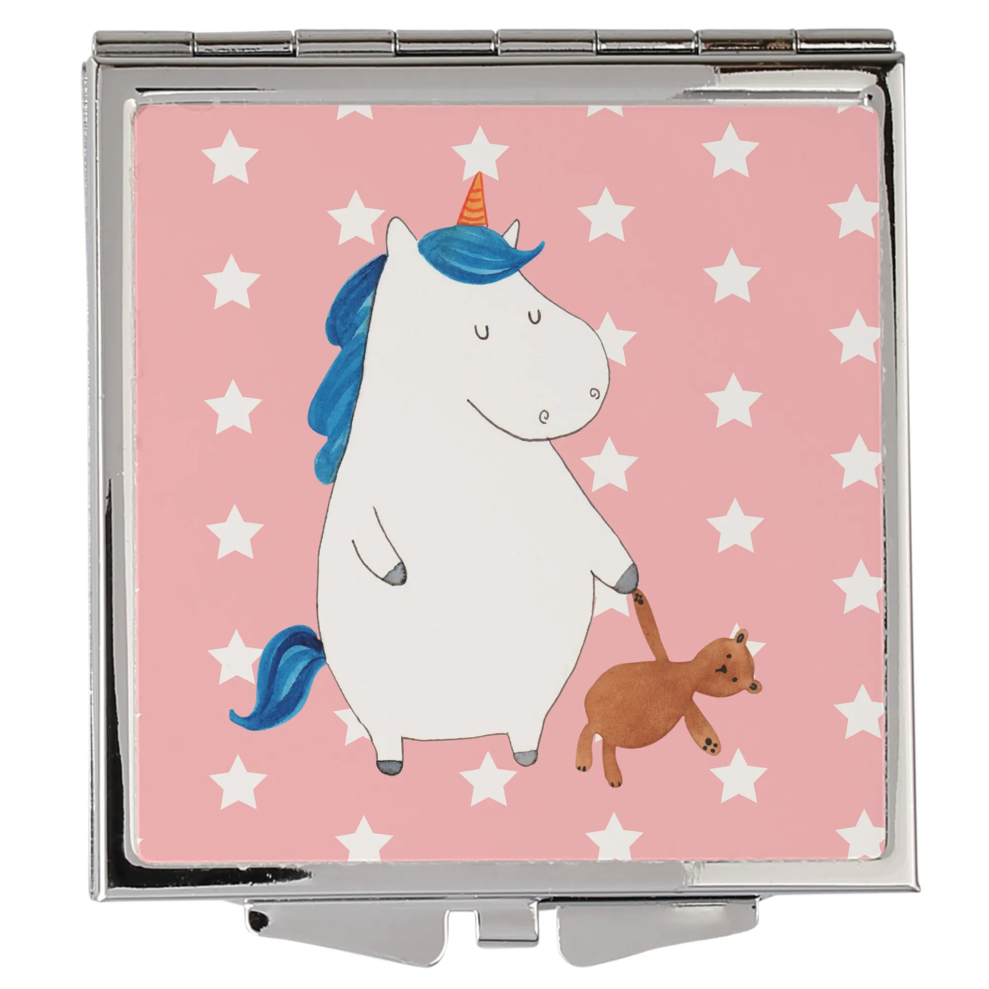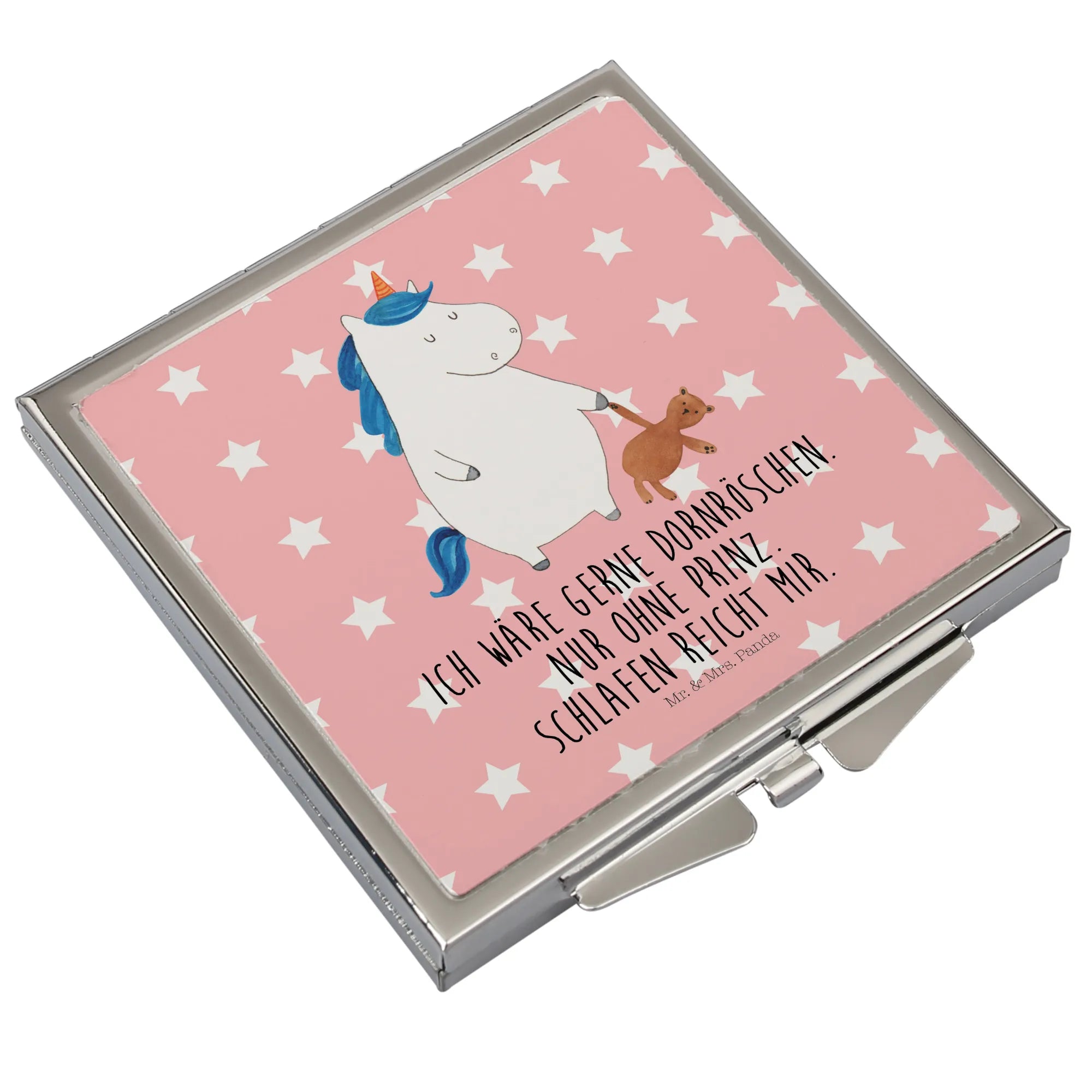 Kwadratowe lusterko do torebki Jednorożec Miś - z napisem - biały