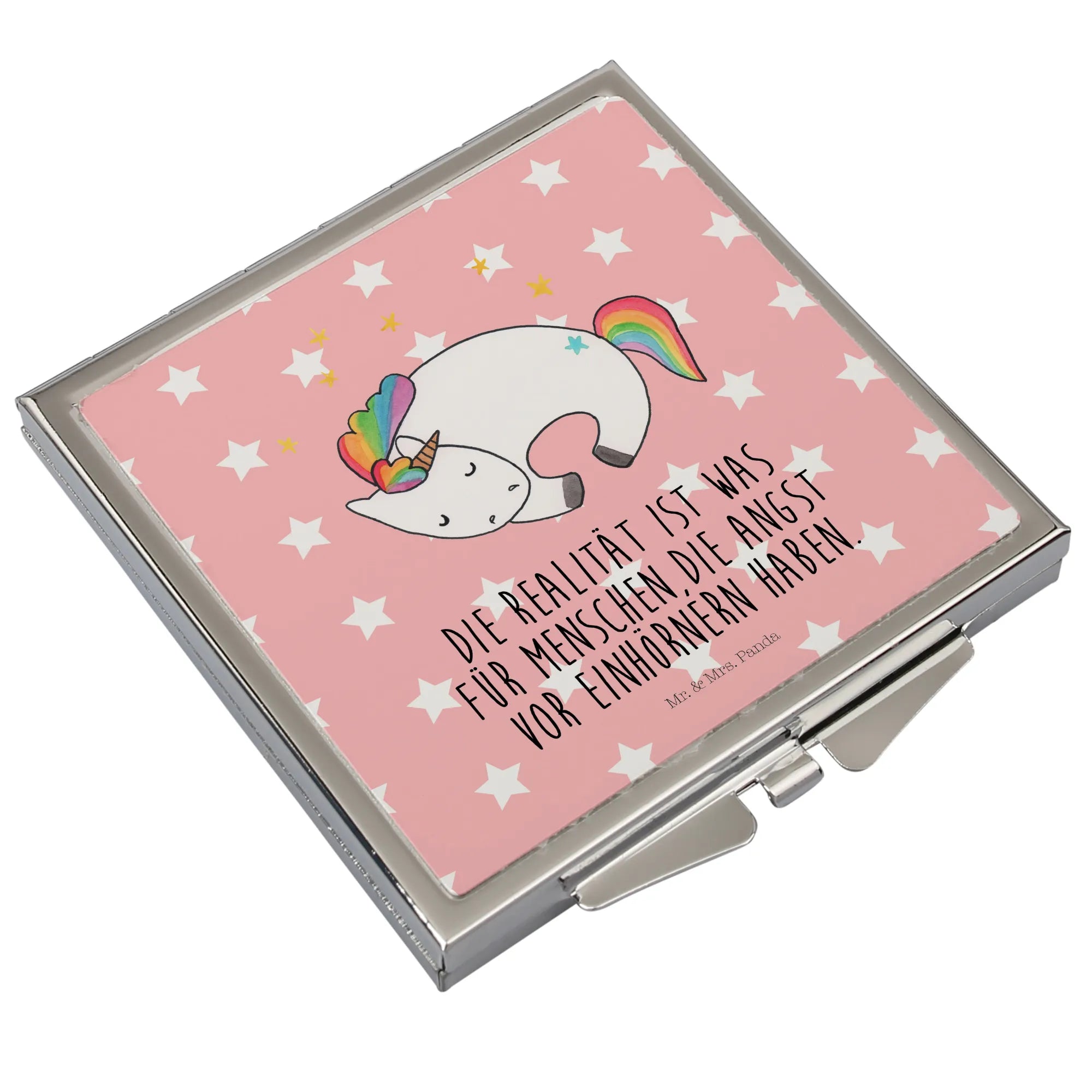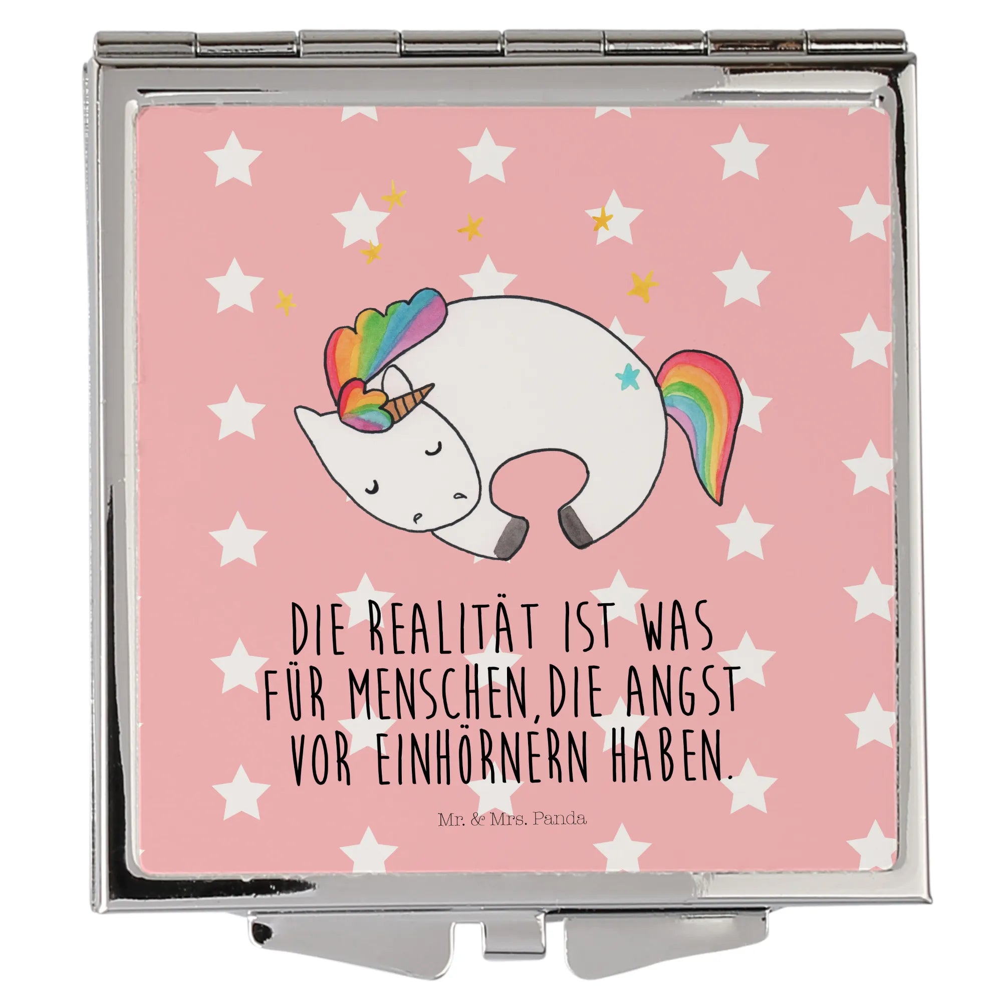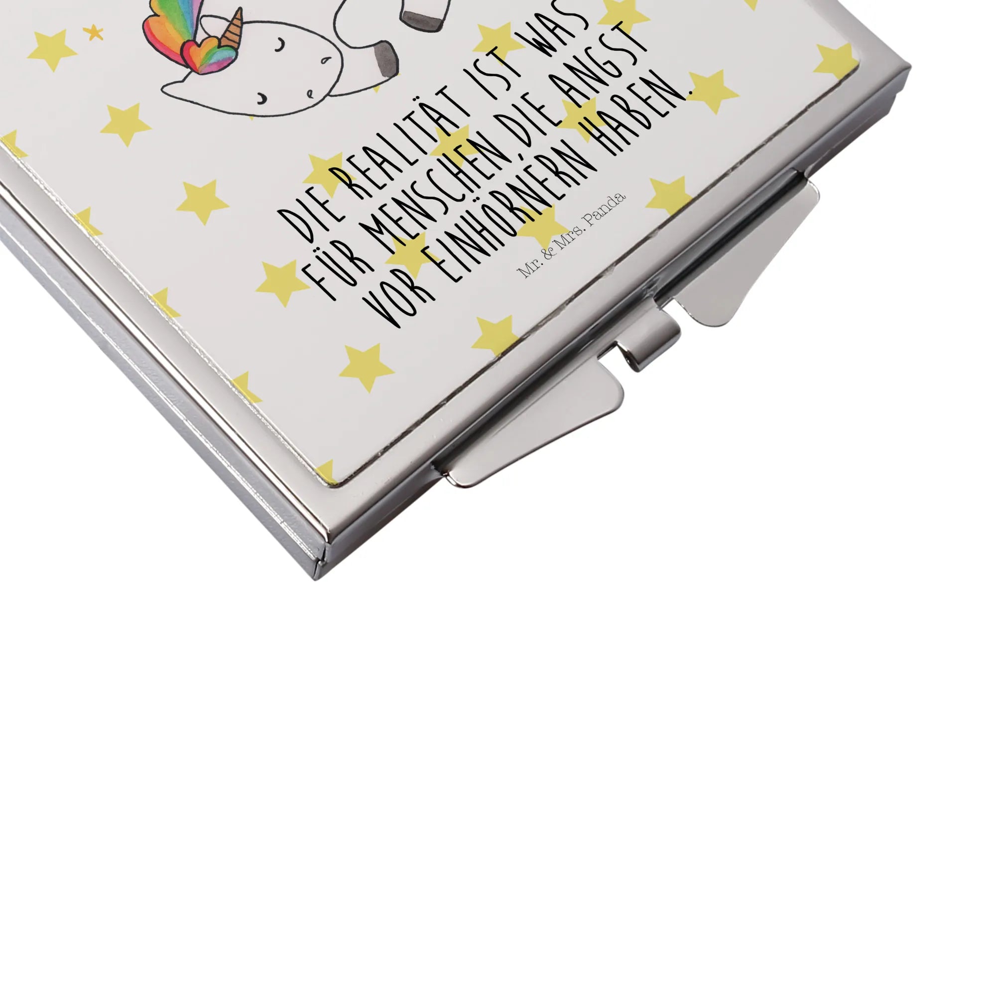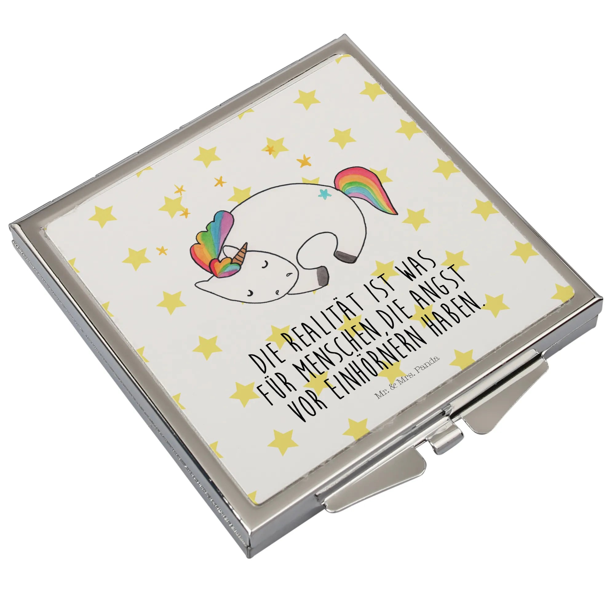 Kwadratowe lusterko do torebki Jednorożec noc - z napisem - biały