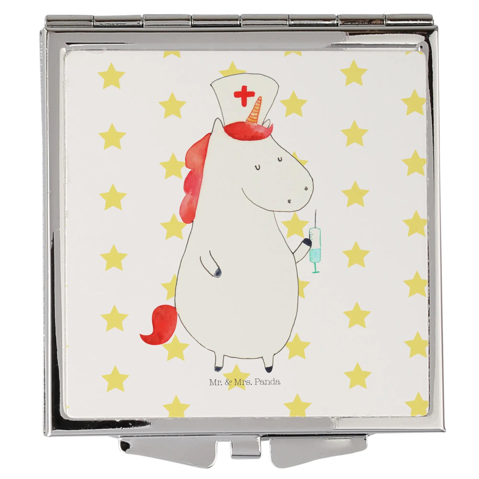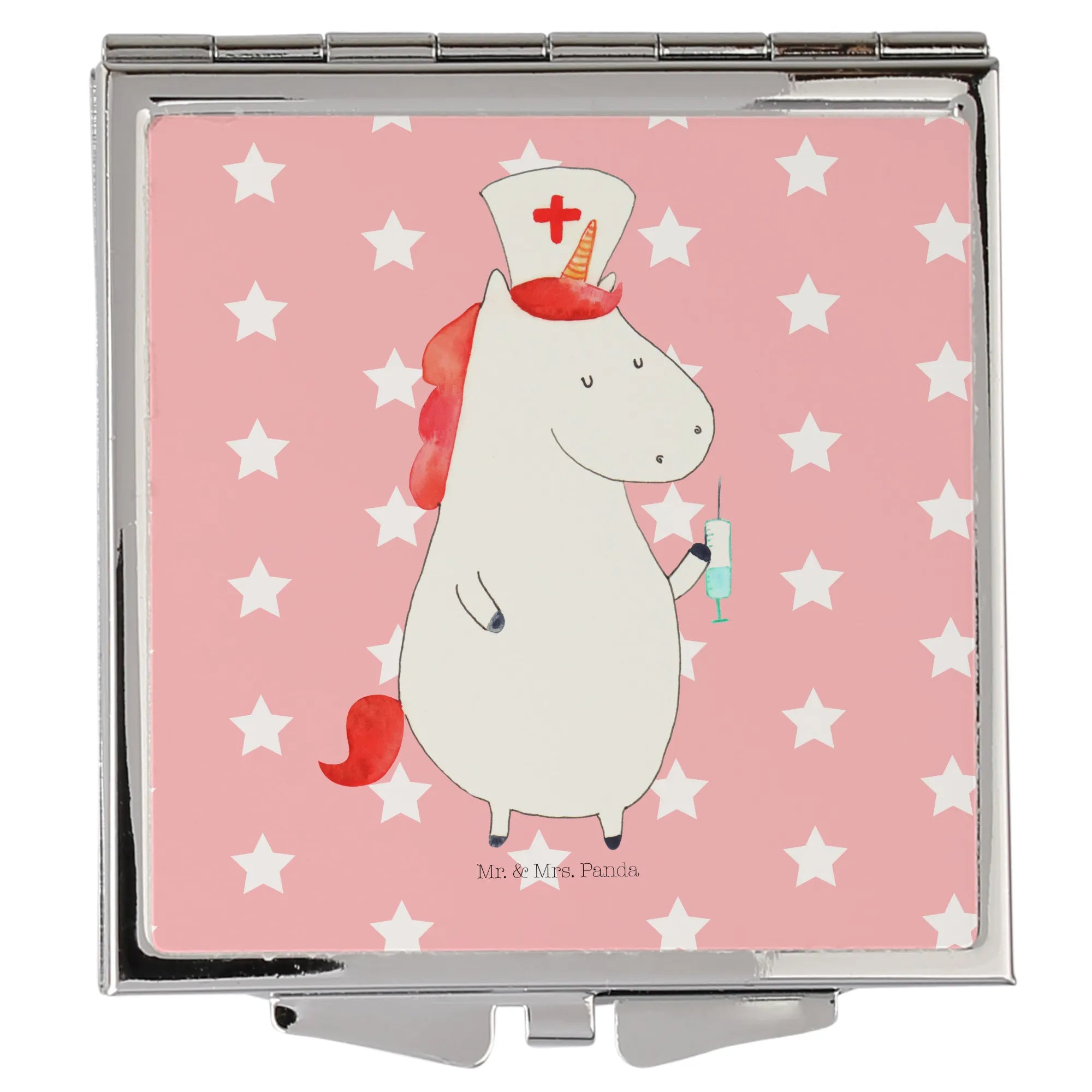 Kwadratowe lusterko do torebki Jednorożec Pielęgniarka - z napisem - Pastelowy czerwony