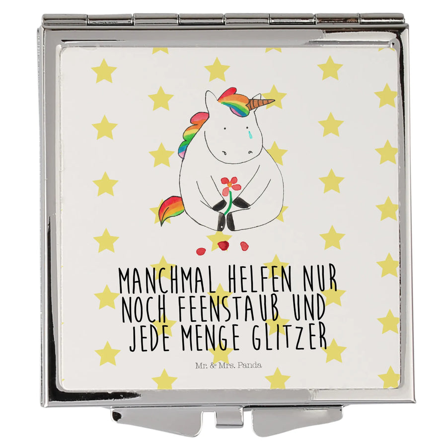 Kwadratowe lusterko do torebki Jednorożec Smutny - z napisem - biały
