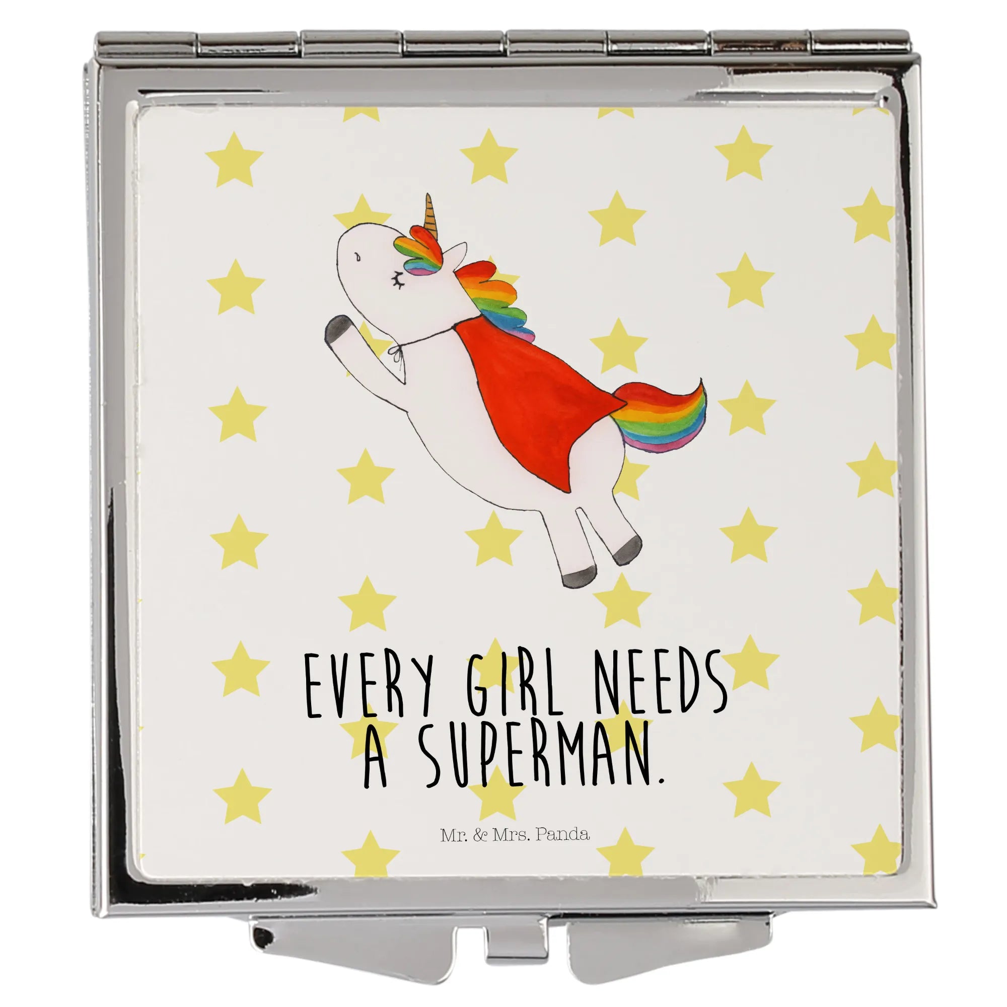 Kwadratowe lusterko do torebki Jednorożec Super - z napisem - Pastelowy czerwony