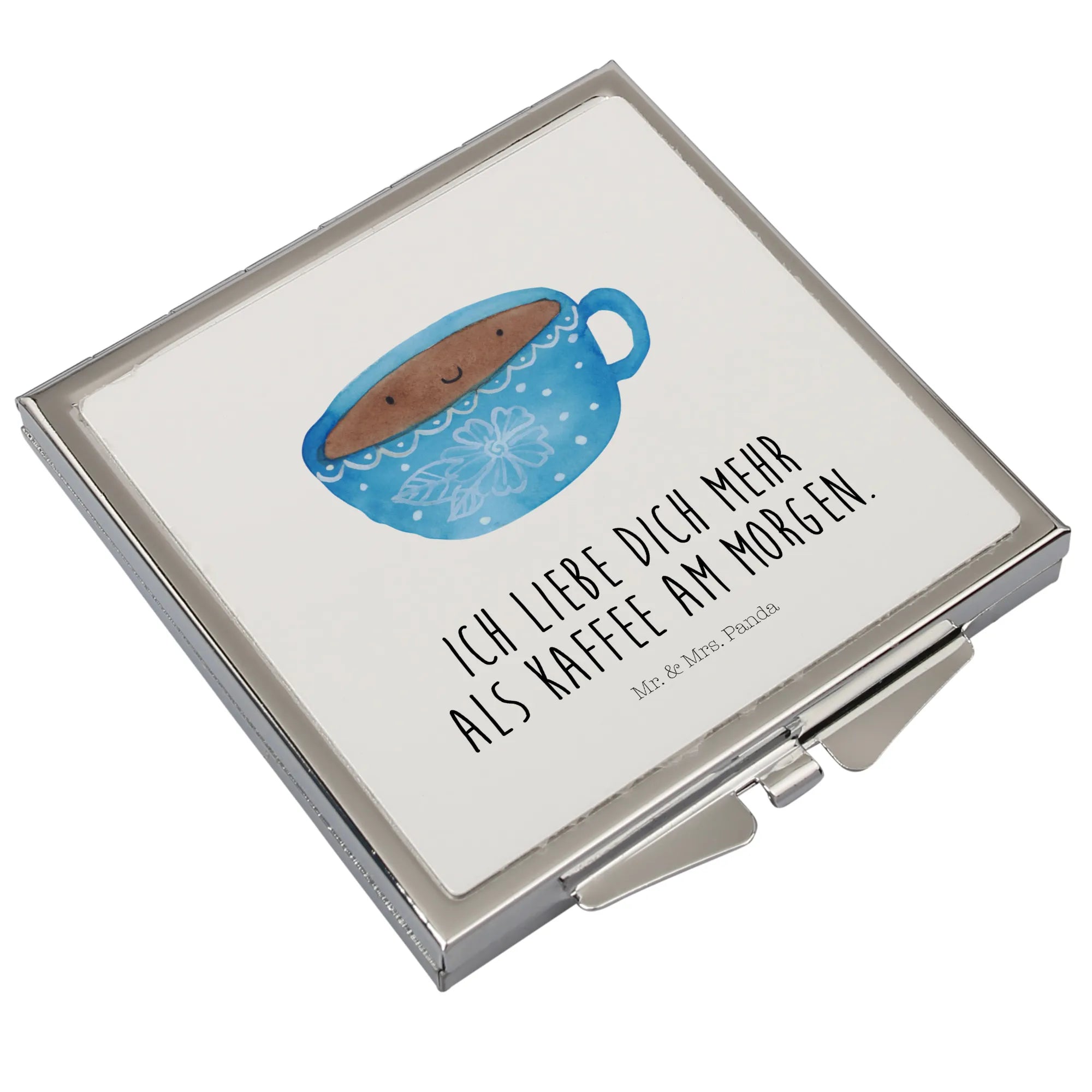 Kwadratowe lusterko do torebki Kawa kubek - z napisem - biały