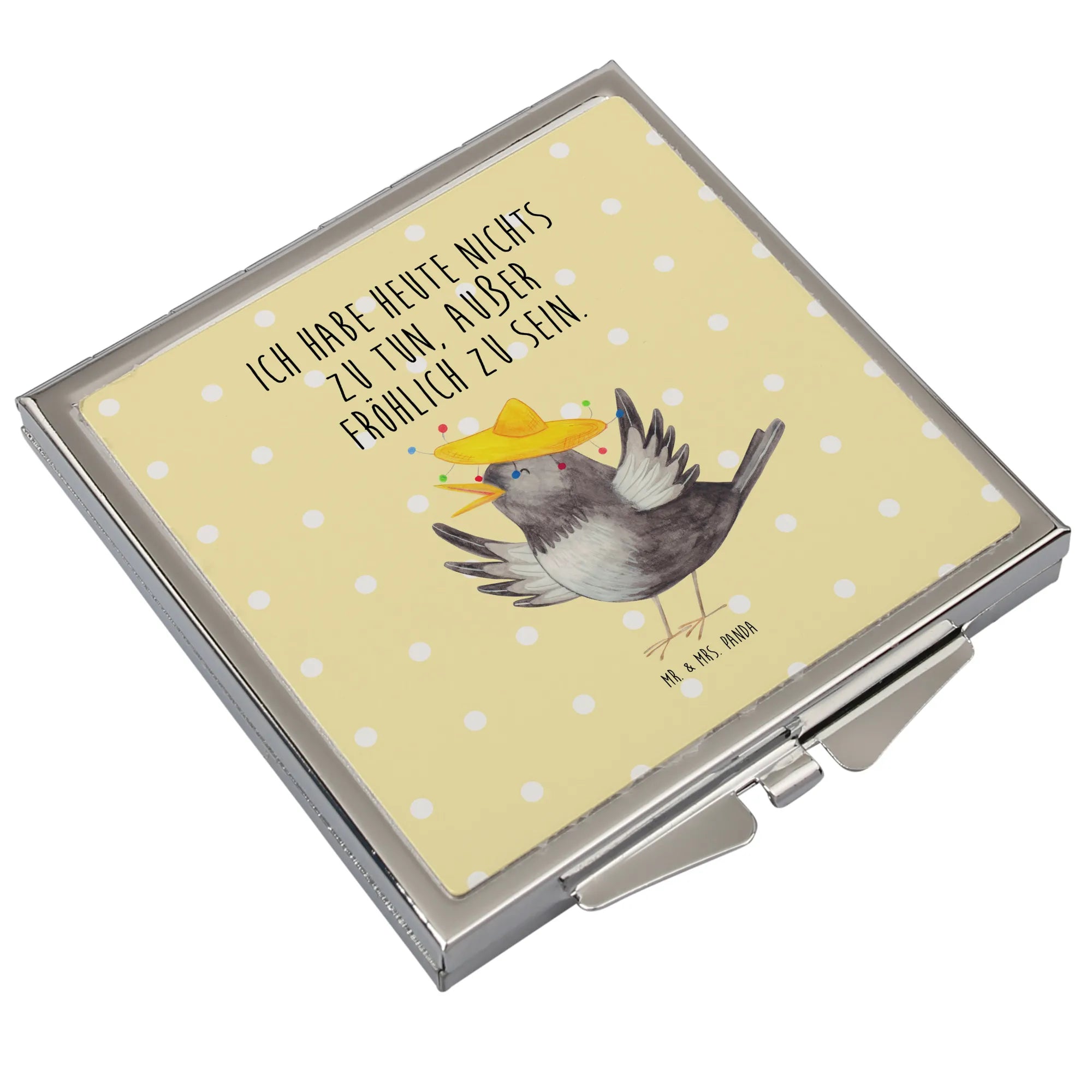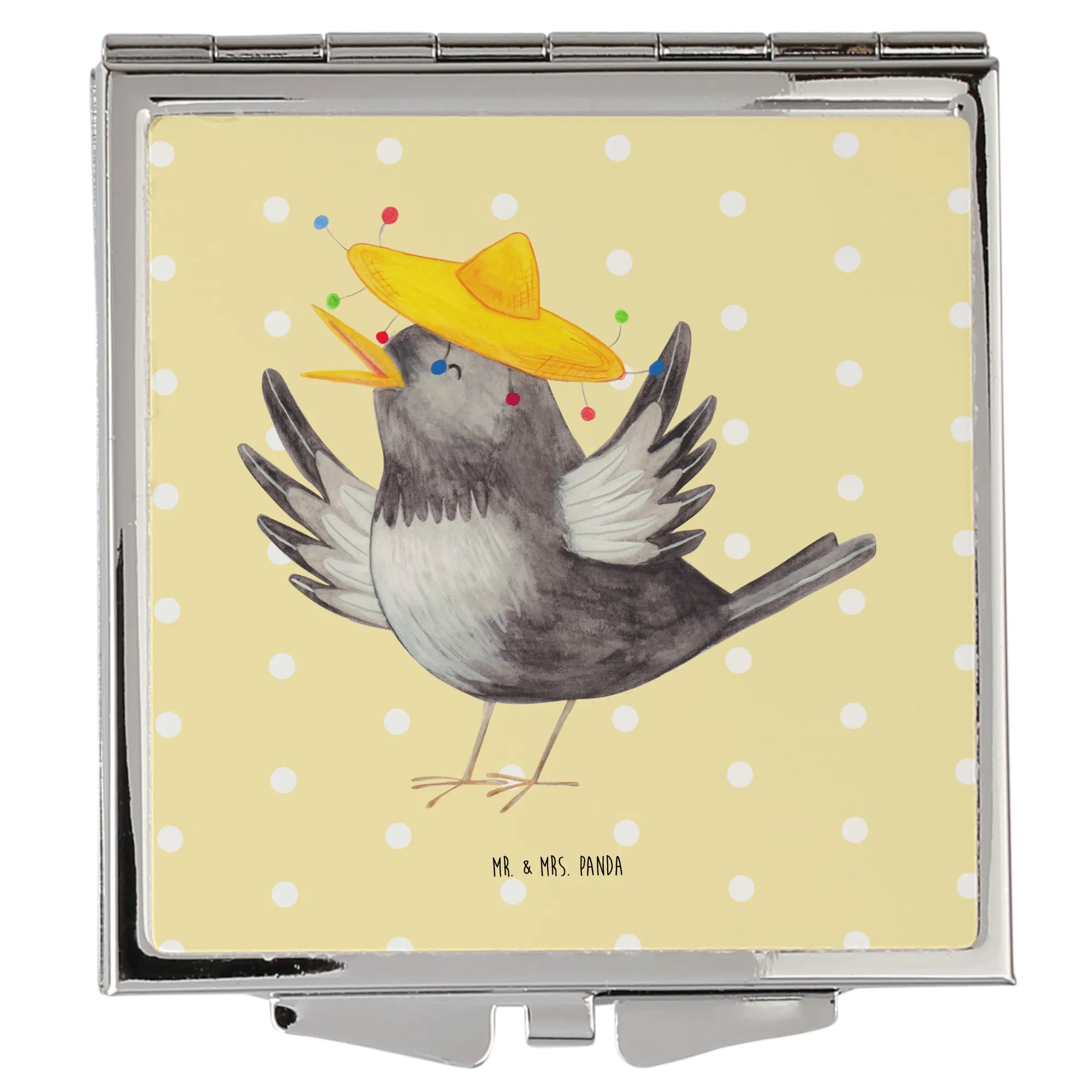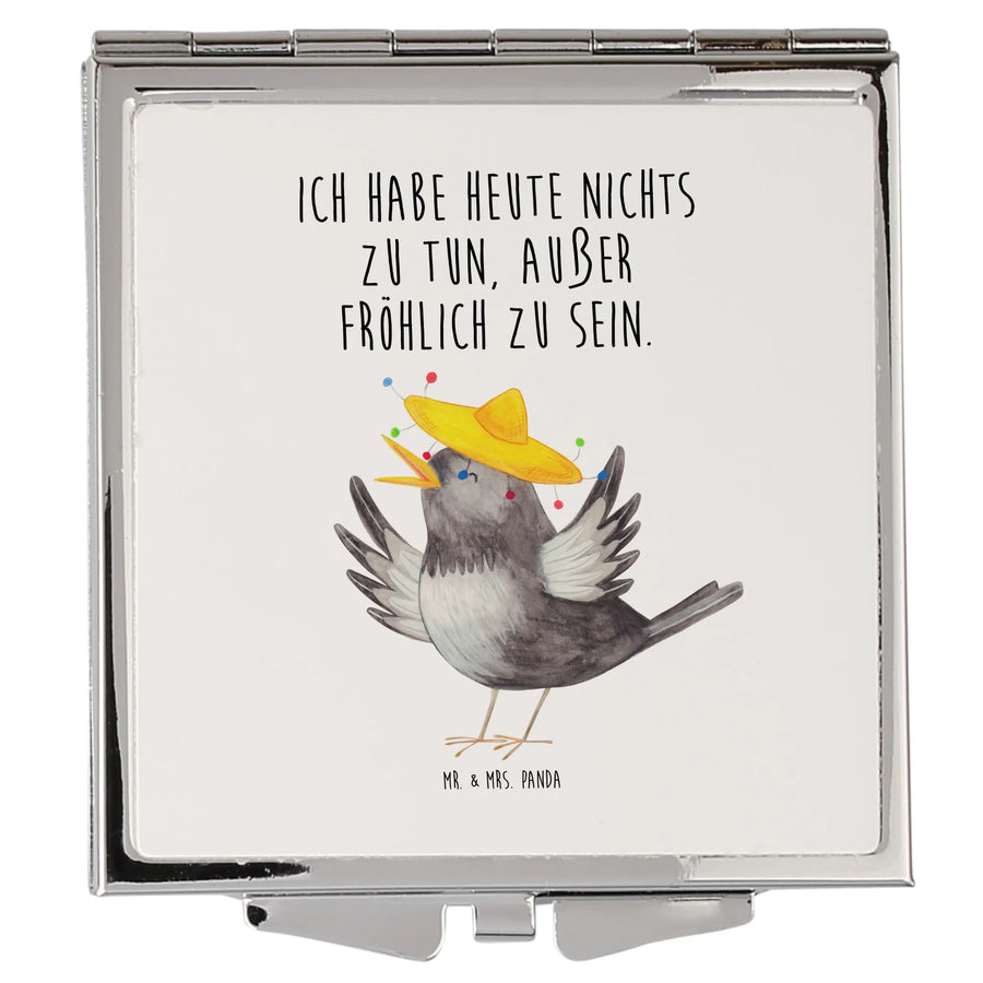 Kwadratowe lusterko do torebki kruk Sombrero - z napisem - biały