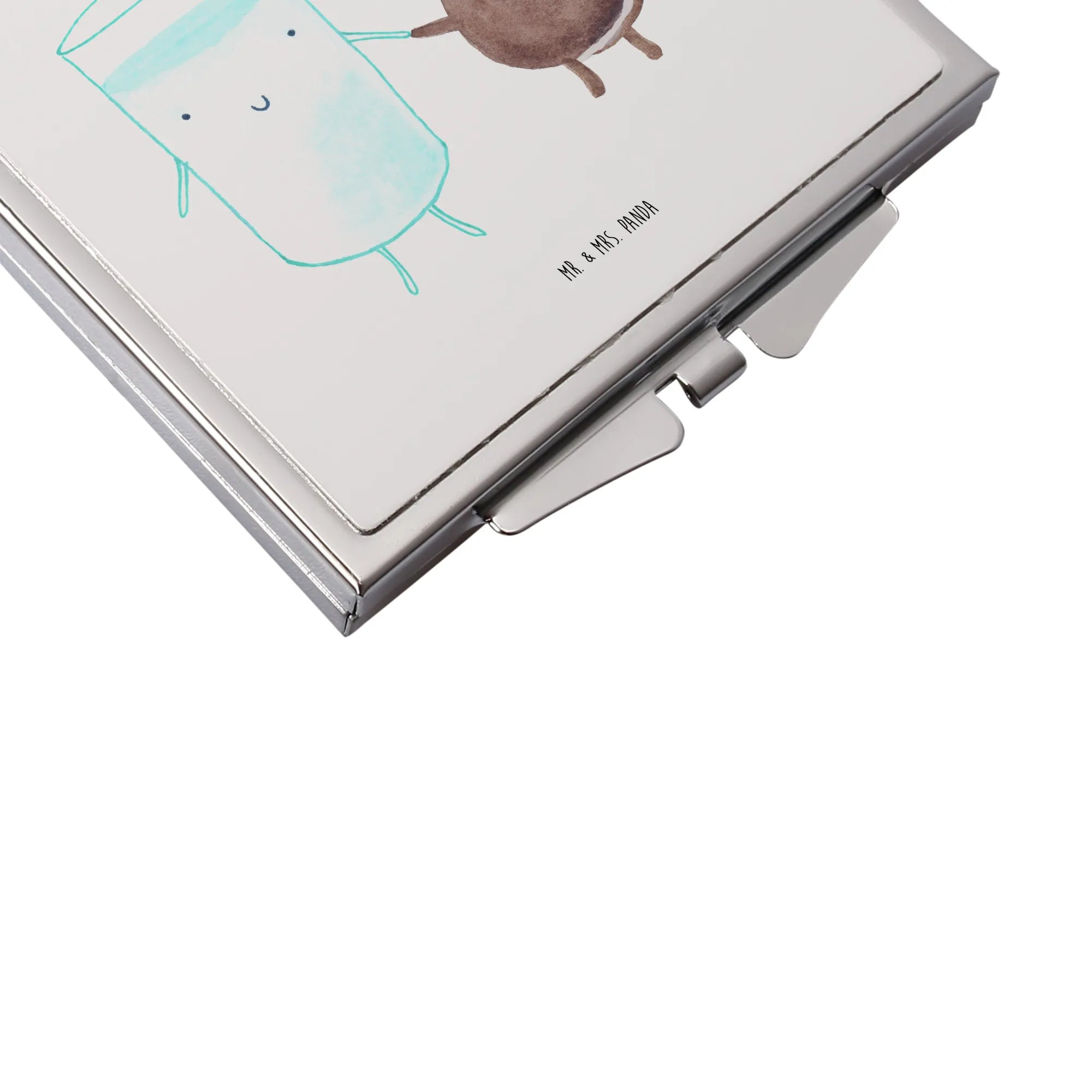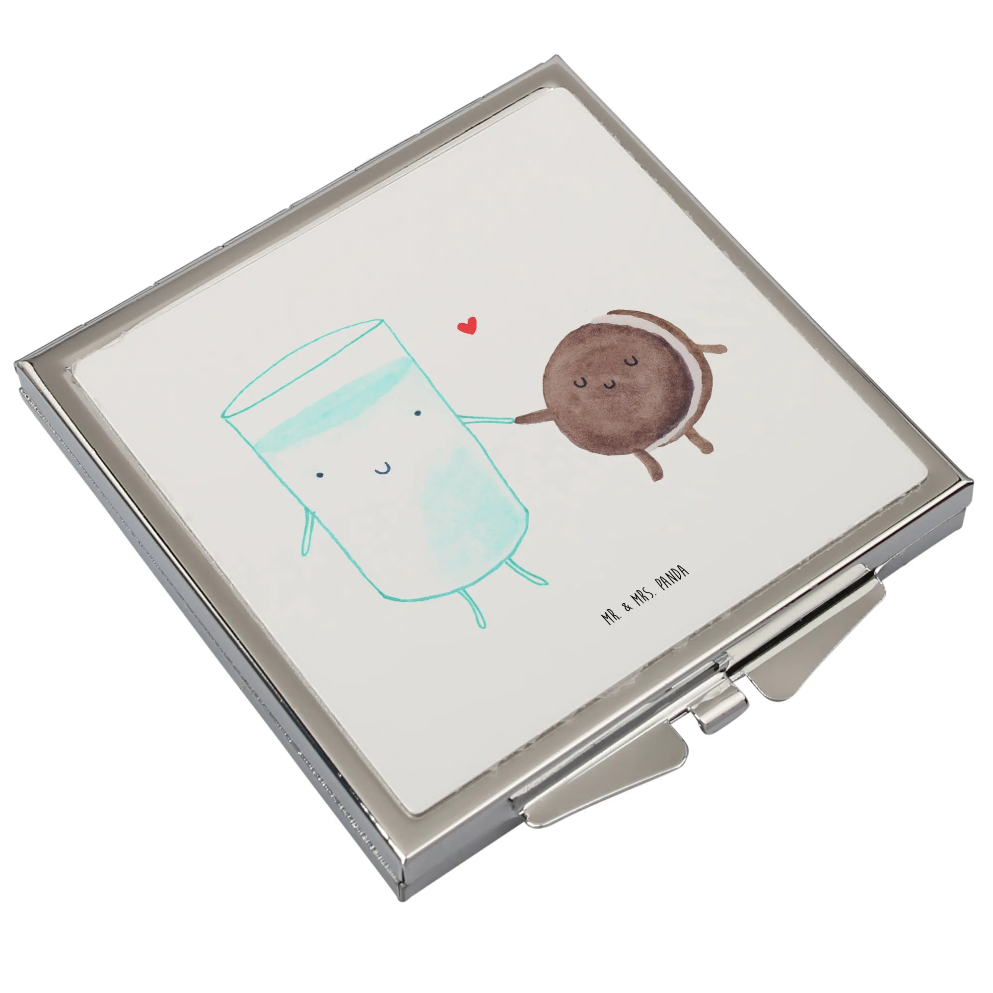 Kwadratowe lusterko do torebki mleko ciastko - z napisem - biały