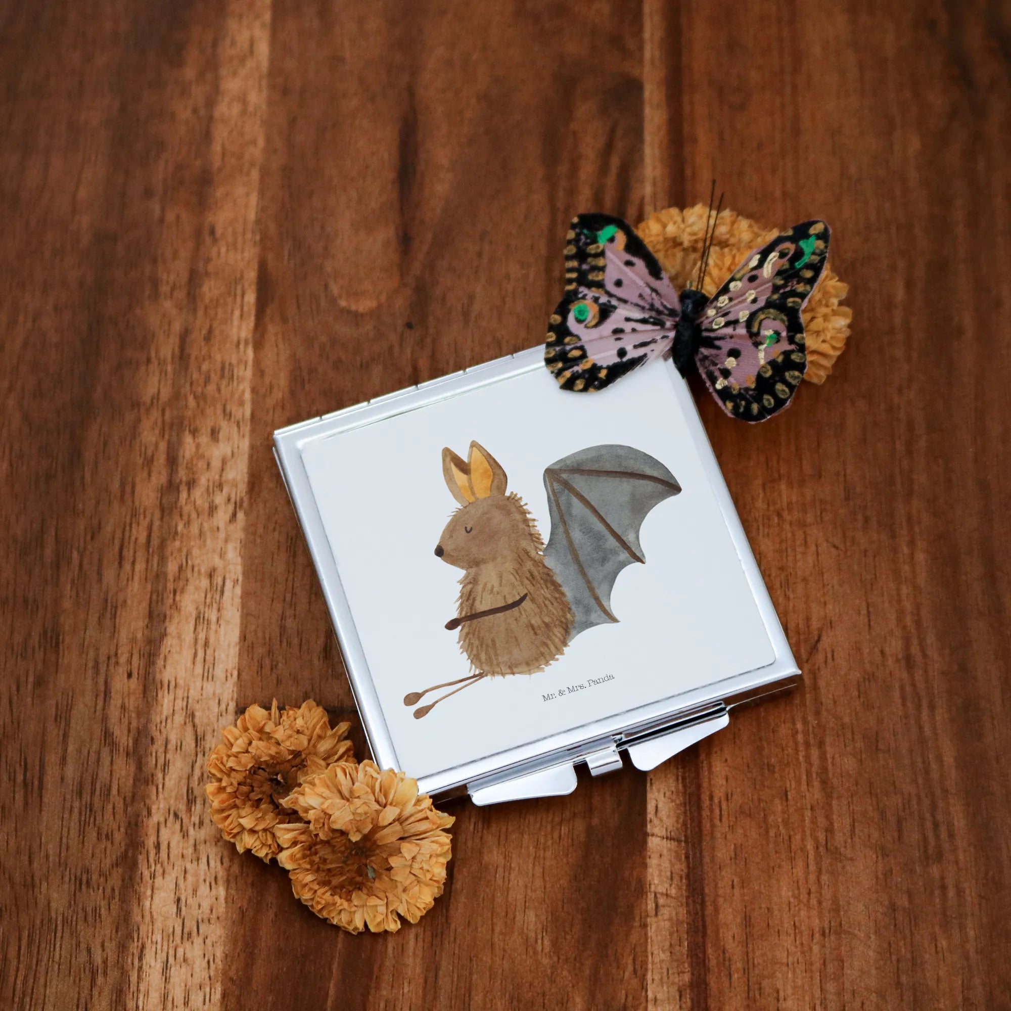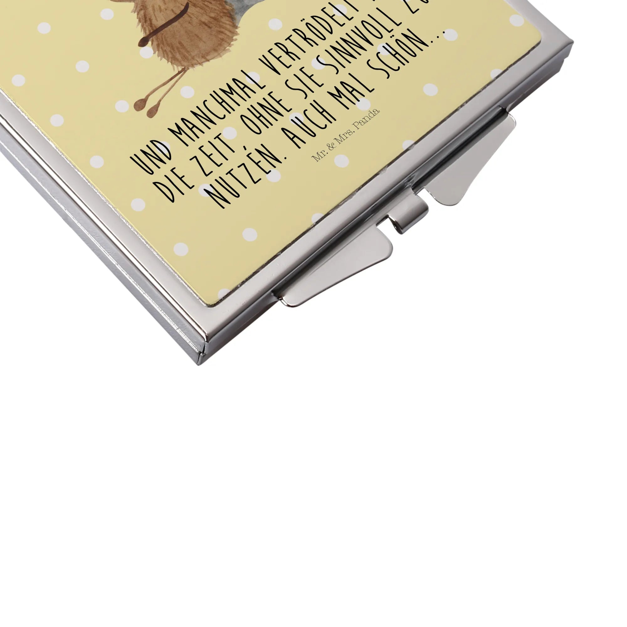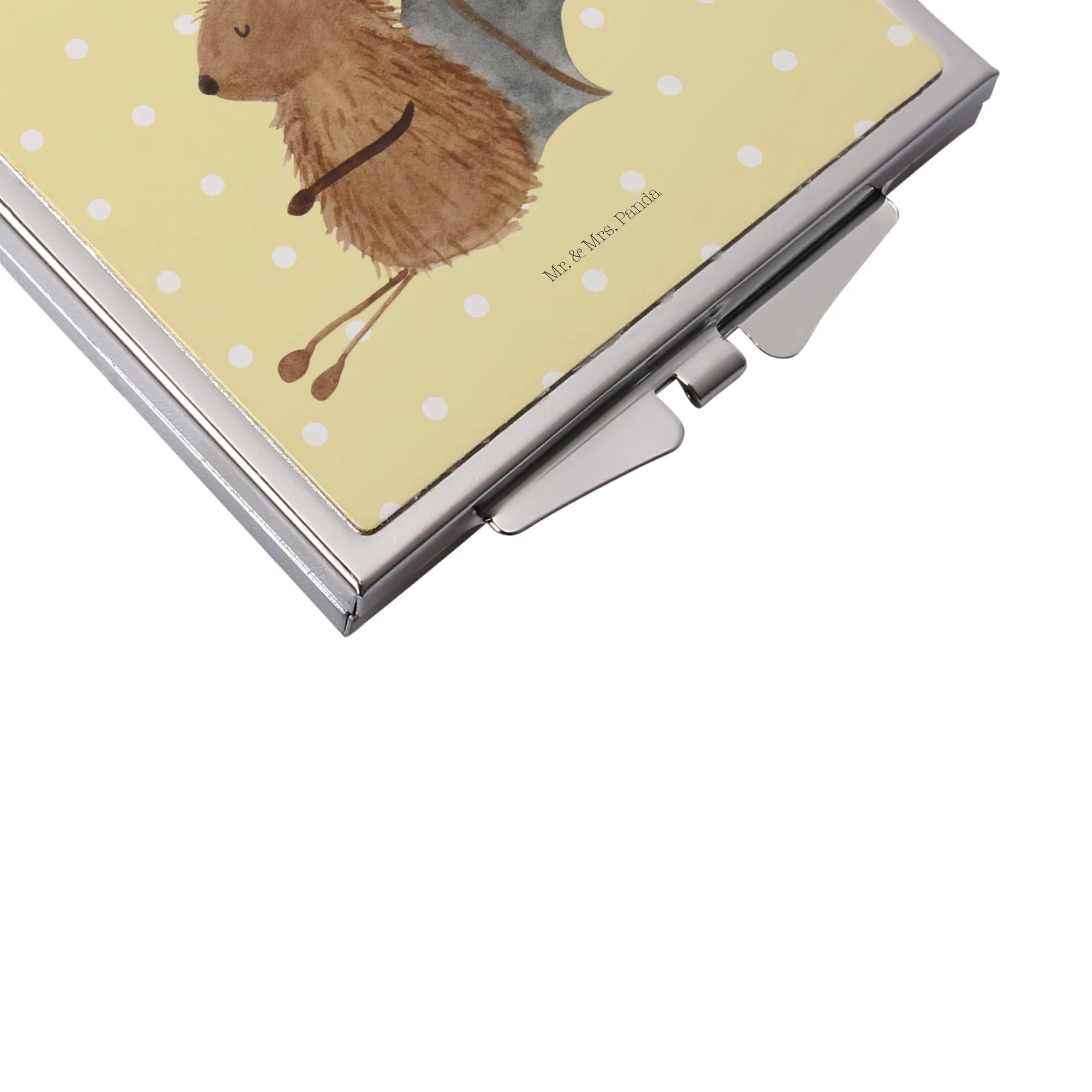 Kwadratowe lusterko do torebki Nietoperz siedzenie - z napisem - Żółty Pastel