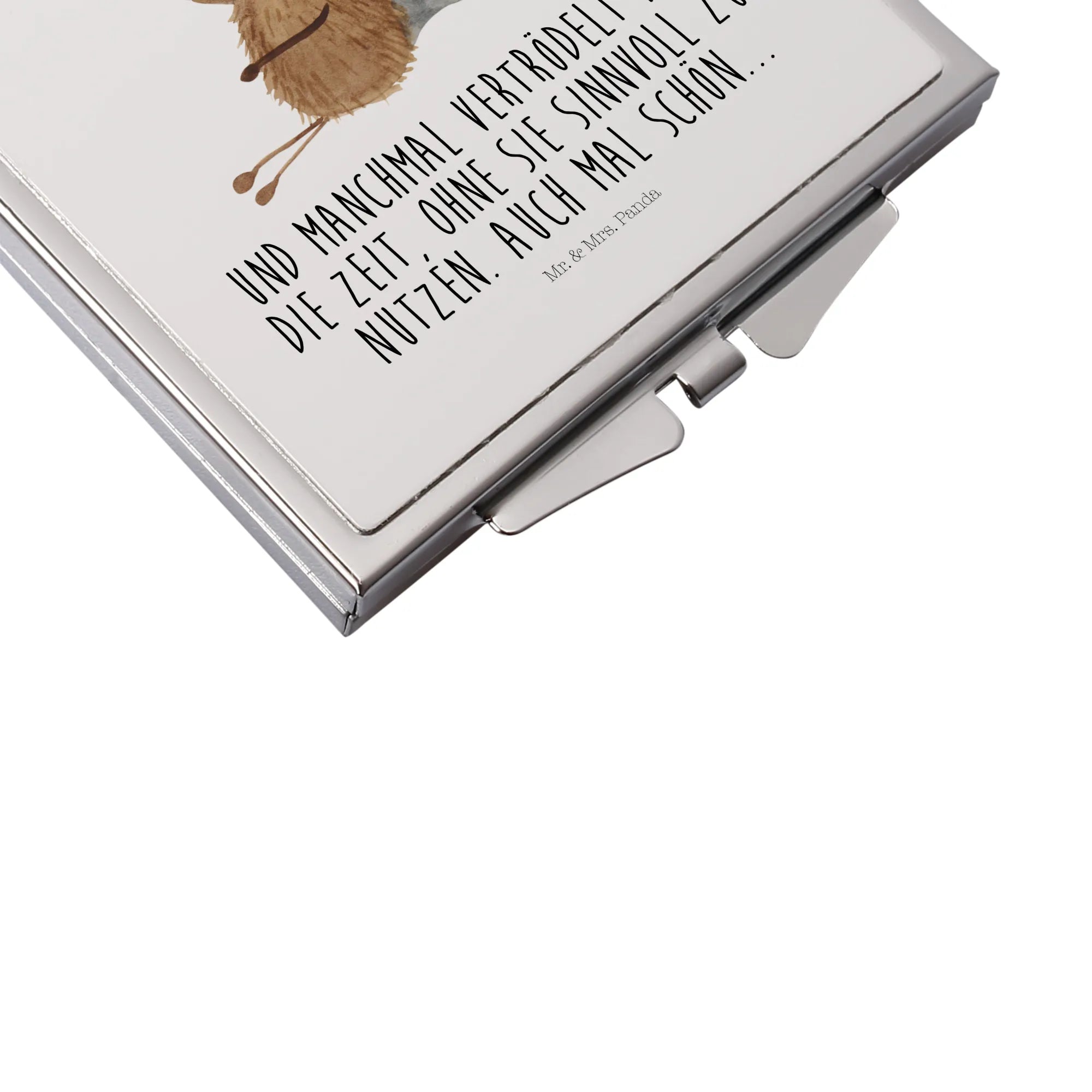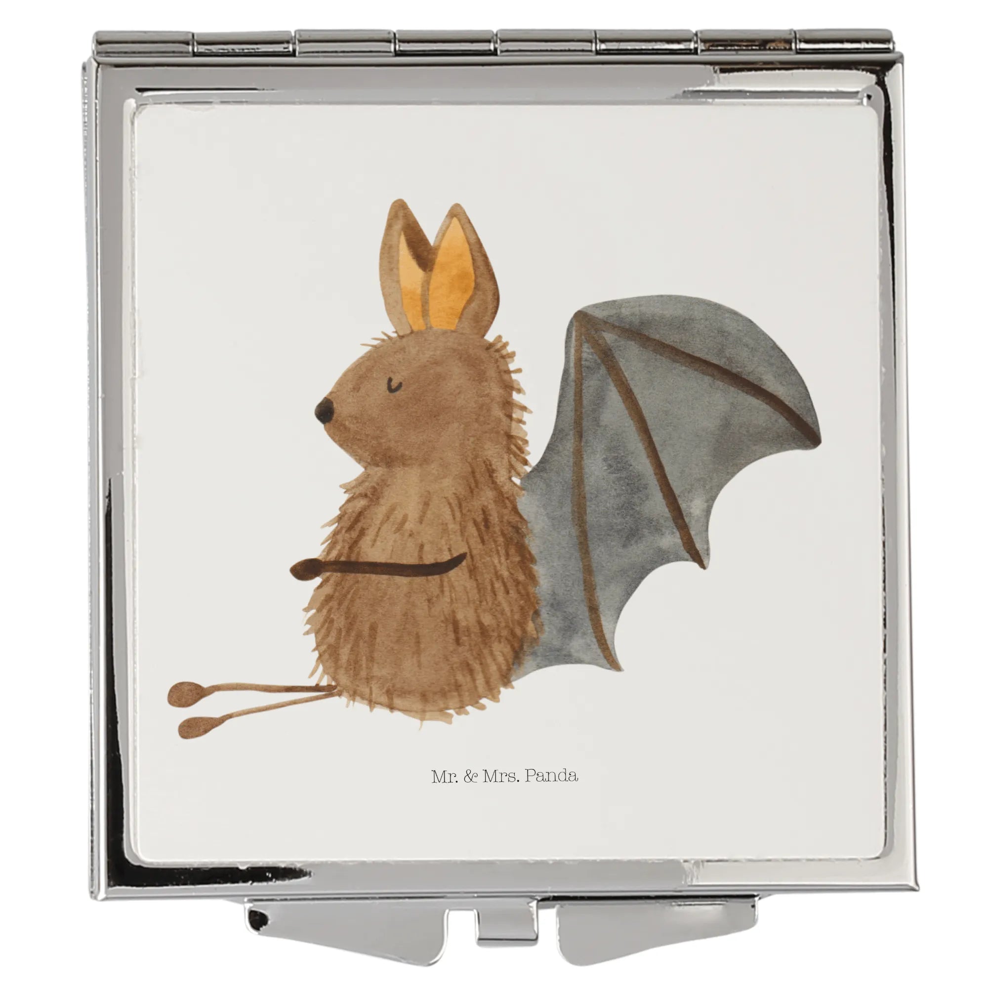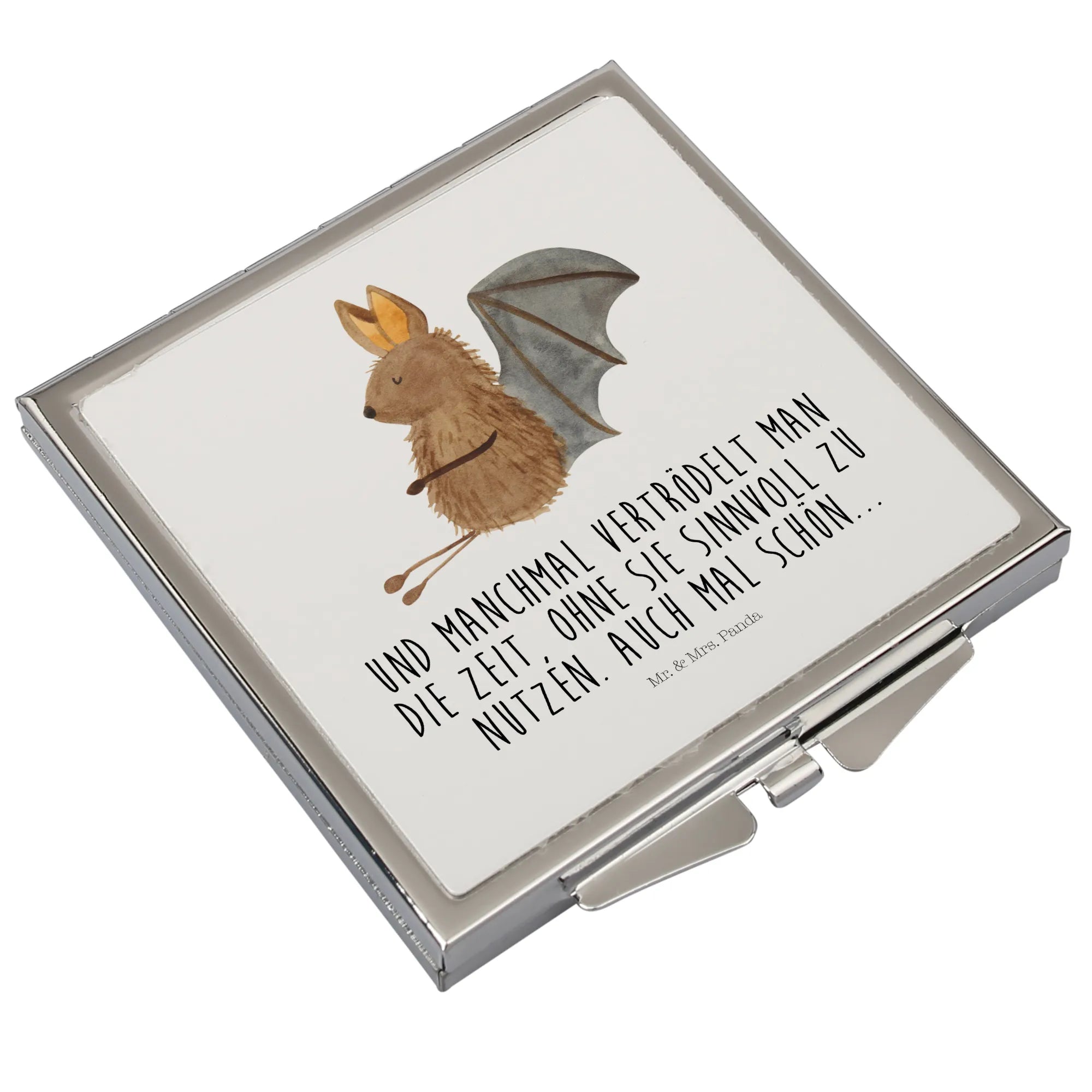 Kwadratowe lusterko do torebki Nietoperz siedzenie - z napisem - Żółty Pastel