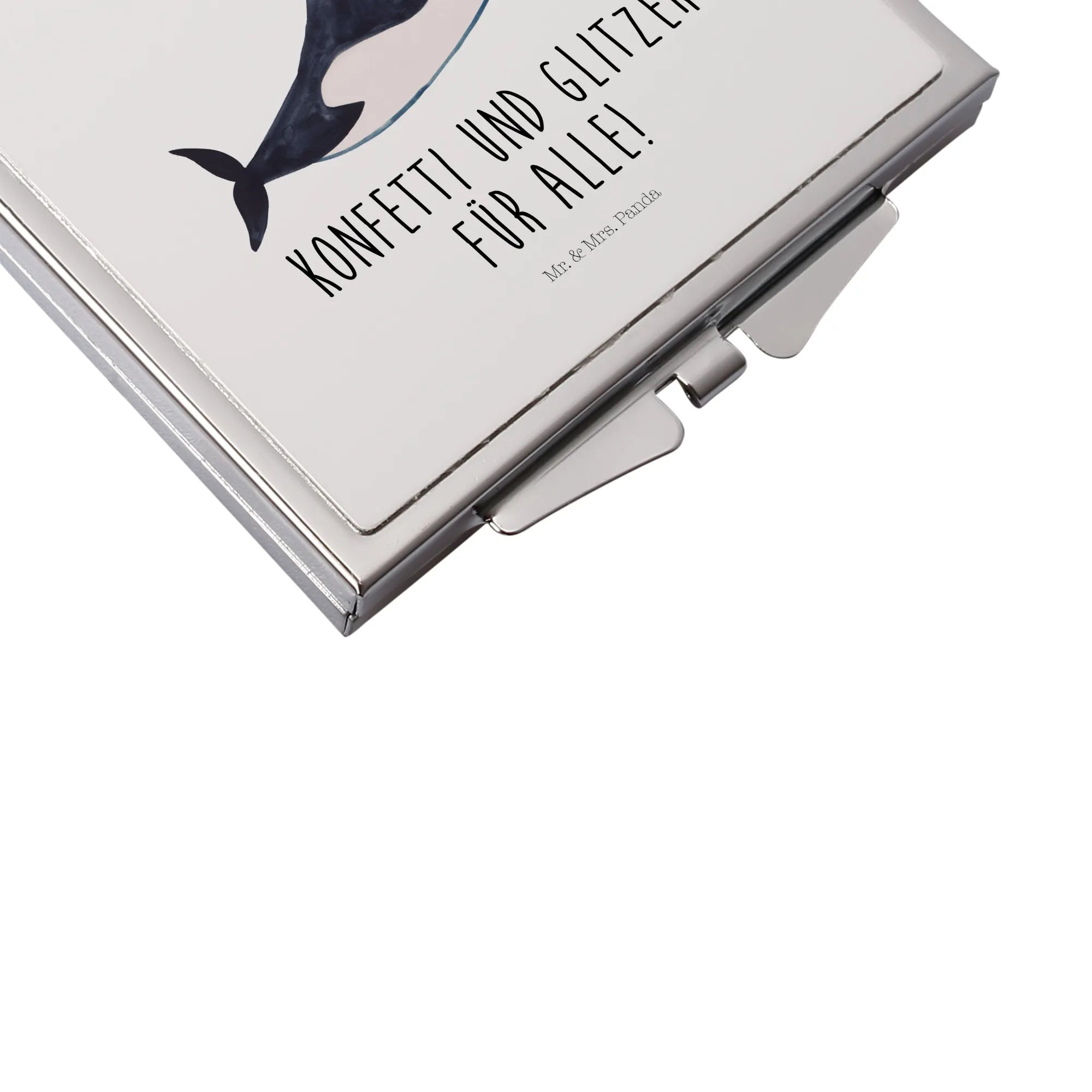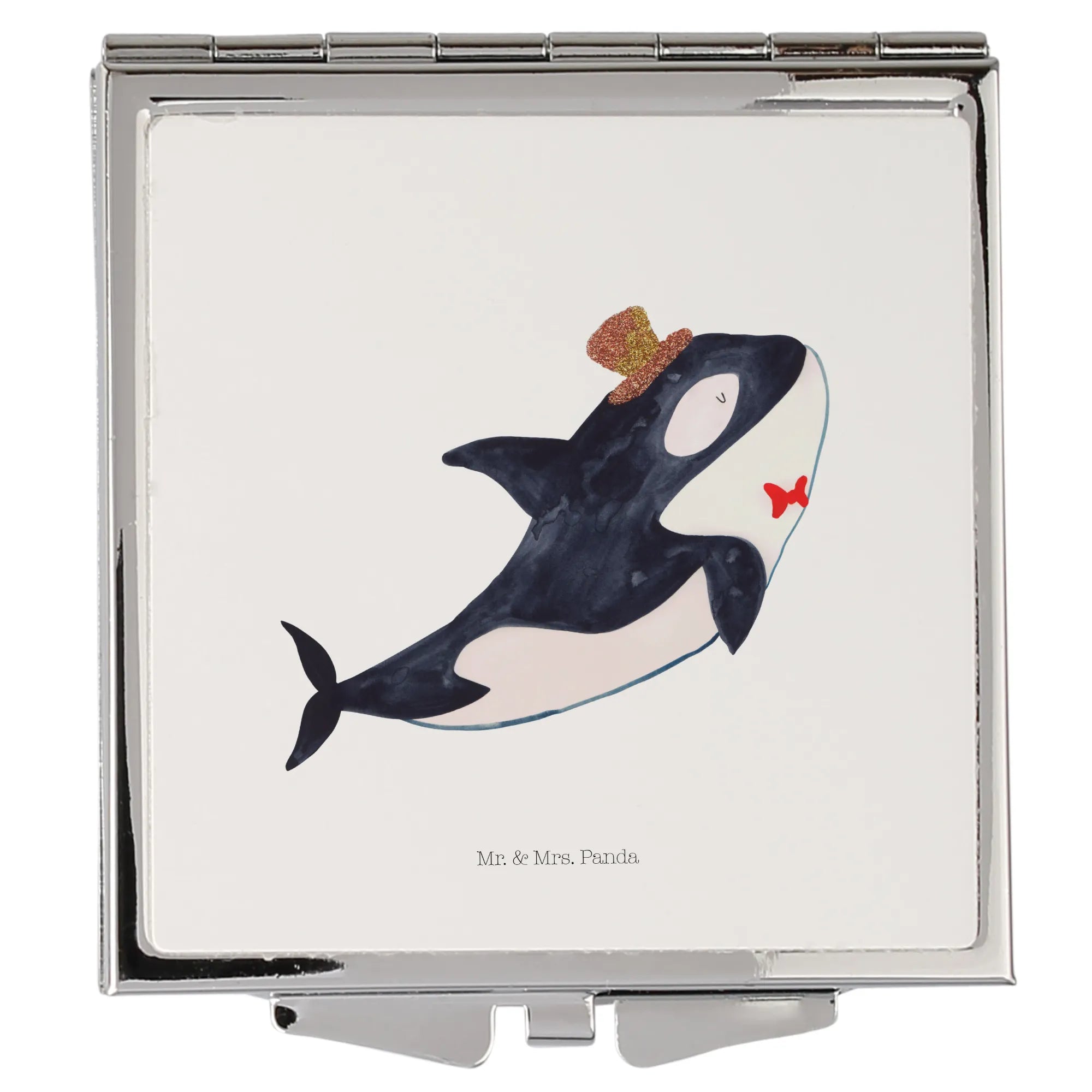 Kwadratowe lusterko do torebki Orka cylinder - z napisem - biały