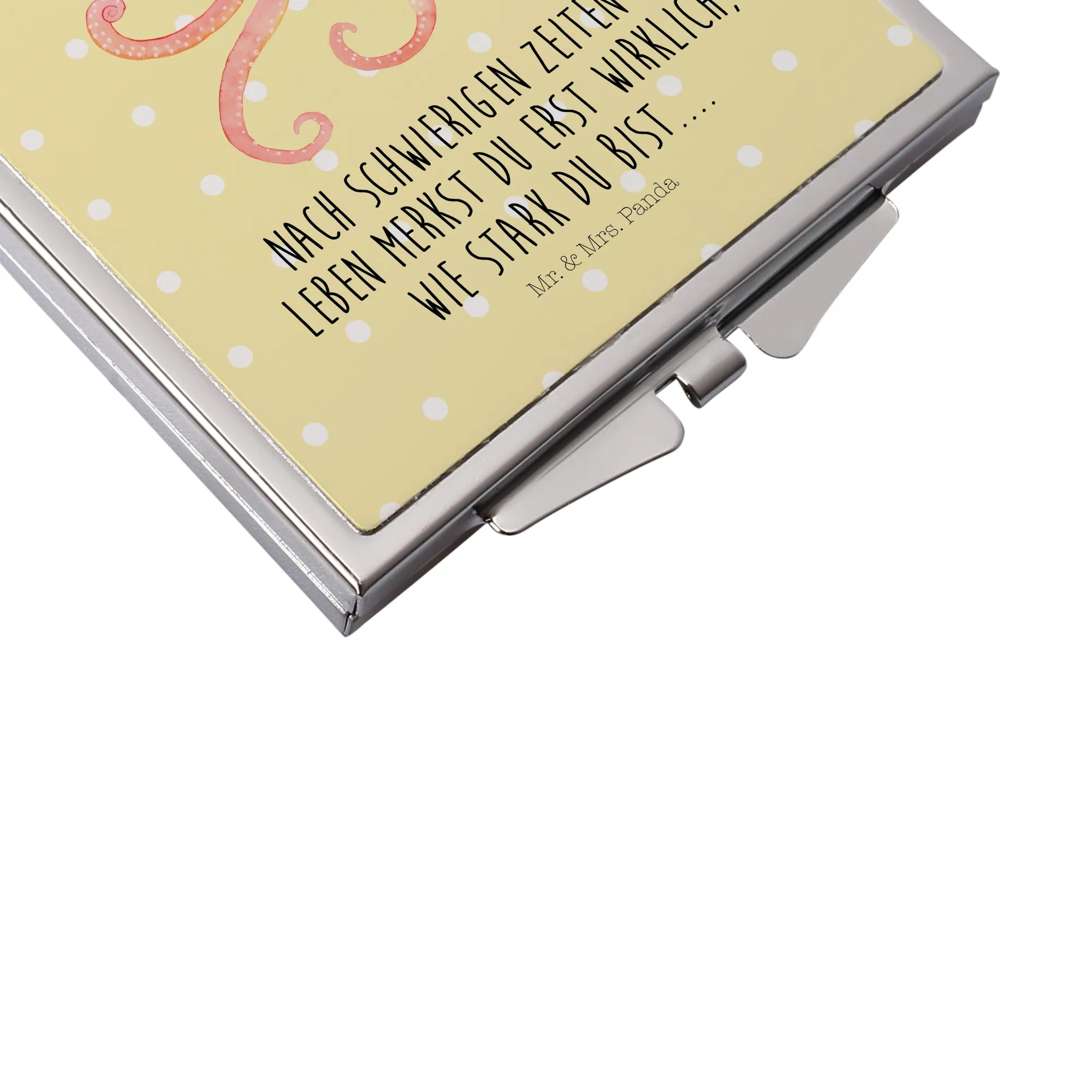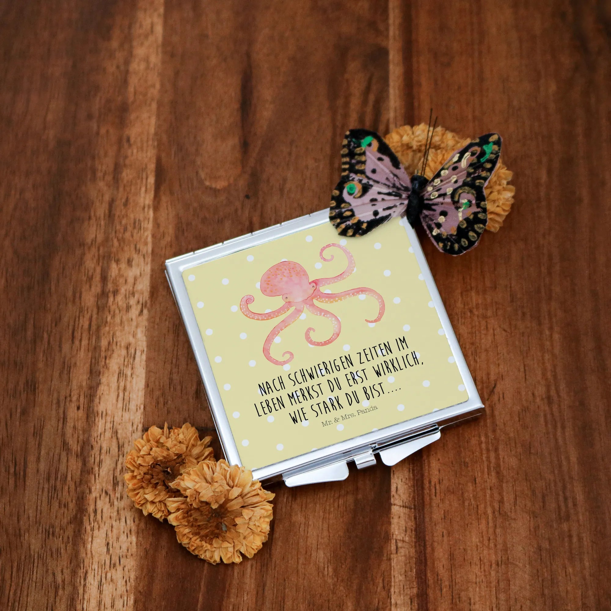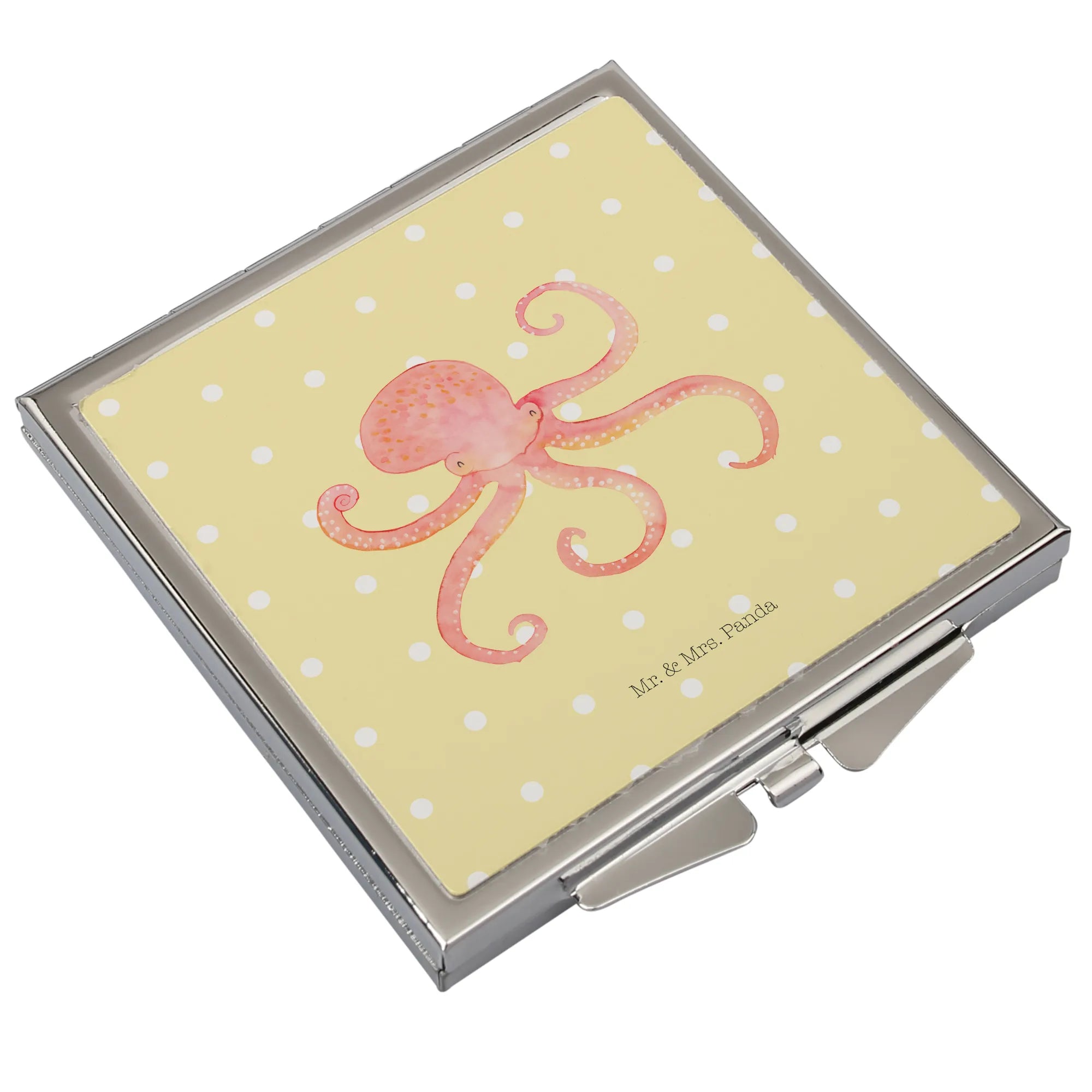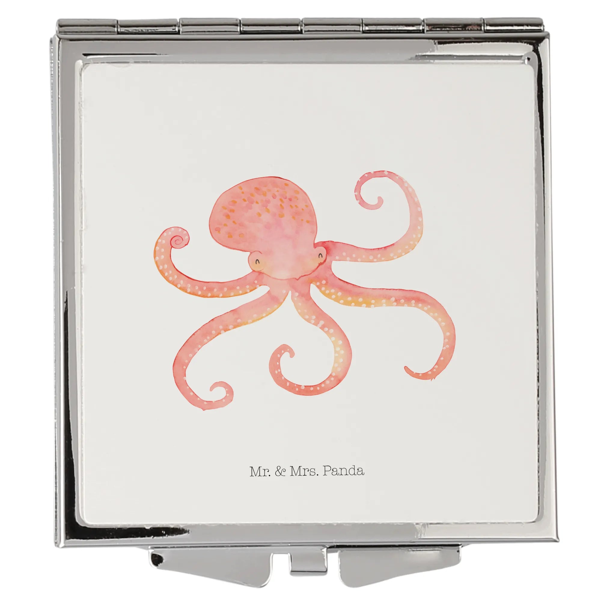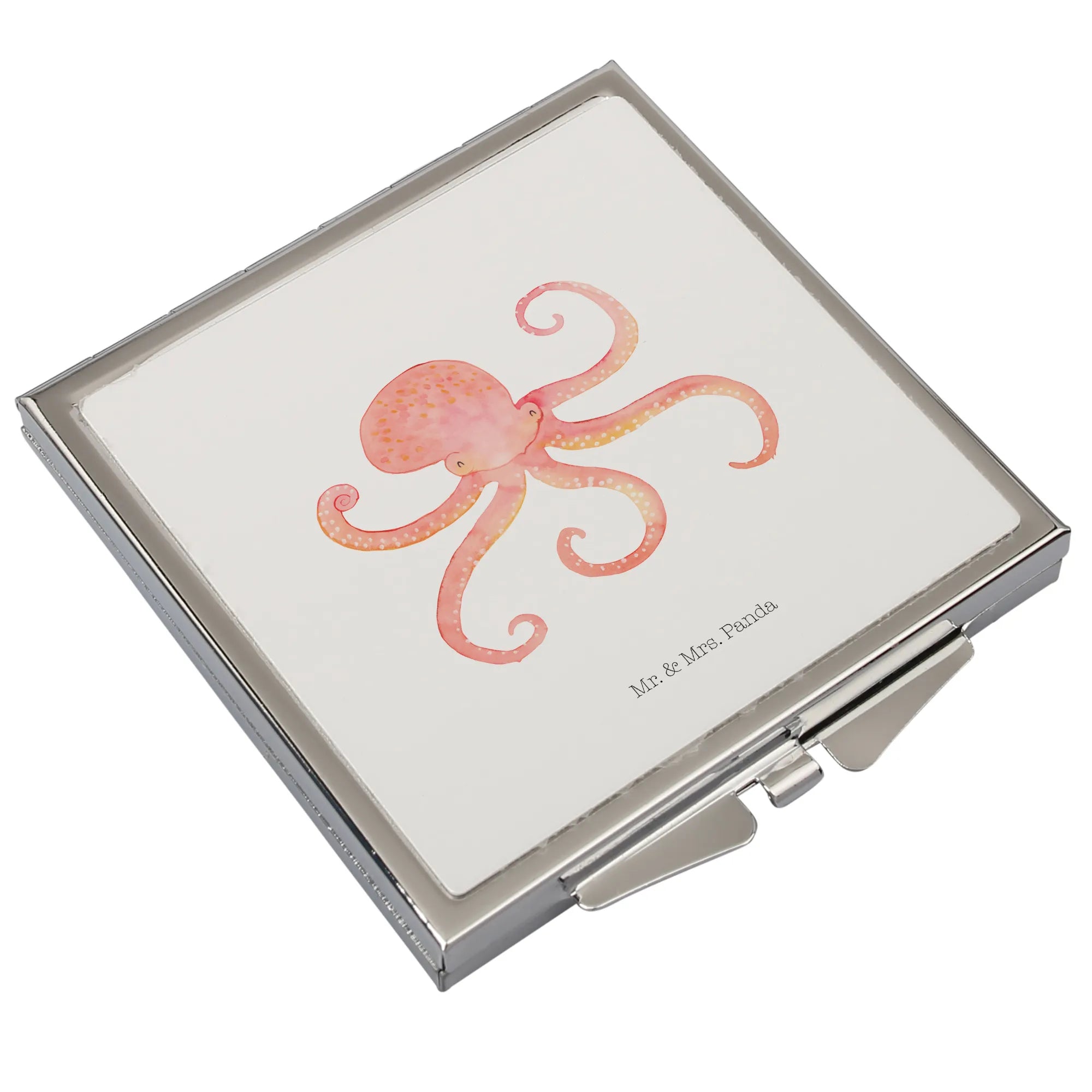 Kwadratowe lusterko do torebki Ośmiornica - z napisem - biały