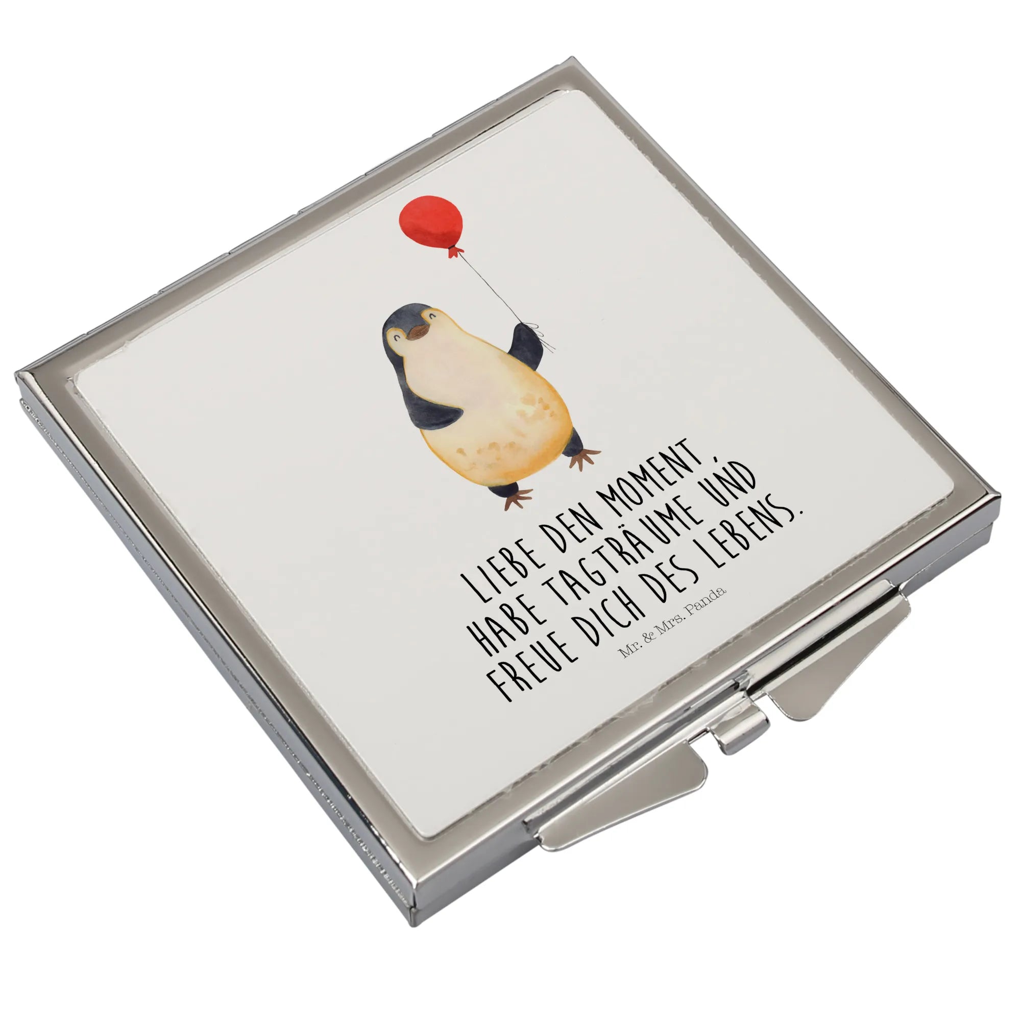 Entdecke den quadratischen Handtaschenspiegel „Pinguin Luftballon“ aus der Pinguin - Kollektion von Mr. & Mrs. Panda. Dieser Taschenspiegel verbindet praktischen Nutzen mit warmherzigem Design: Ein liebevoll aquarellierter Pinguin mit Luftballon und der Spruch „Liebe den Moment, habe Tagträume und freue dich des Lebens.“ schenken dir bei jedem Blick gute Laune.