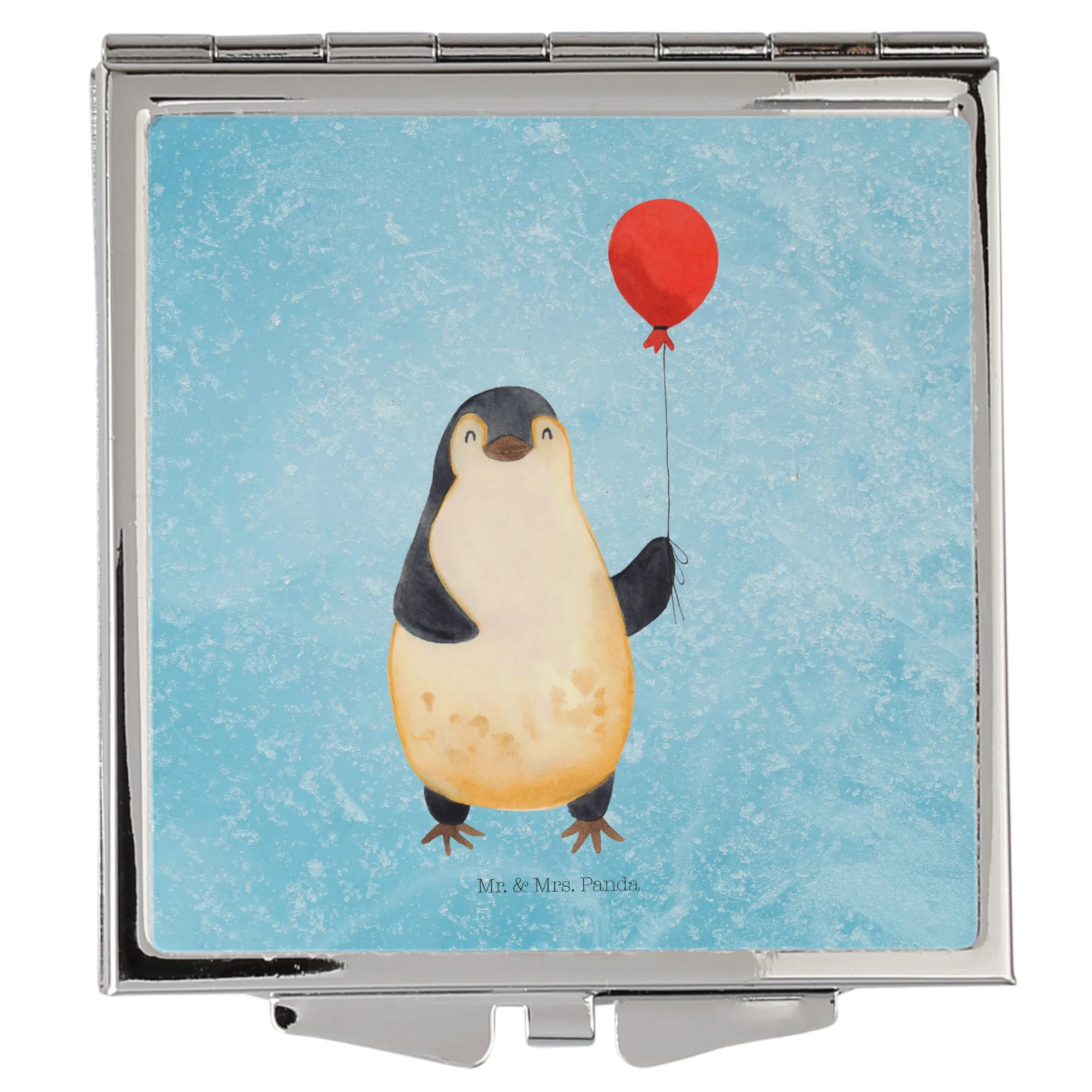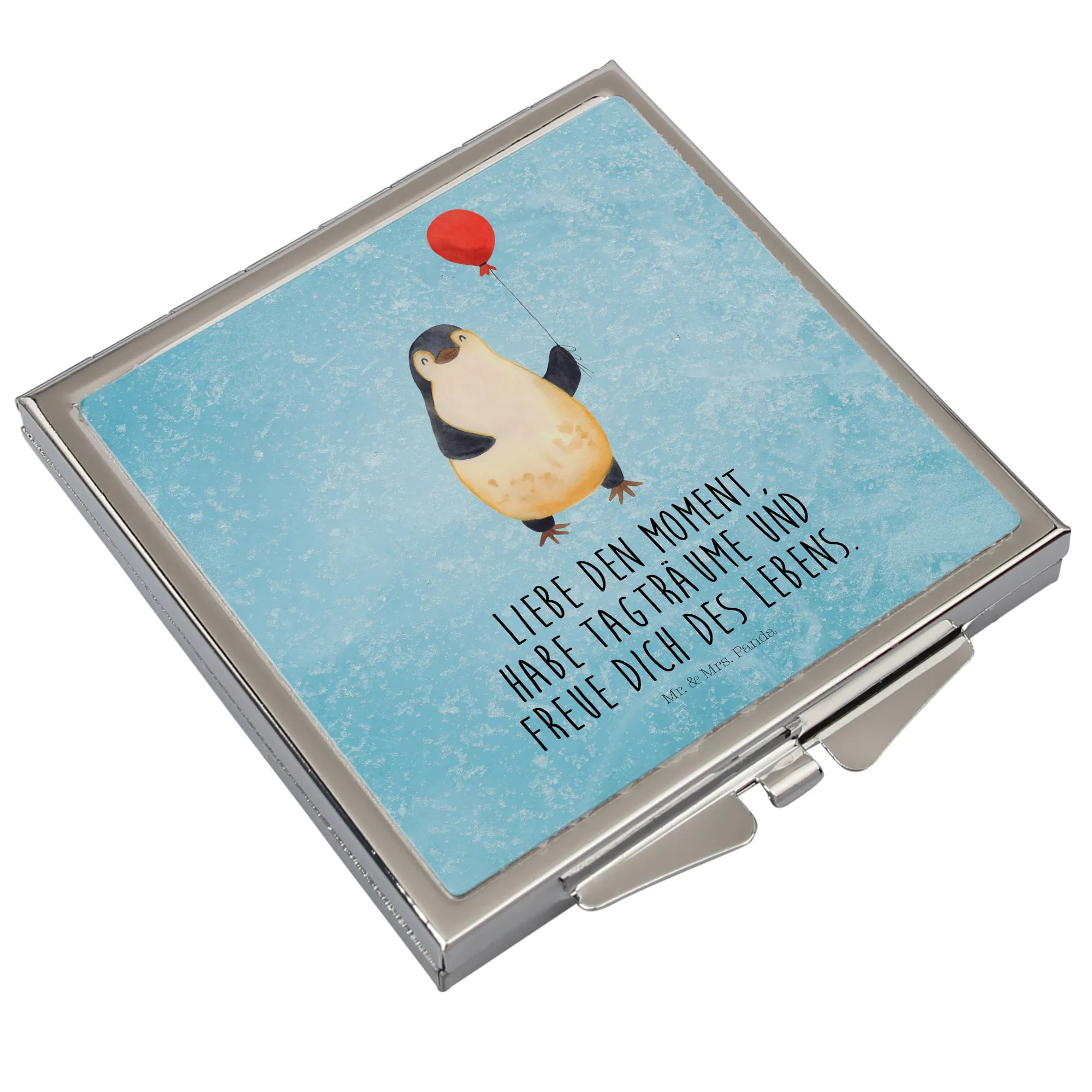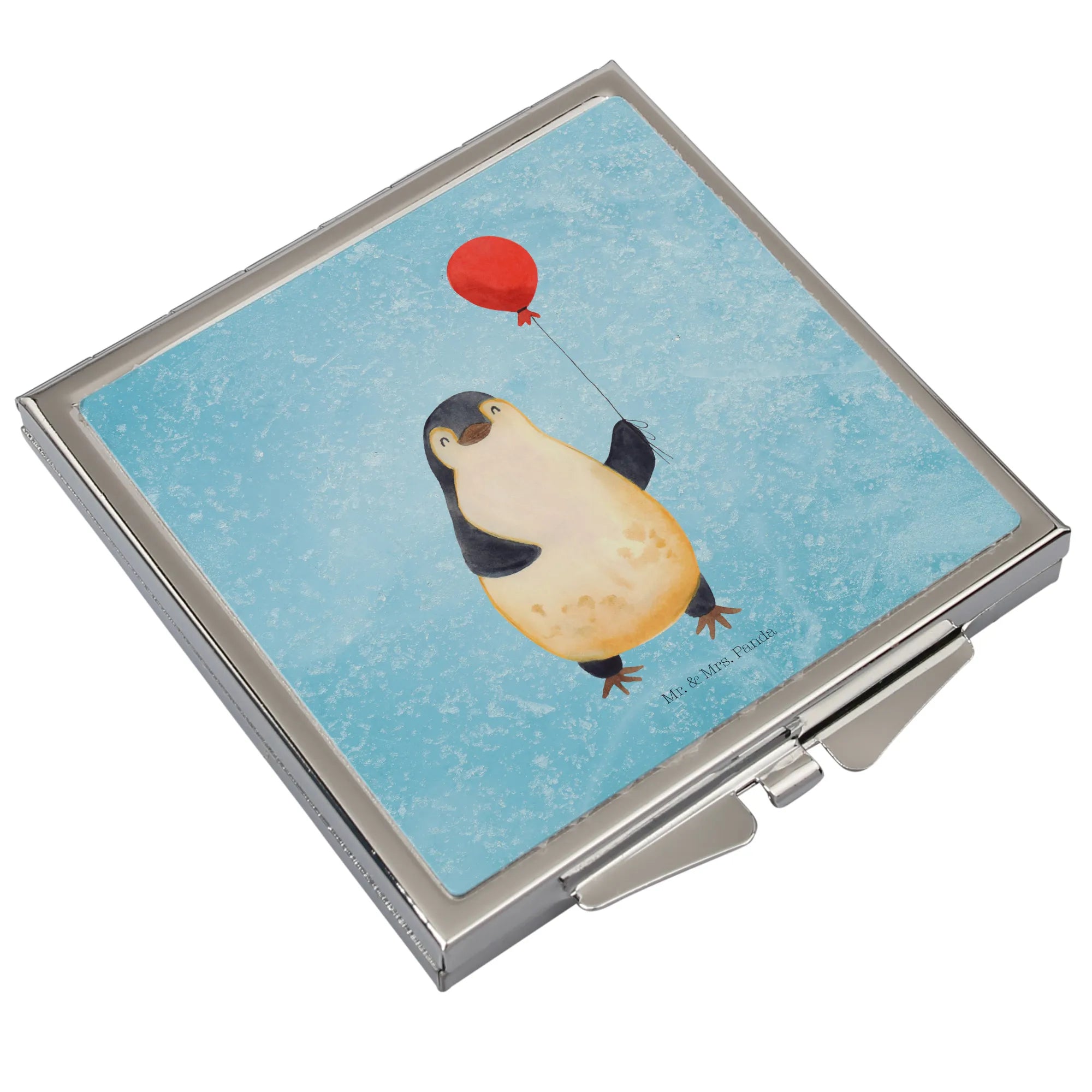 Kwadratowe lusterko do torebki pingwin balon - z napisem - Eisblau
