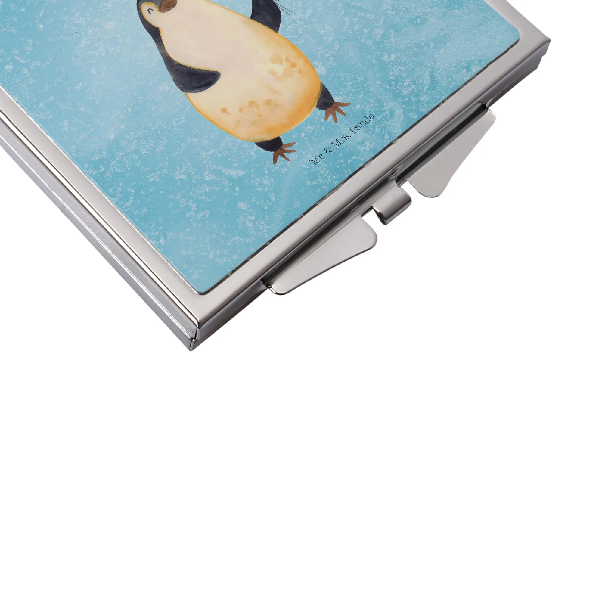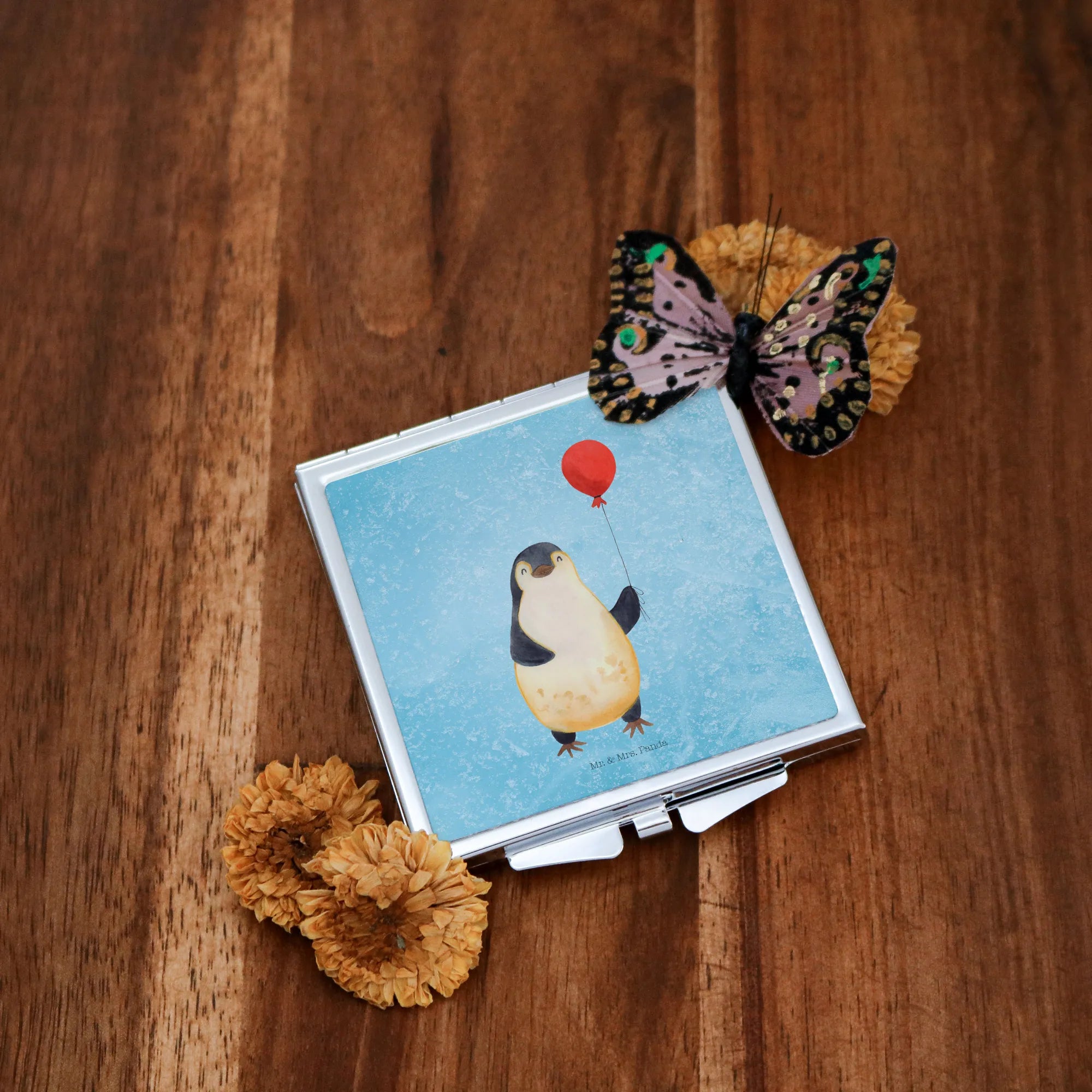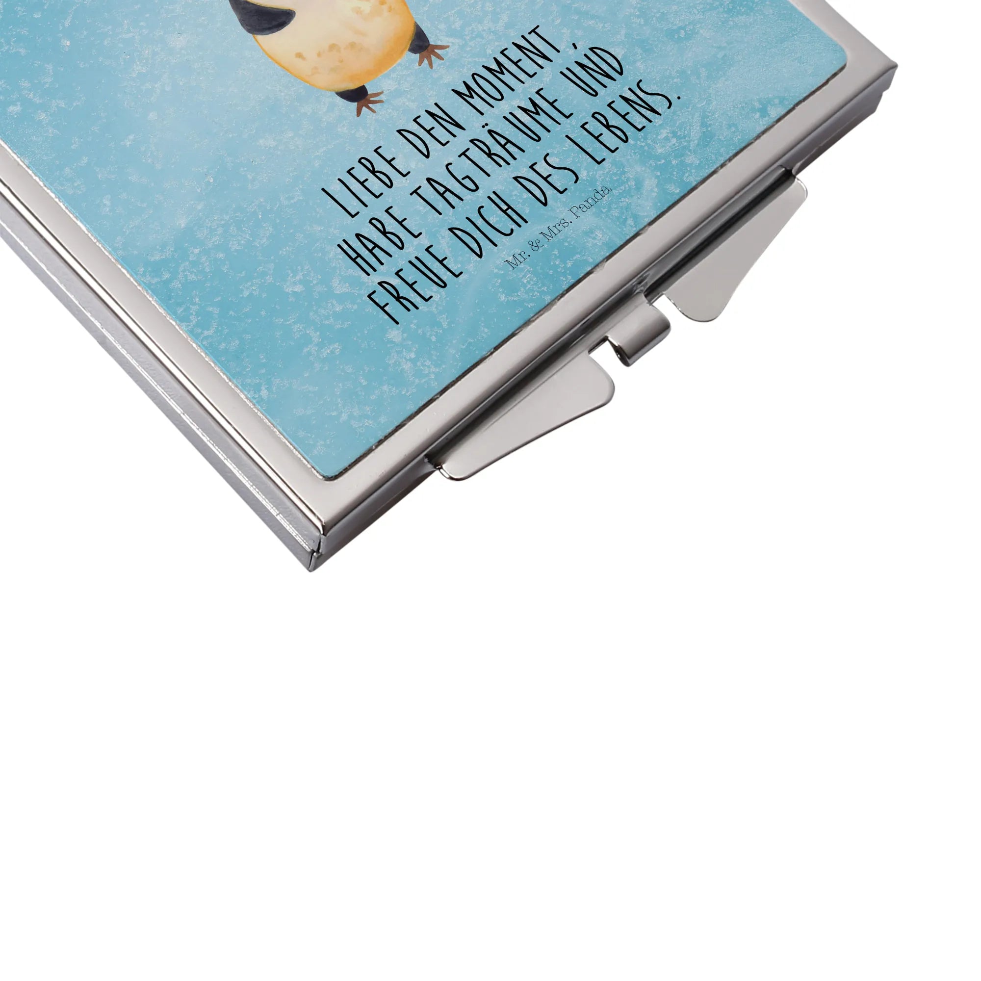 Kwadratowe lusterko do torebki pingwin balon - z napisem - Eisblau