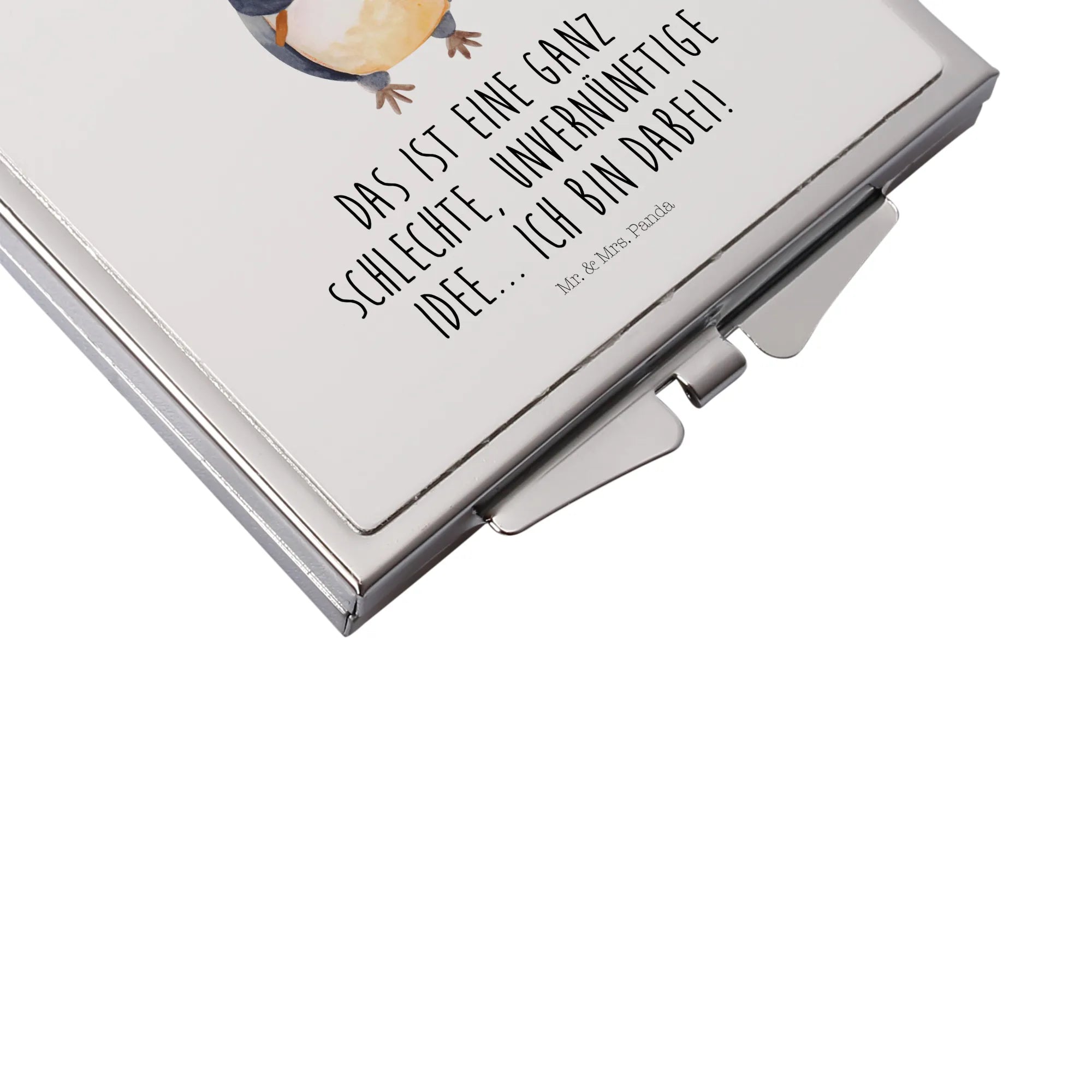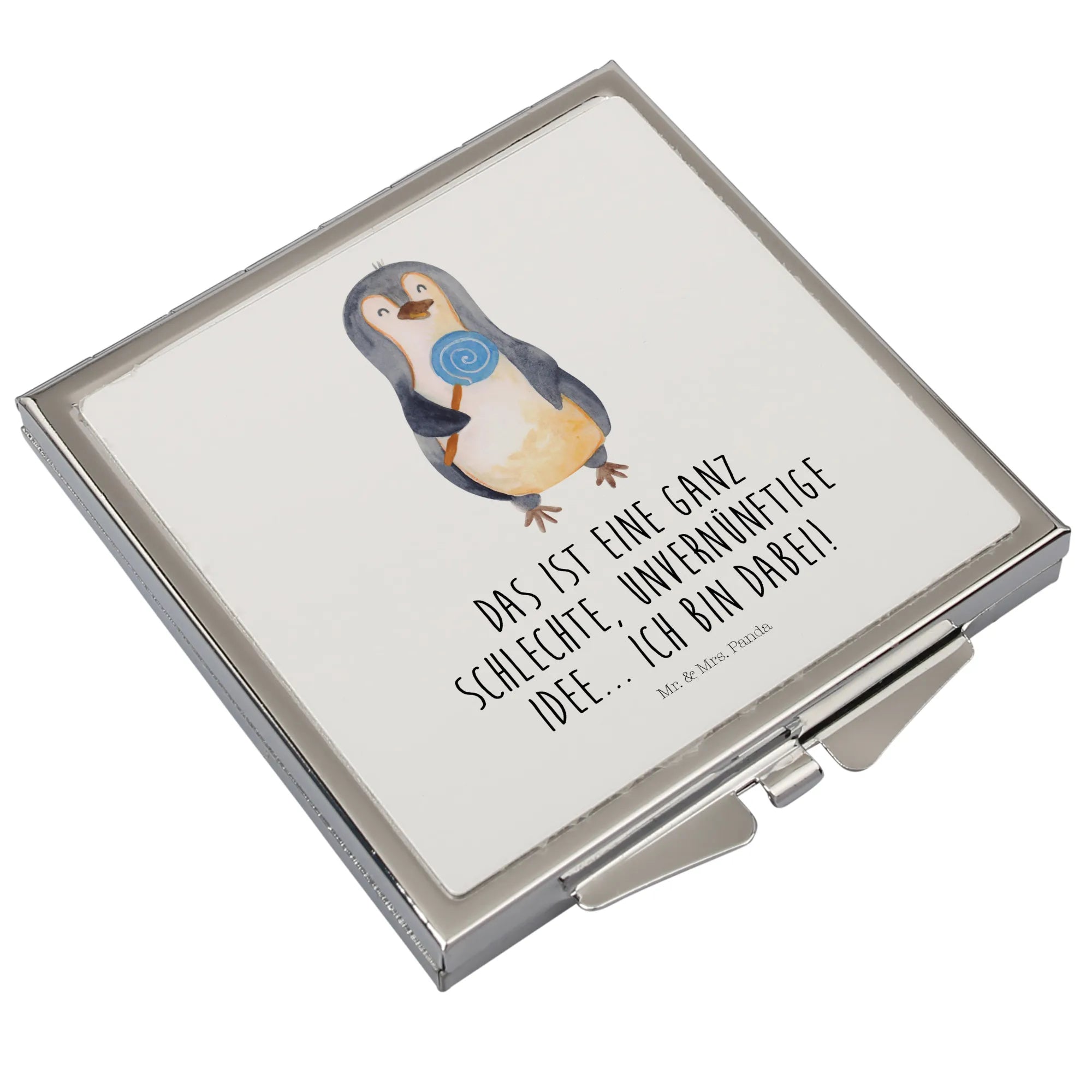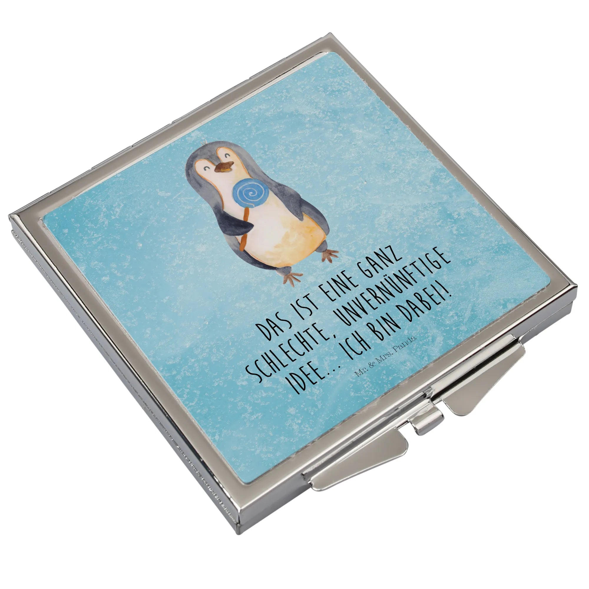 Kwadratowe lusterko do torebki pingwin lizak - z napisem - lodowoniebieski