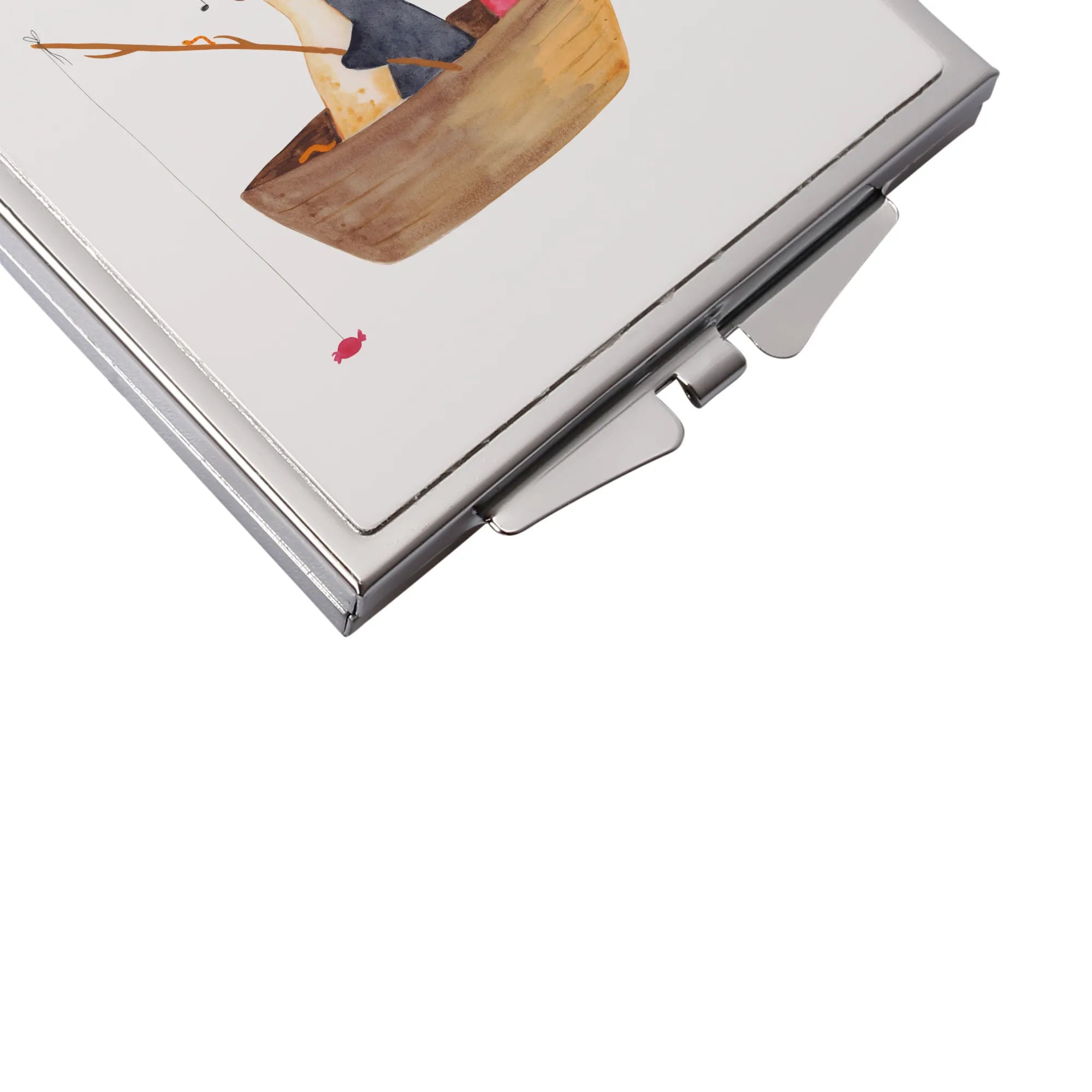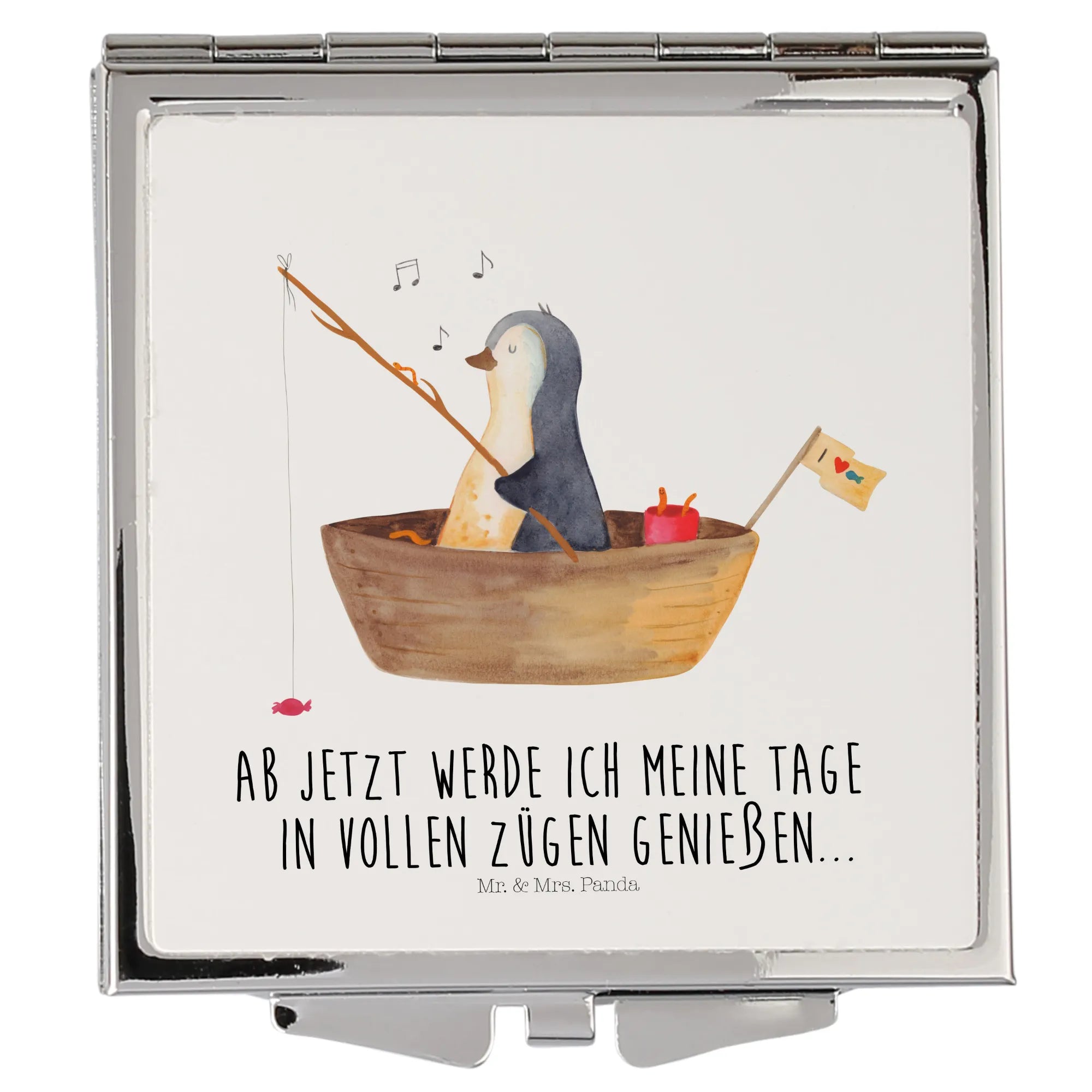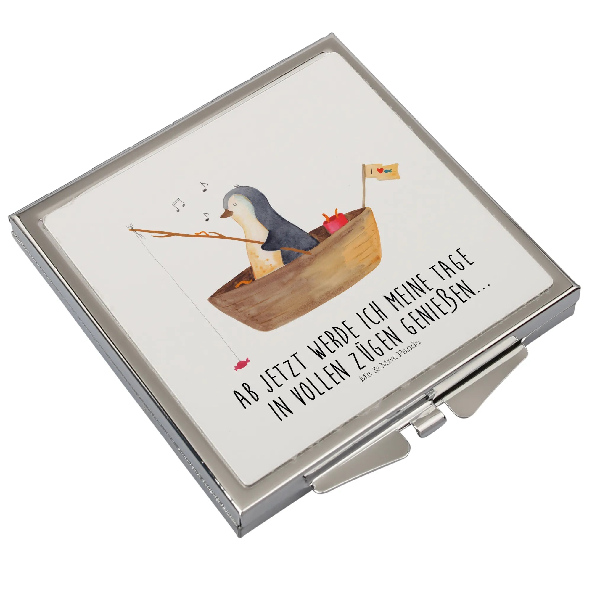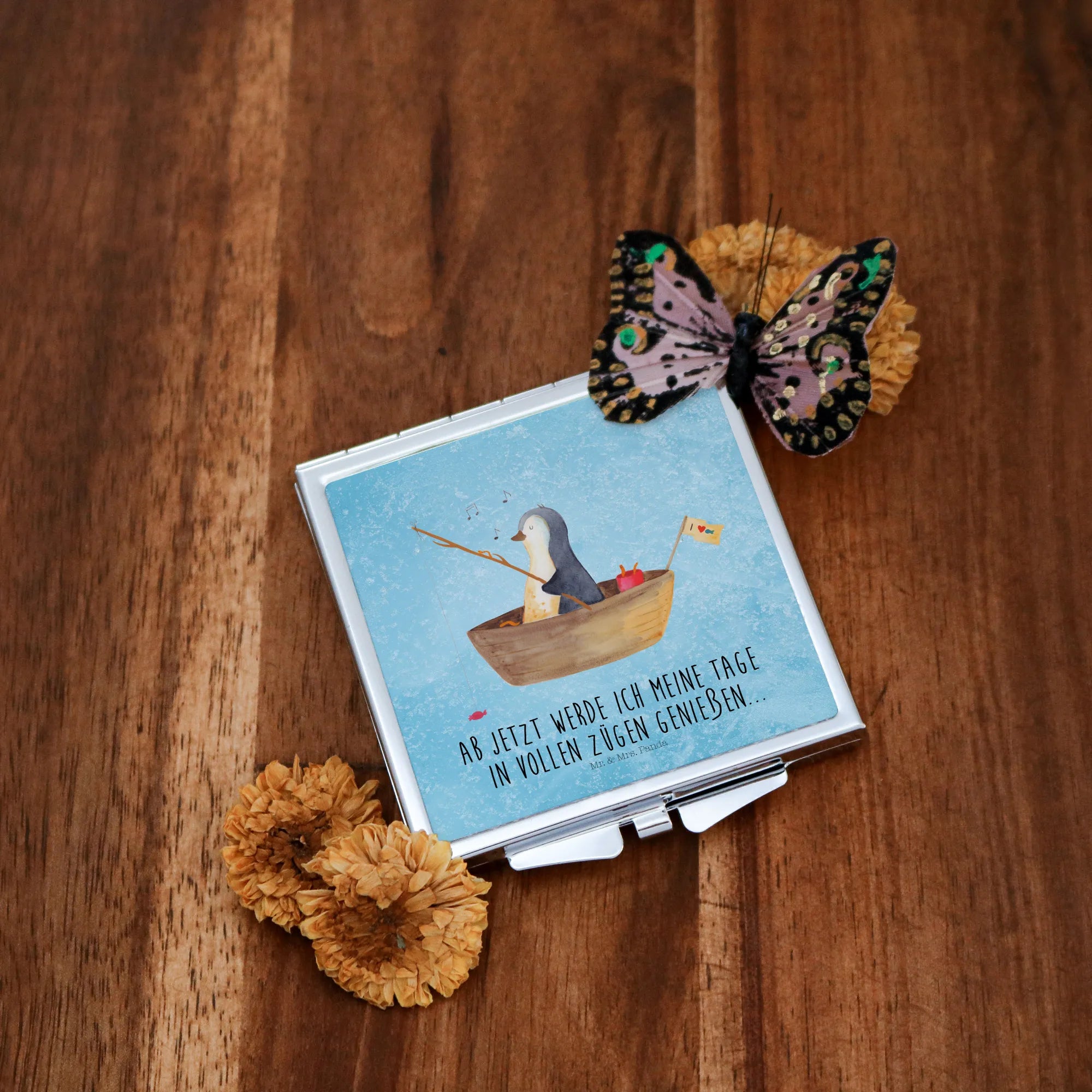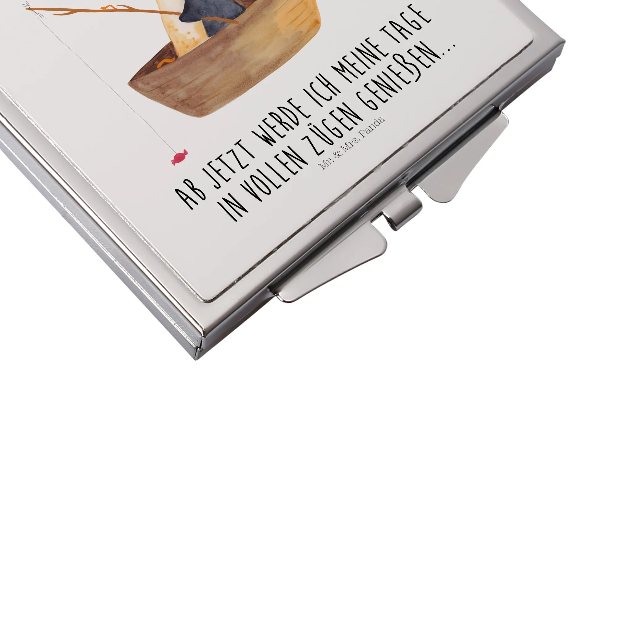Kwadratowe lusterko do torebki pingwin łódka wędkarska - z napisem - Eisblau