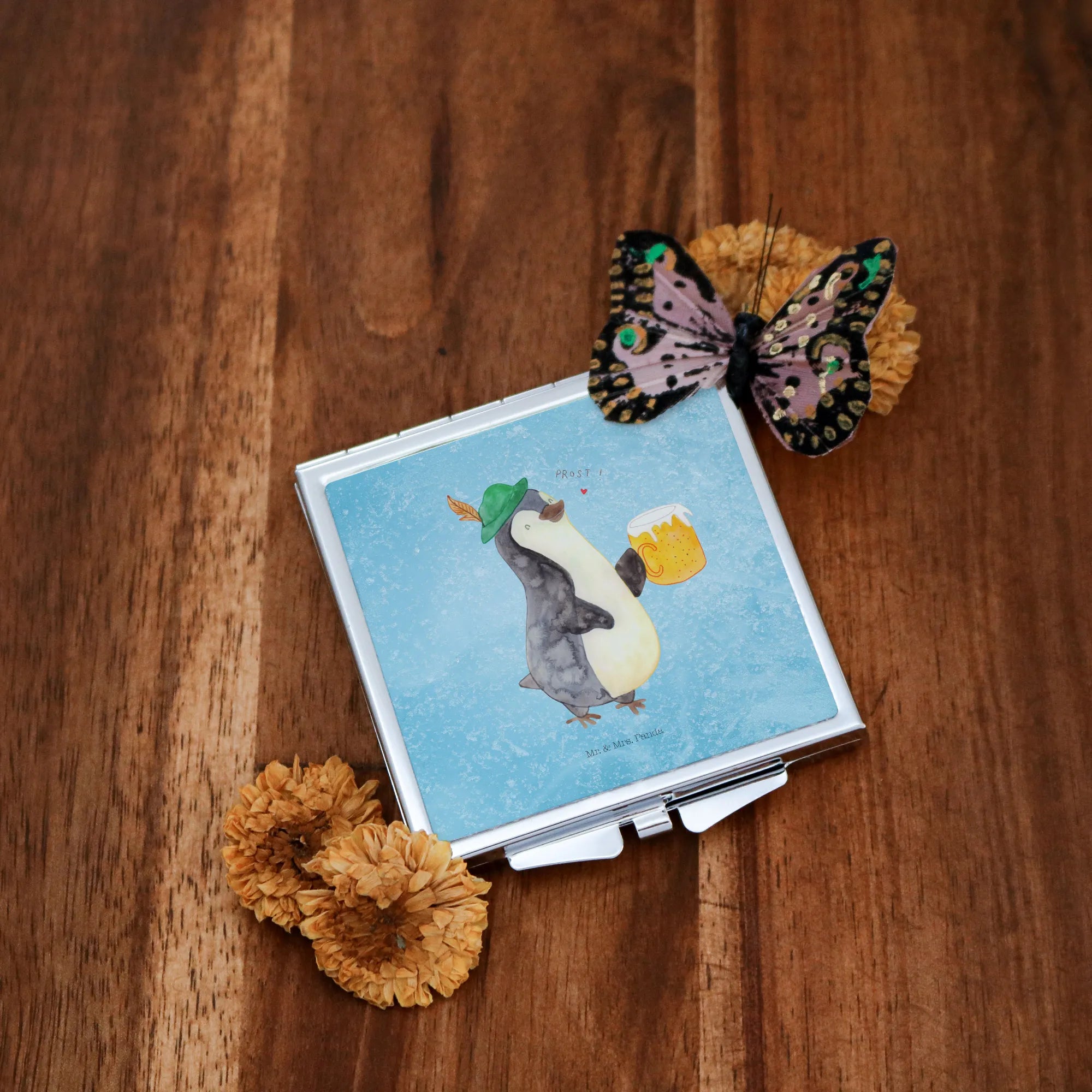 Kwadratowe lusterko do torebki pingwin piwo – Mr. & Mrs. Panda