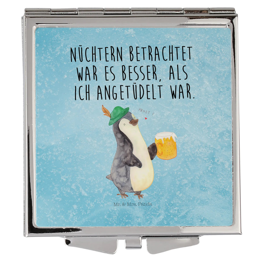 Kwadratowe lusterko do torebki pingwin piwo - z napisem - Eisblau
