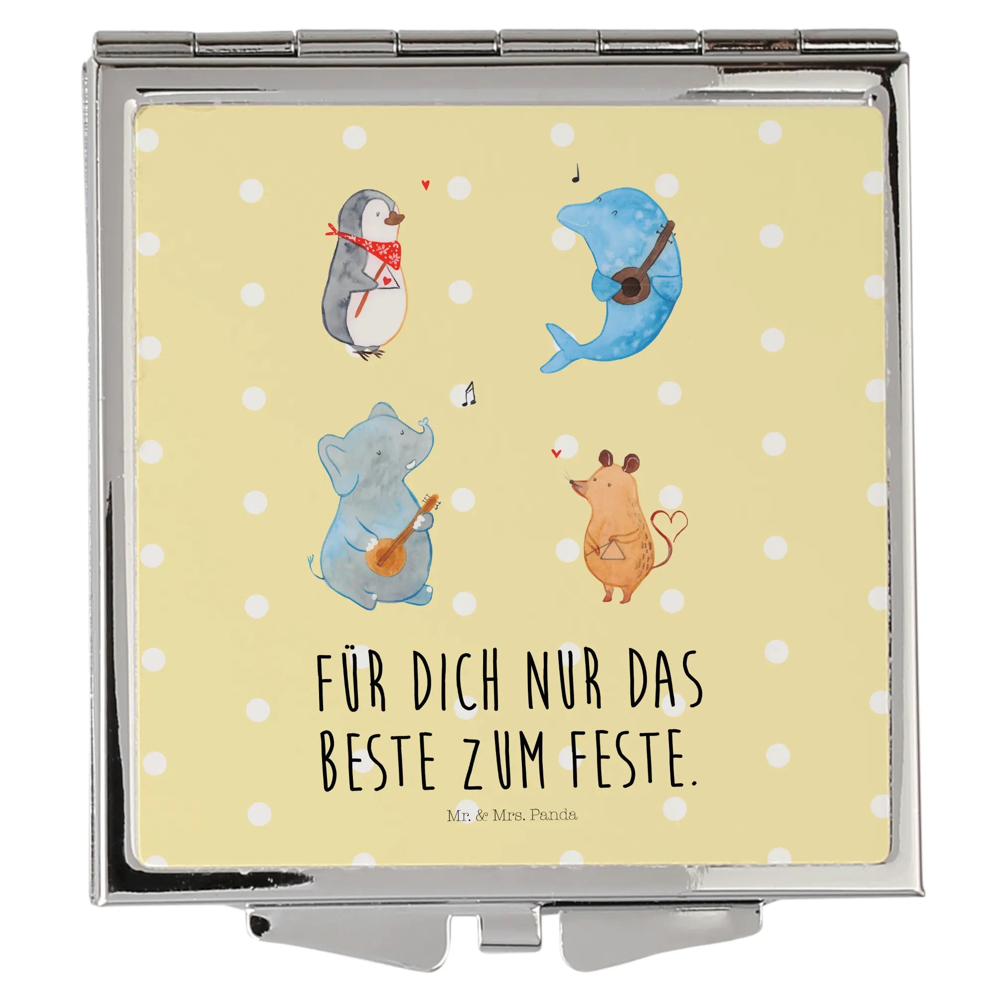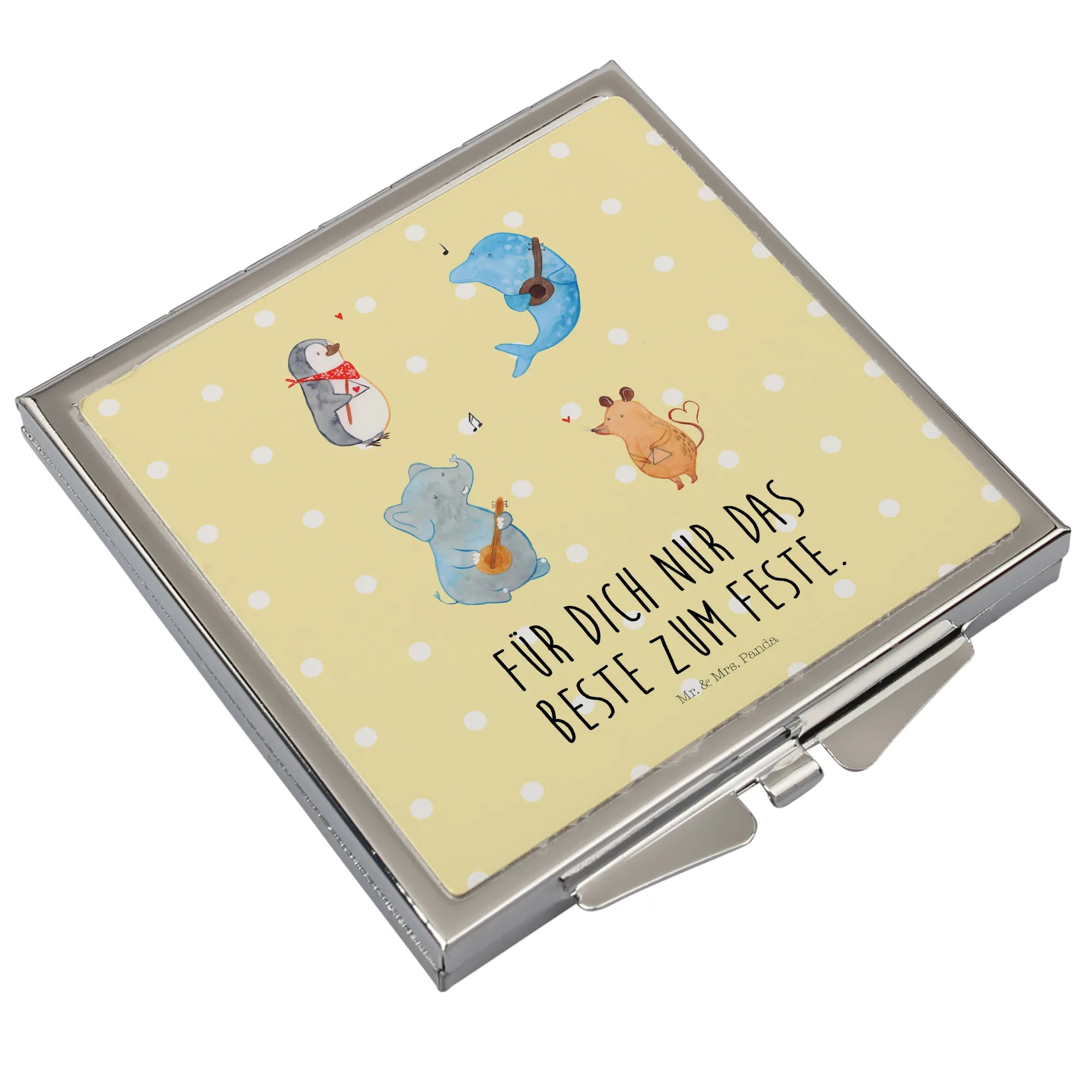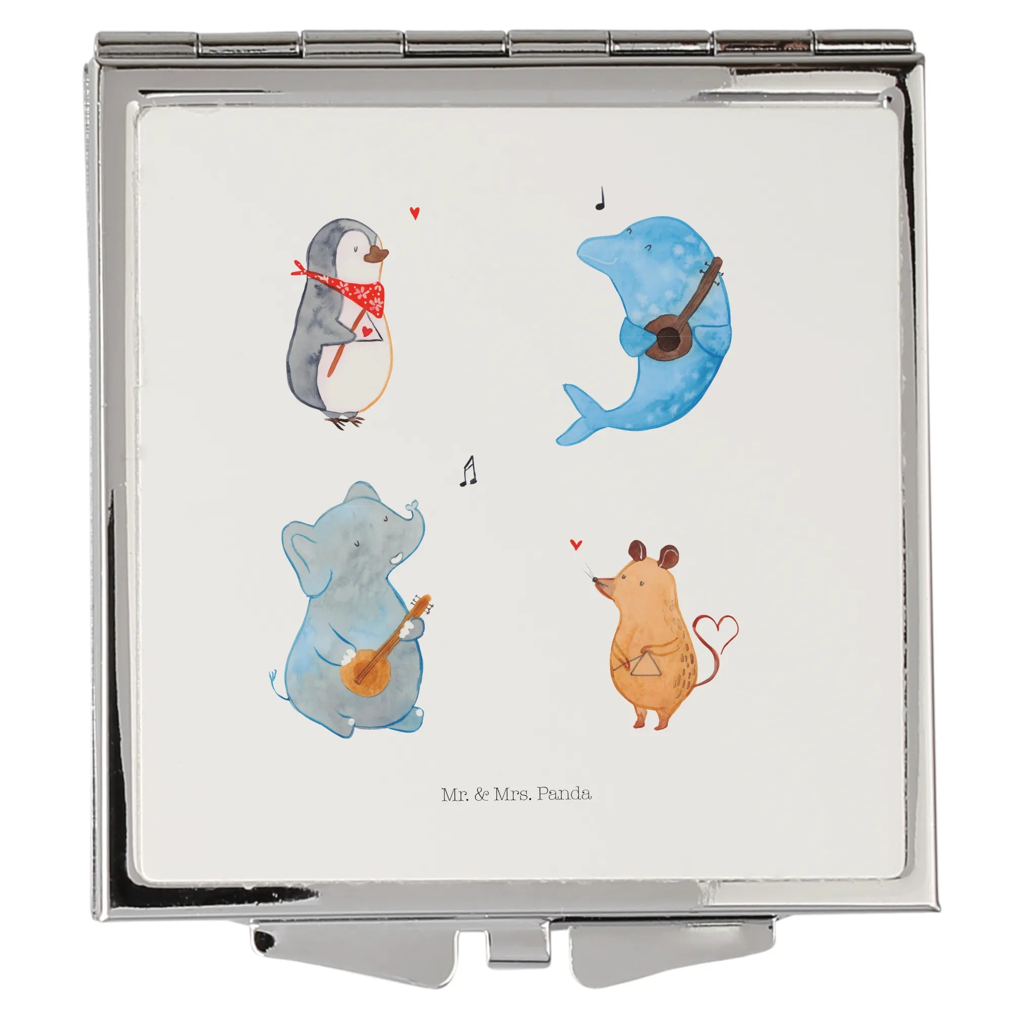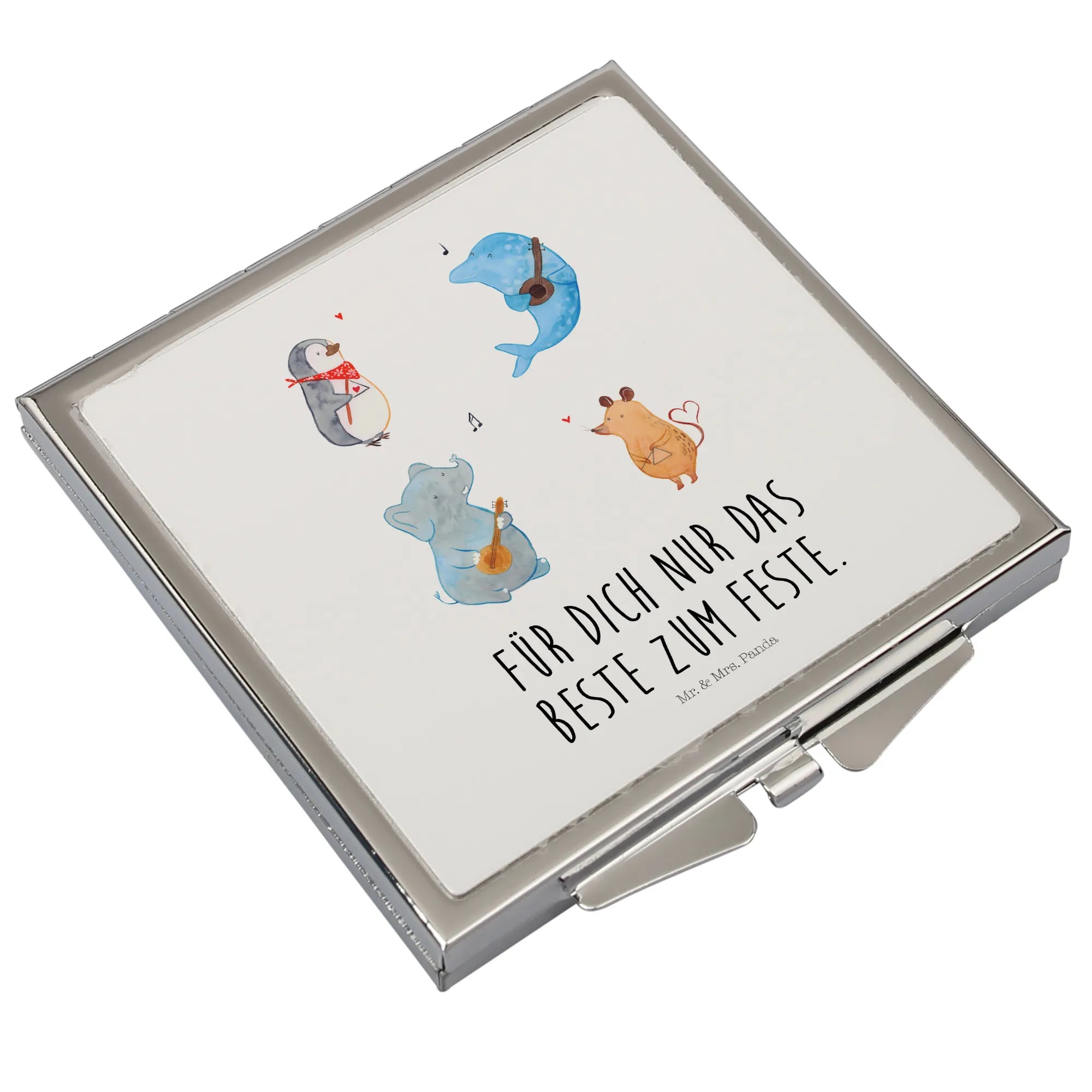Kwadratowe lusterko do torebki Wielki zespół - z napisem - Biały