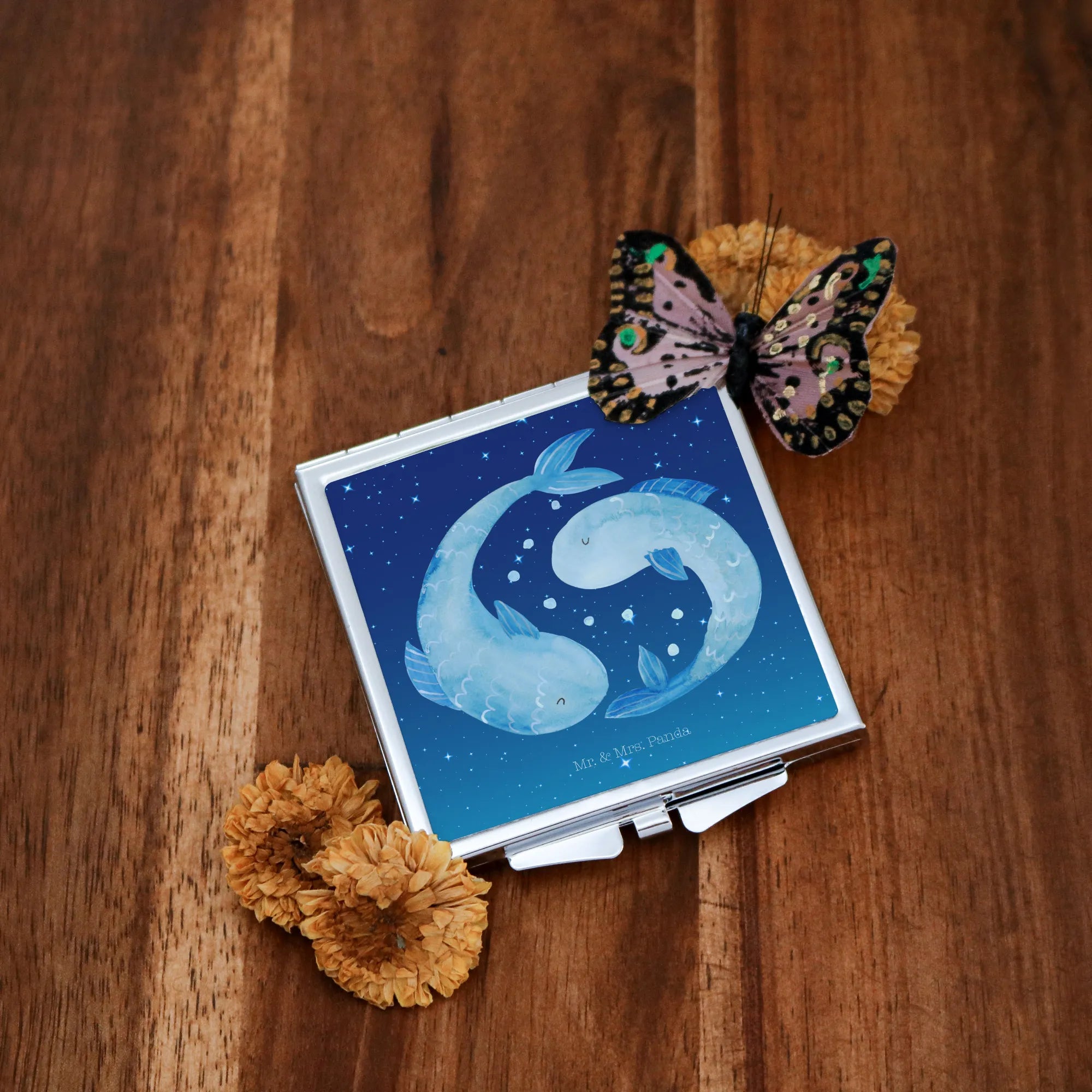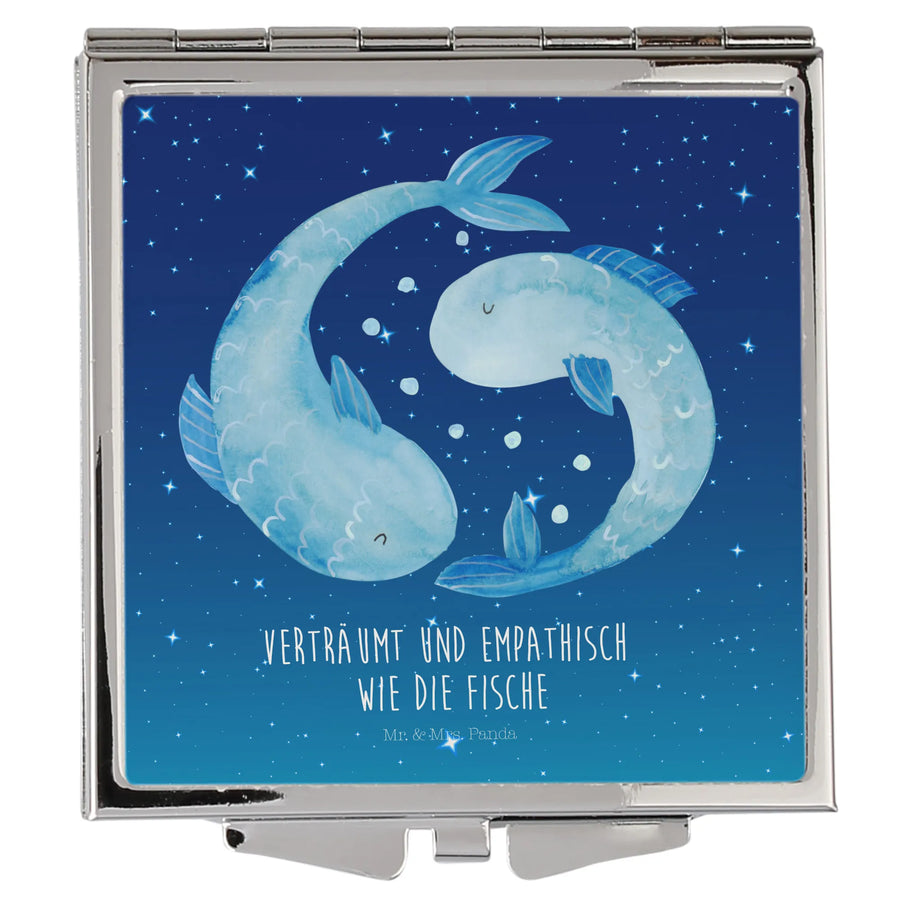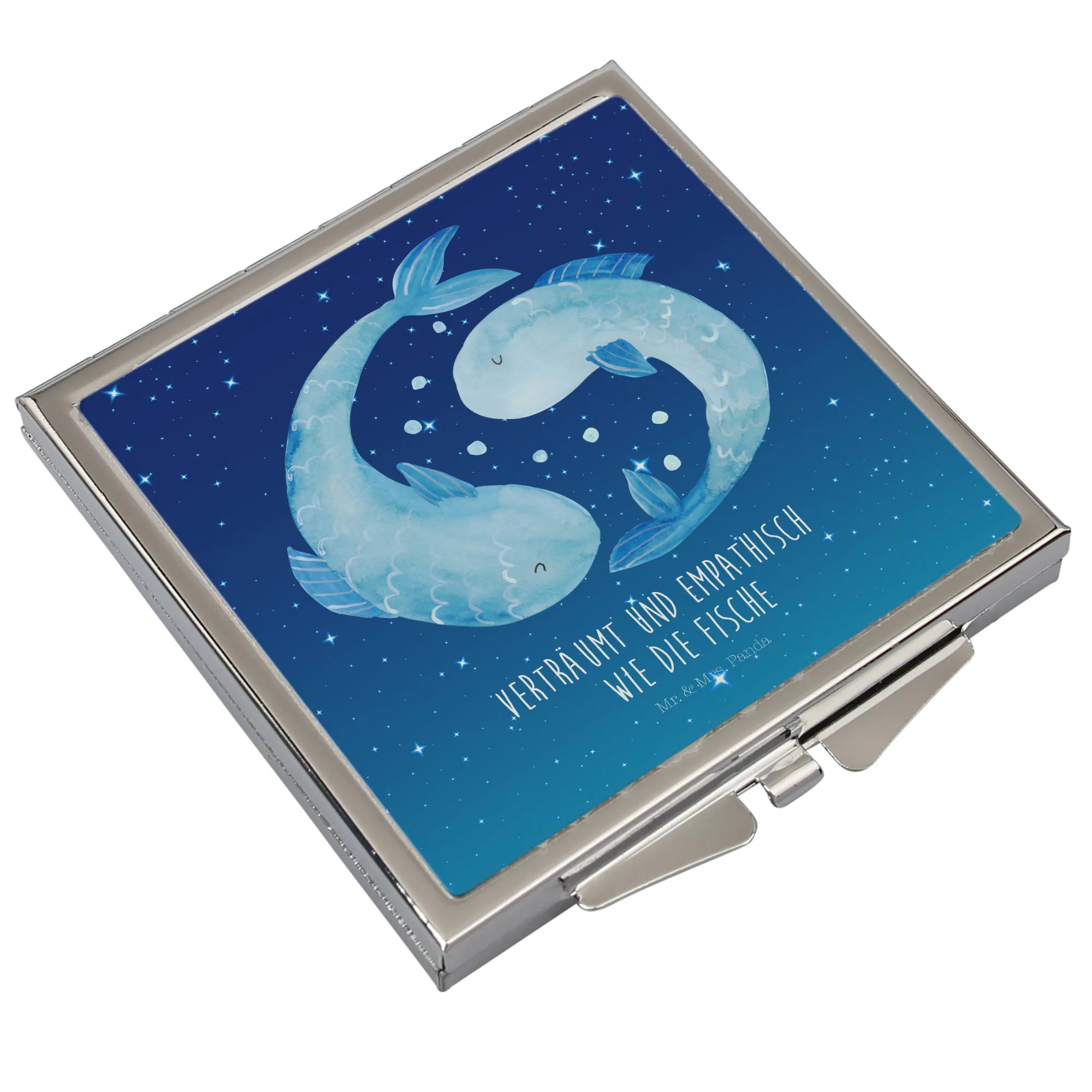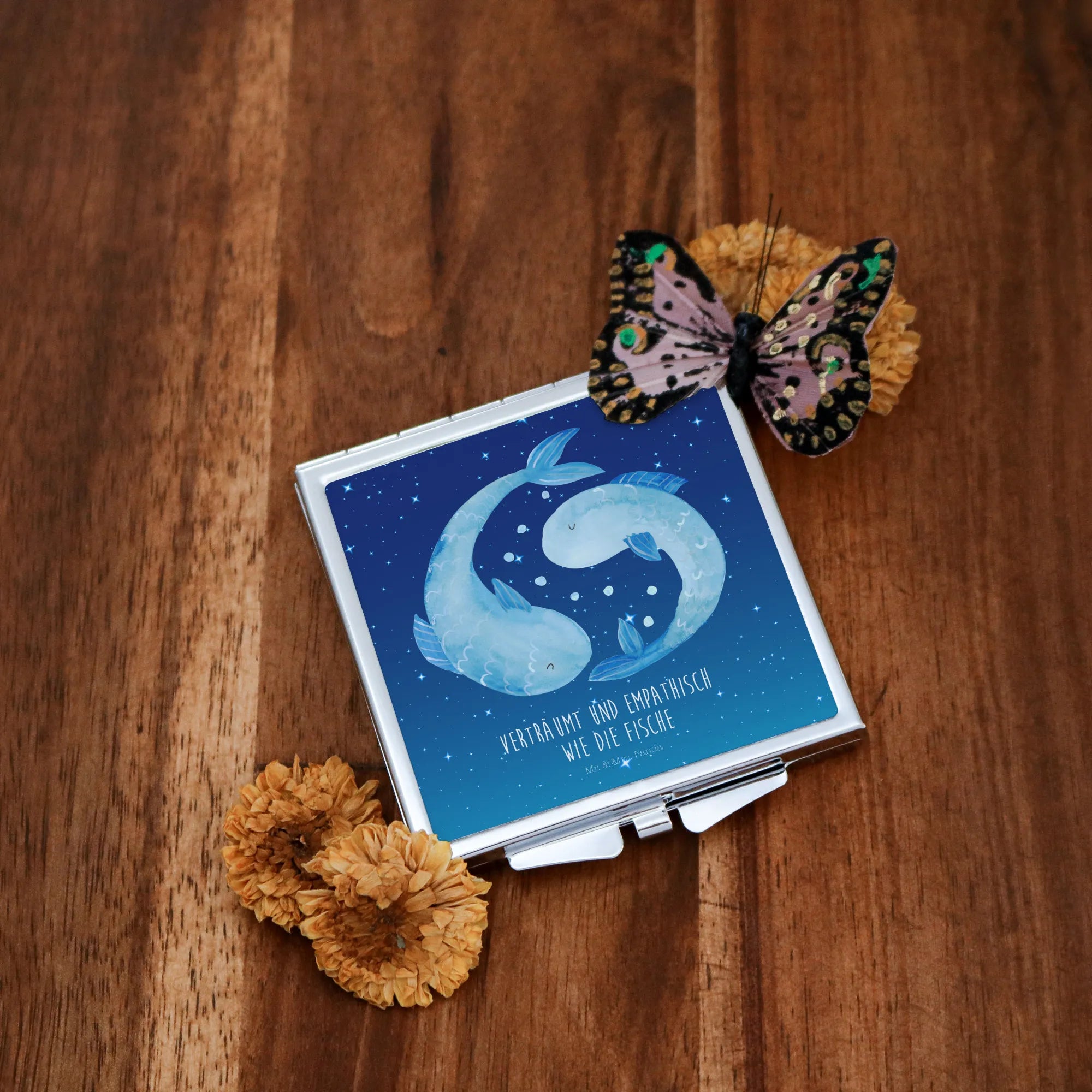 Kwadratowe lusterko do torebki znak zodiaku Ryby - z napisem - Sternenhimmel Blau