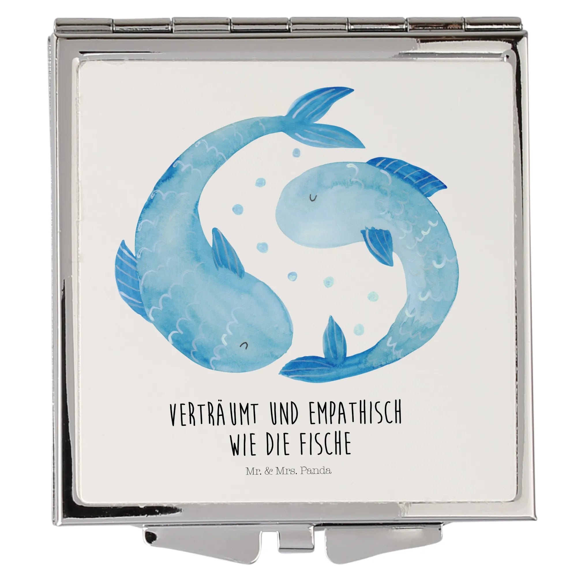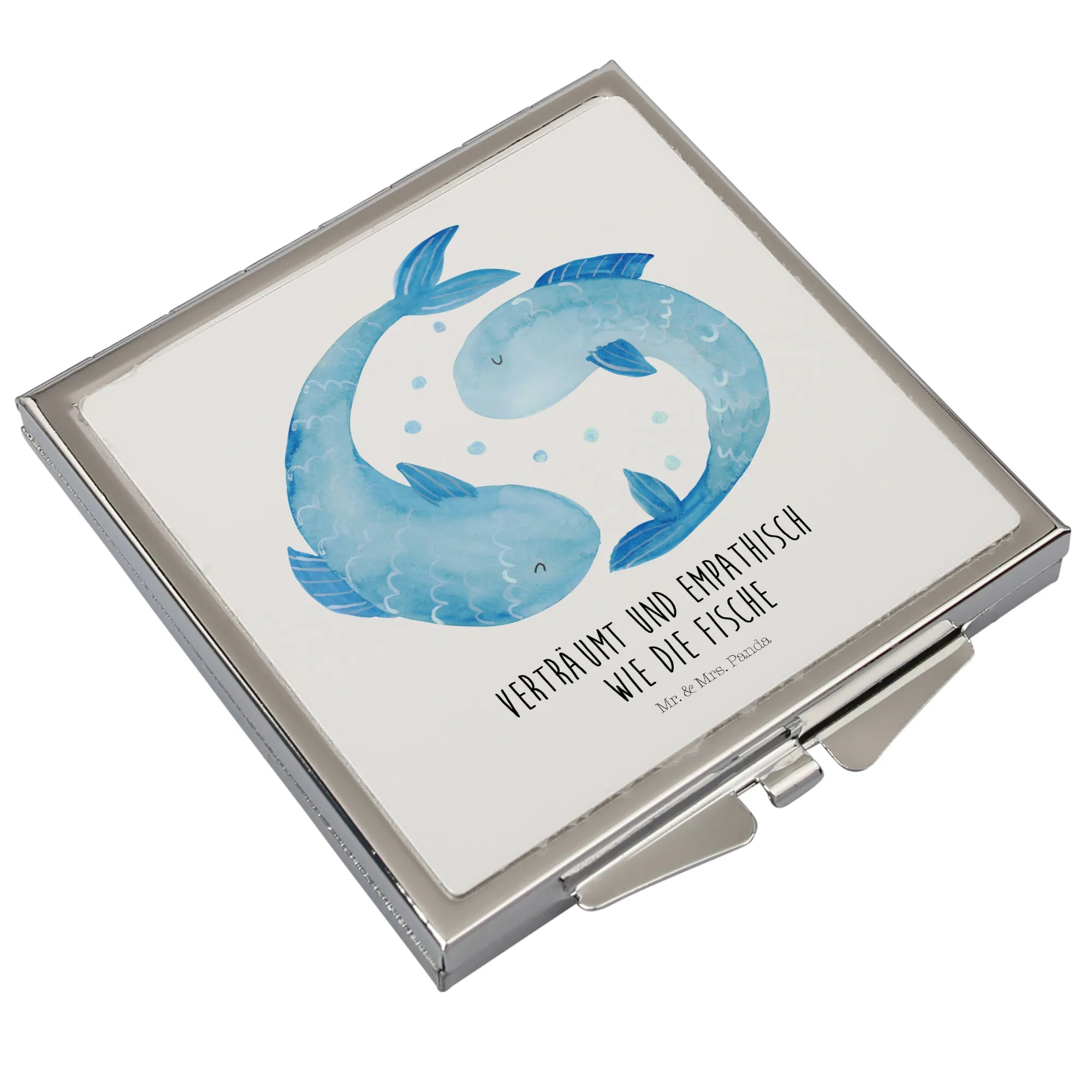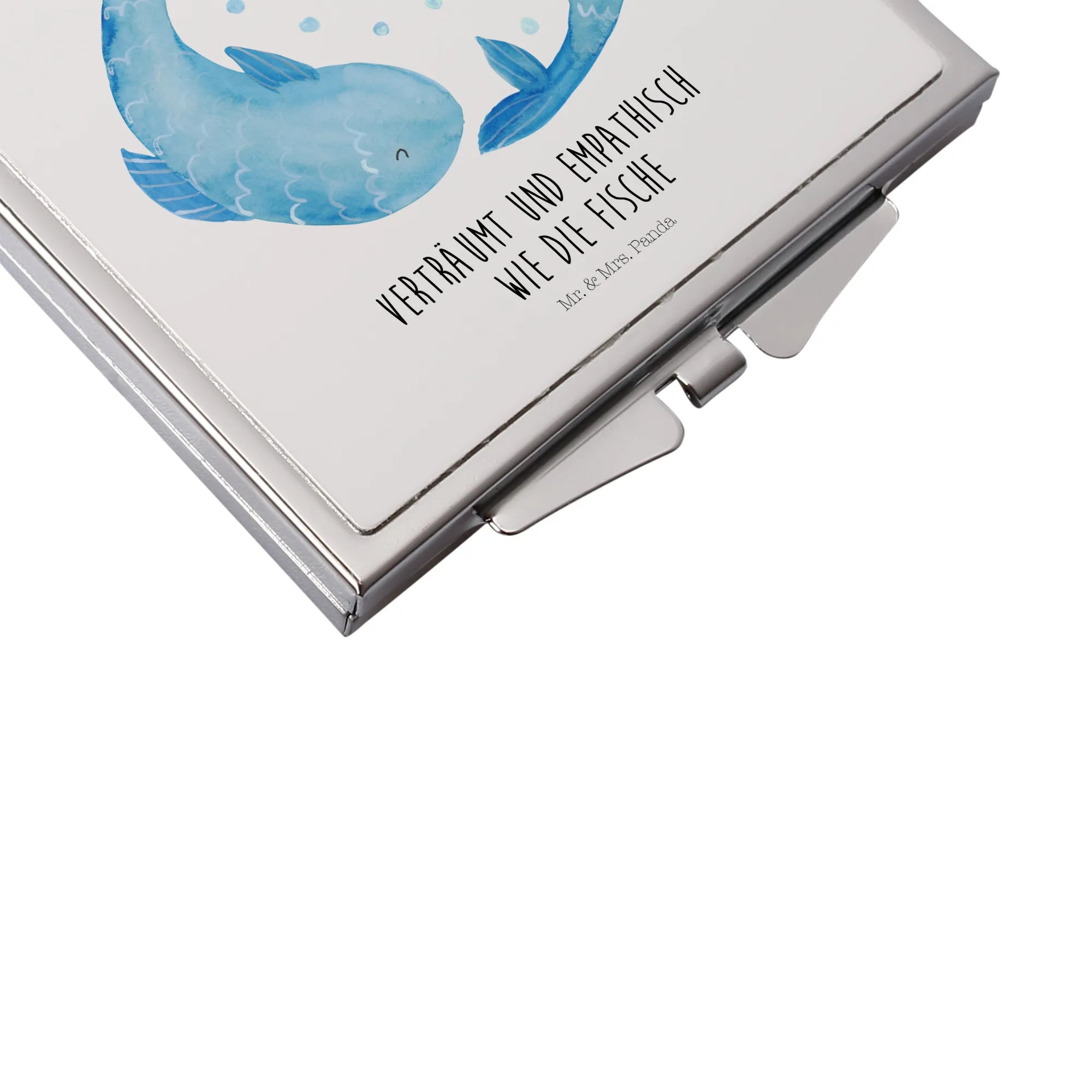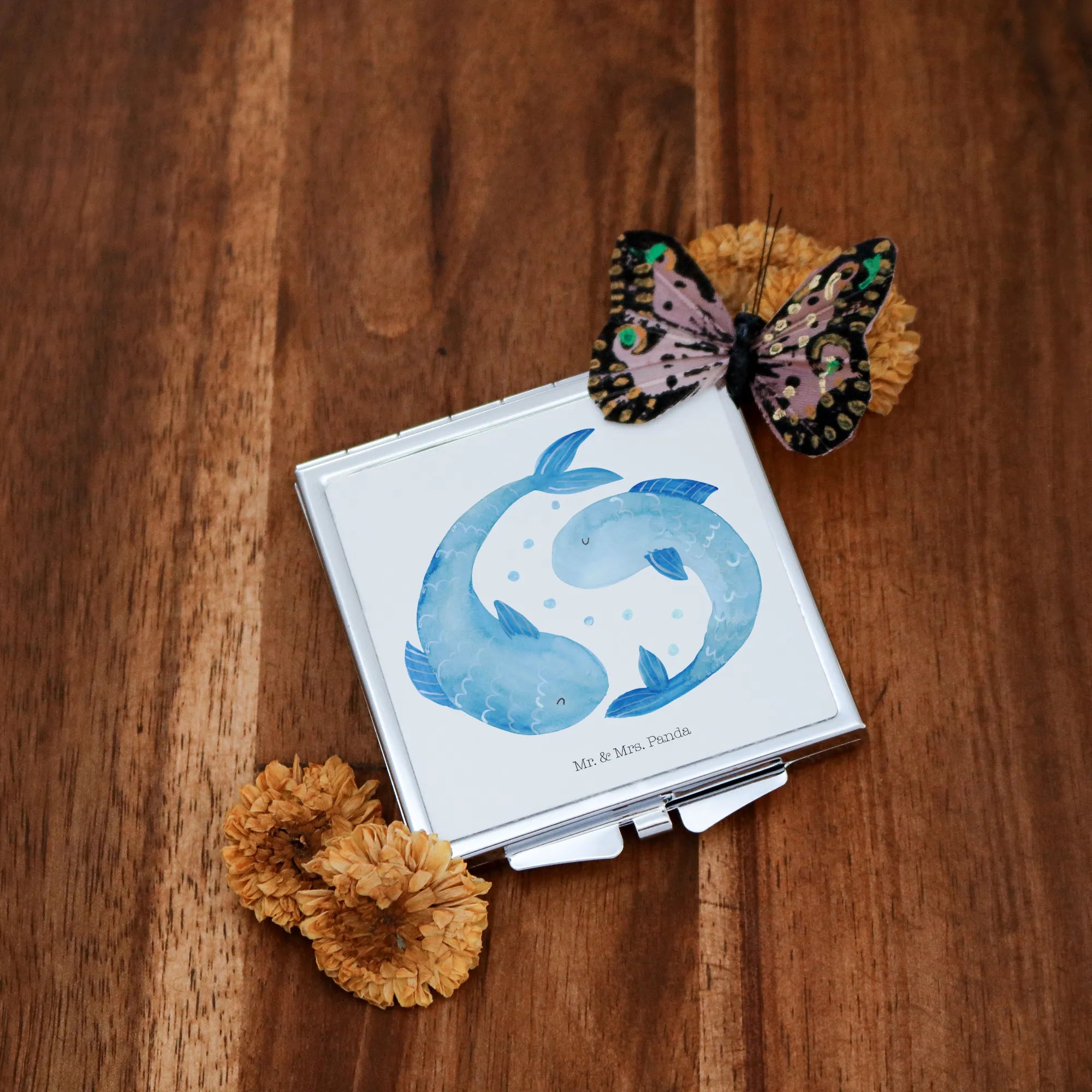 Kwadratowe lusterko do torebki znak zodiaku Ryby - z napisem - Sternenhimmel Blau