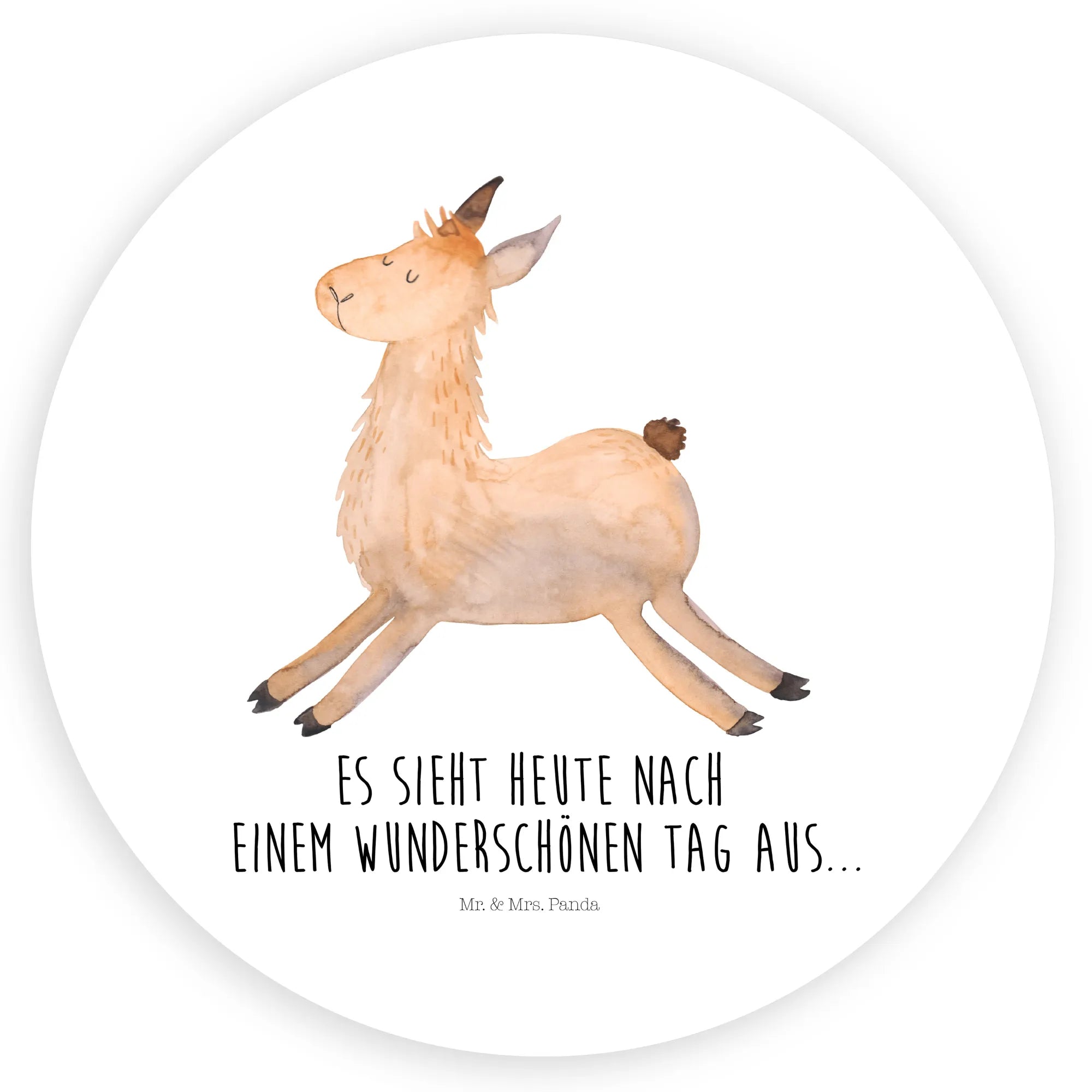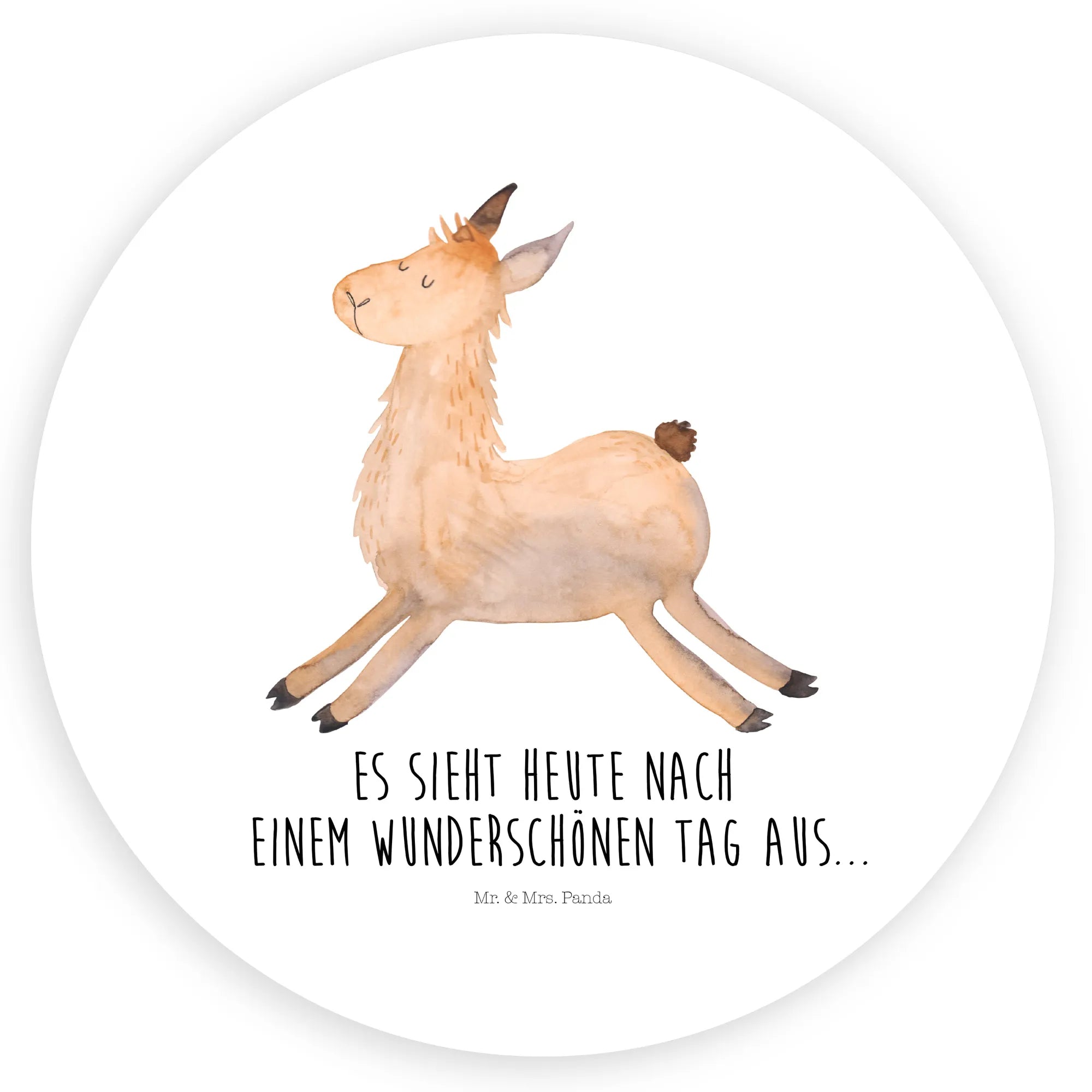 120mm okrągła naklejka lama Skakanie - 80mm okrągła naklejka - z napisem