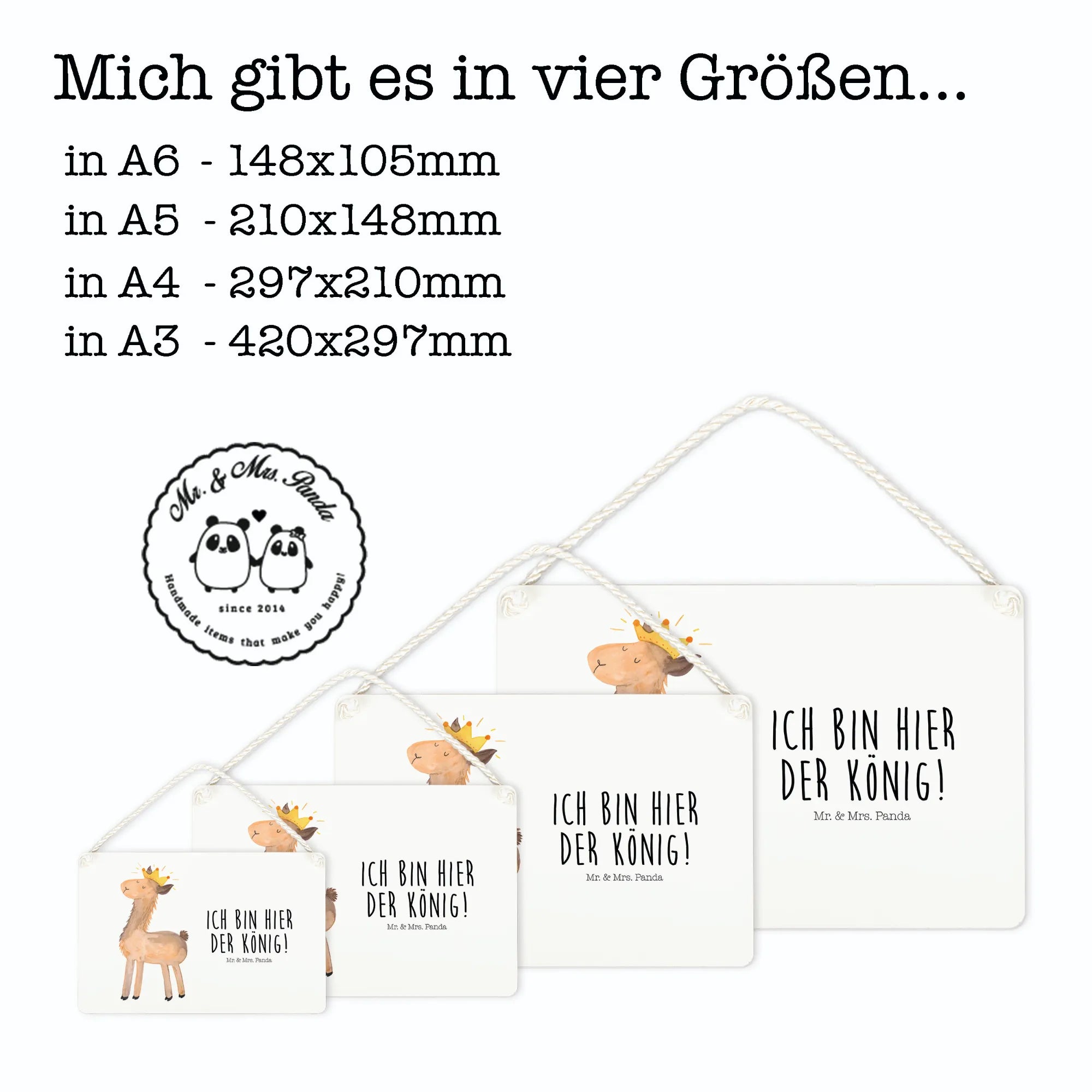 Dekoracyjny znak lama Król - DIN A5 - z napisem - biały