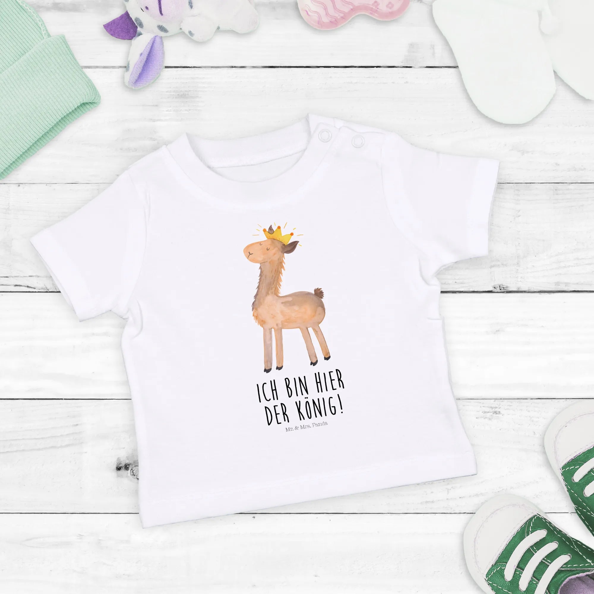 Organiczna koszulka dla niemowląt lama Król - 6. - 12. Monat - z napisem