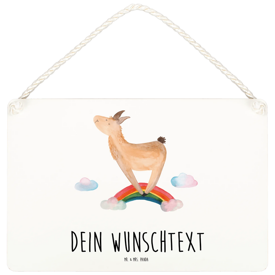 Das personalisierte Deko Schild "Lama Regenbogen" von Mr. & Mrs. Panda ist das perfekte Geschenk für alle Lama-Liebhaber und Freunde des humorvollen Designs. Wenn du auf der Suche nach einem besonderen Dekoelement für dein Zuhause bist, ist dieses Schild genau das Richtige!