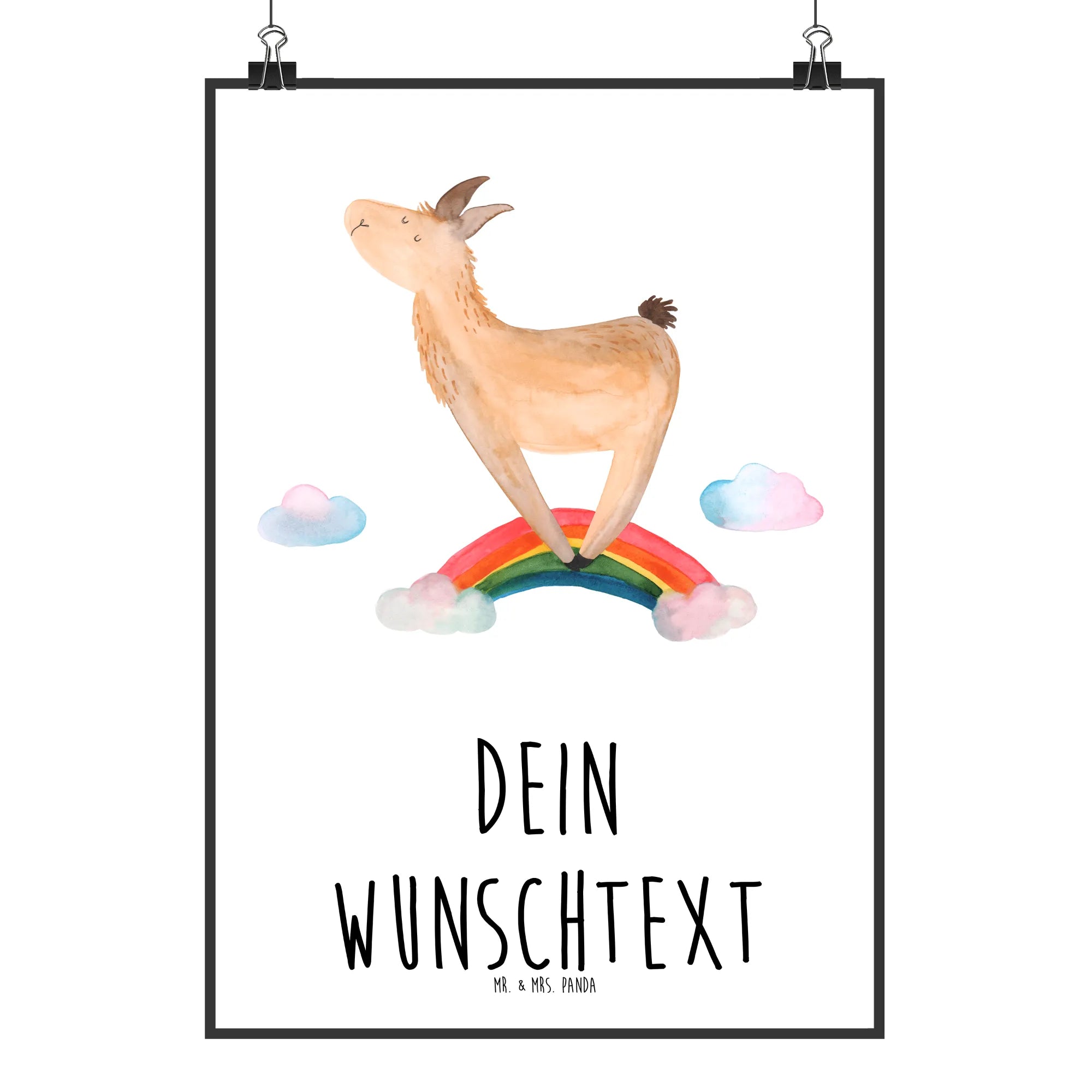 Entdecke unser personalisiertes Poster mit dem fröhlichen Lama im Regenbogen! Diese einzigartige Wanddeko von Mr. & Mrs. Panda bringt Farbe und Freude in jedes Zimmer. Egal ob im Kinderzimmer, im Klassenzimmer oder in deinem eigenen Schlafzimmer, dieses Poster wird überall zum Blickfang.