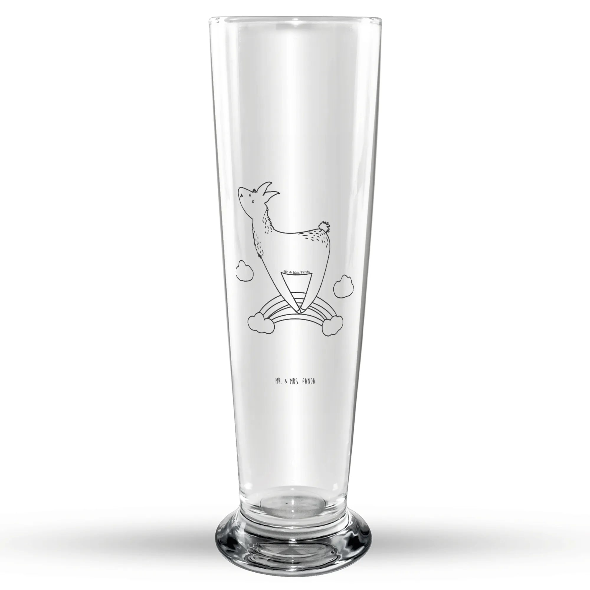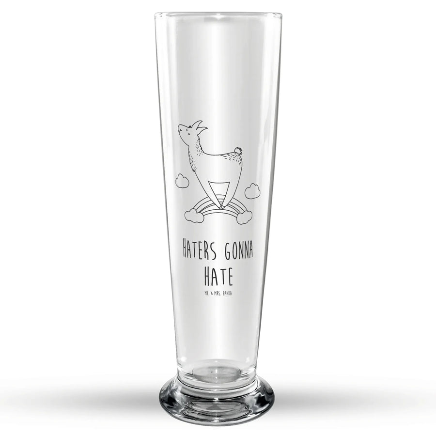 Das hochwertige Bierglas hat eine Füllmenge von 300 ml und ist somit ideal für ein kühles Bier oder ein erfrischendes Radler. Die wunderschöne Lasergravur mit dem süßen Lama, das über einen Regenbogen hüpft, ist ein echter Hingucker und wird zum Gesprächsstoff auf jeder Party.