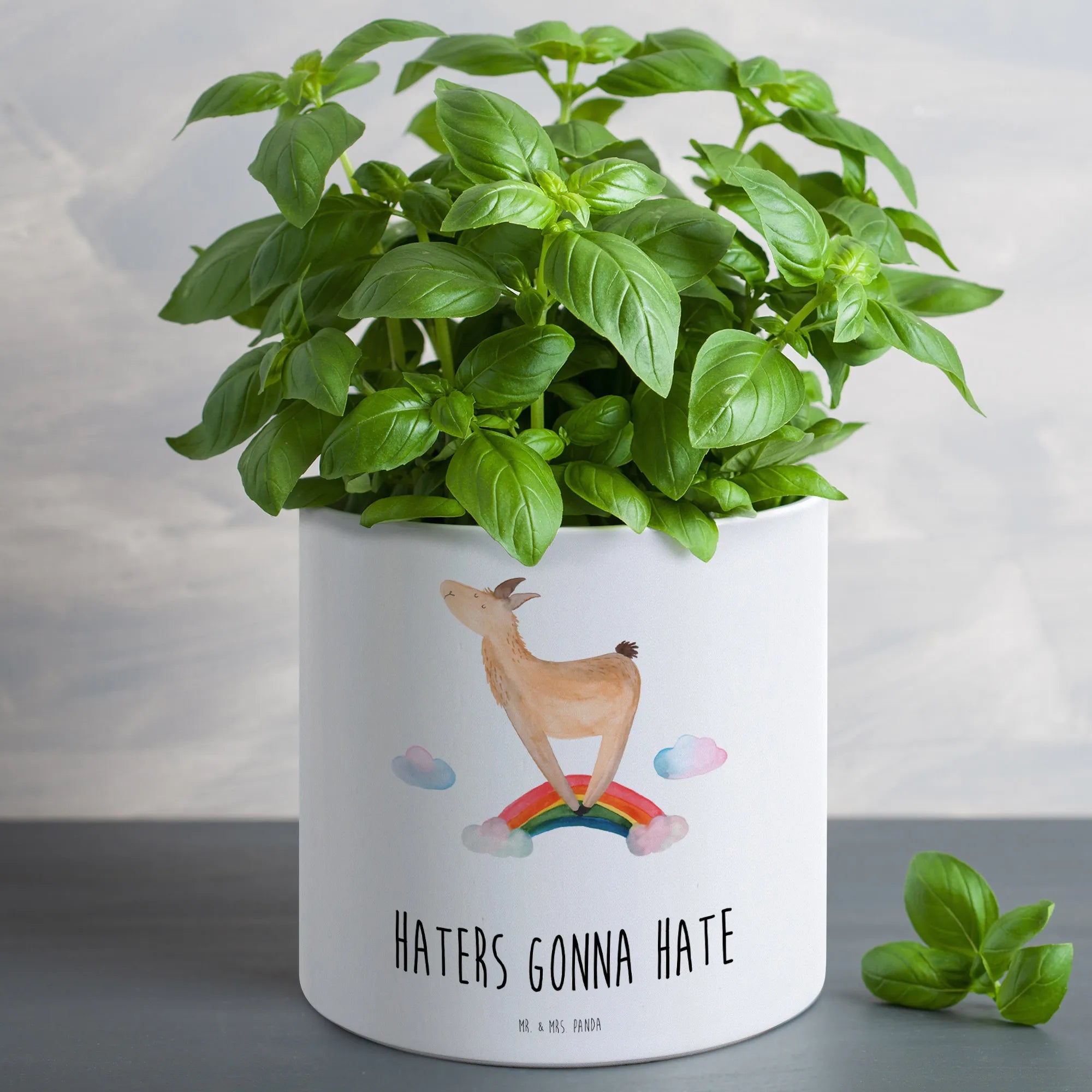 Wenn du Lamas, Alpacas und all die schönen Dinge des Lebens liebst, dann ist dieser Blumentopf ein absolutes Must-have für dich! Lass dich von der positiven Energie des Lama Regenbogens anstecken und bring das gute Gefühl direkt in dein Zuhause! Perfekt auch für Hobbygärtner und Pflanzenliebhaber, die mit viel Hingabe ihre Pflanzen kultivieren. Jeder Topf von Mr. & Mrs. Panda erzählt seine eigene Geschichte und wird mit Liebe und Sorgfalt gestaltet.