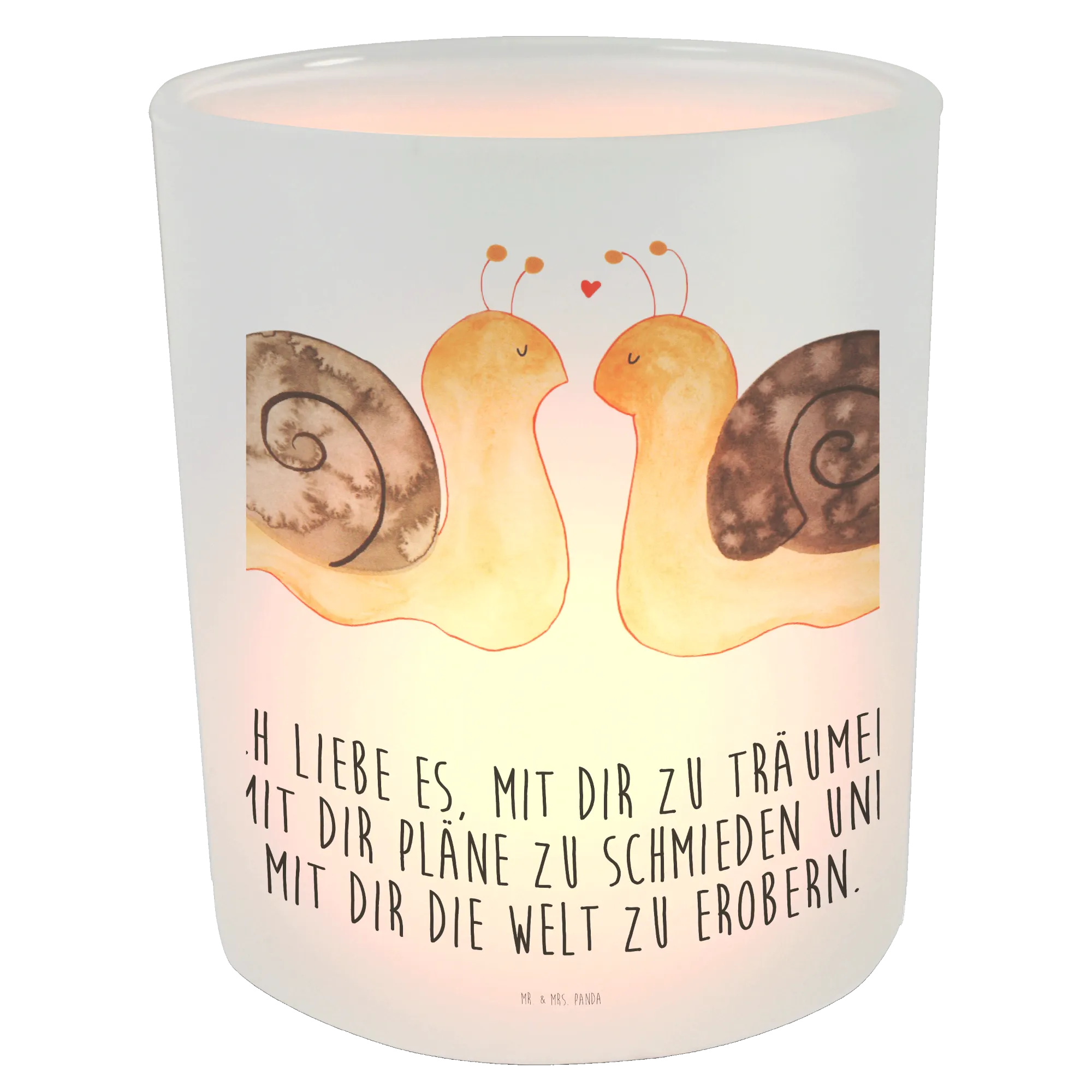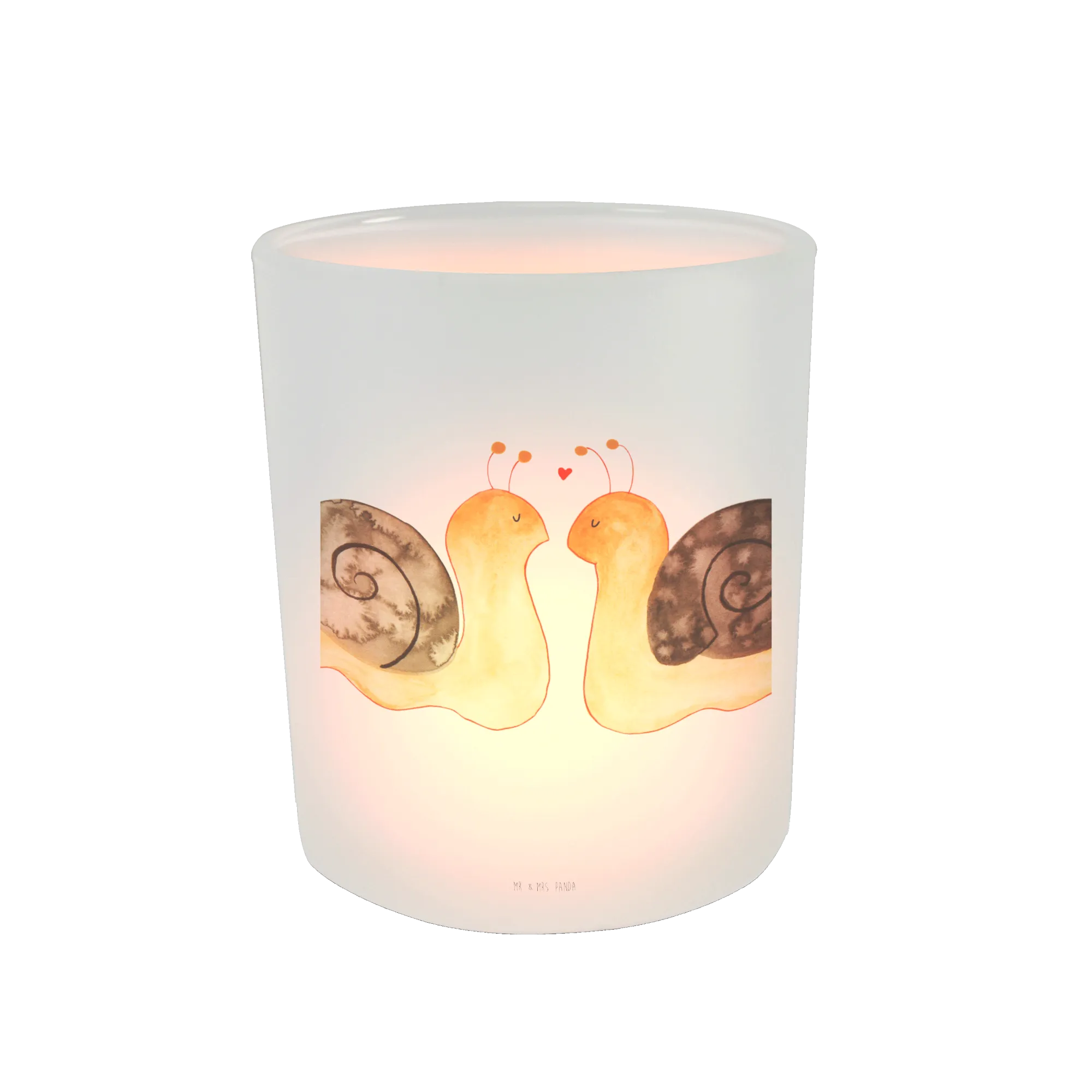 Entdecke das zauberhafte Windlicht in der Kollektion Liebe von Mr. & Mrs. Panda, perfekt für die romantischsten Anlässe! Mit dem schönen Motiv der Schnecken Liebe begeistert dieses Windlicht nicht nur mit seinem charmanten Design, sondern schafft auch eine gemütliche Atmosphäre.