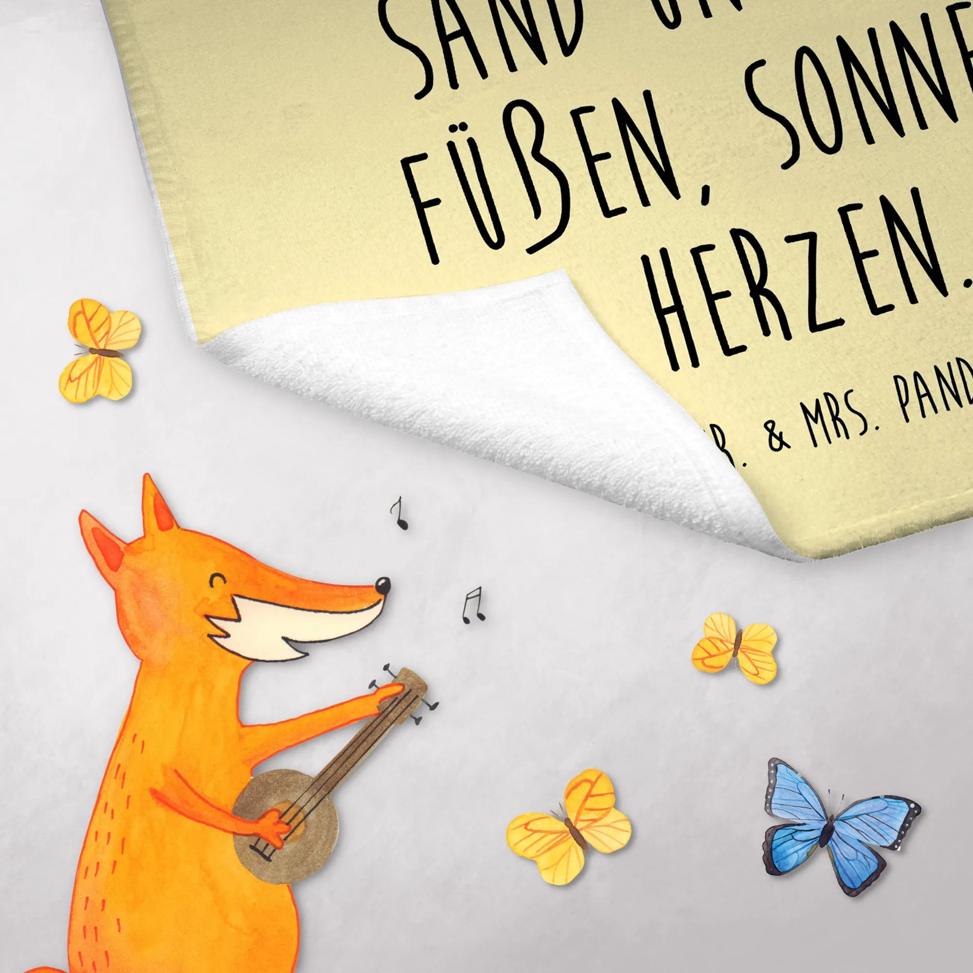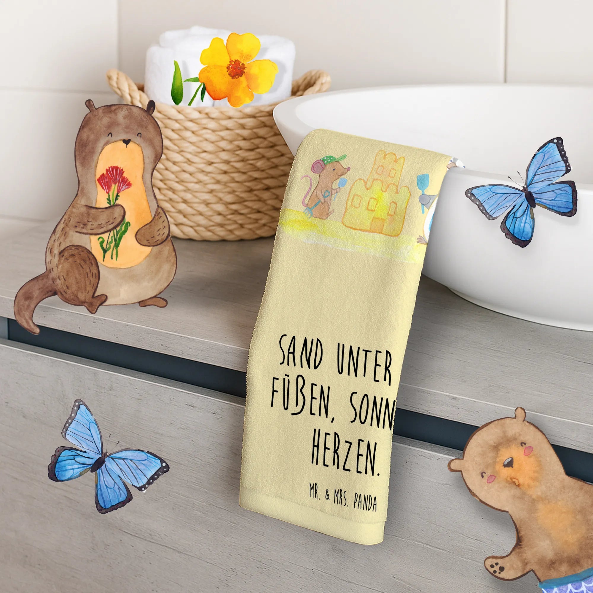 Ein liebevolles Gästehandtuch von Mr. & Mrs. Panda – perfekt für alle, die Sommer, Meer & Strand lieben. Unser fröhliches Design in sanftem Pastellgelb ist liebevoll gestaltet und trägt den kleinen Spruch: „Sand unter den Füßen, Sonne im Herzen.“ Dieses Gästehandtuch bringt Urlaubsgefühle direkt in dein Badezimmer oder Gäste-WC. 🌞🏖️
