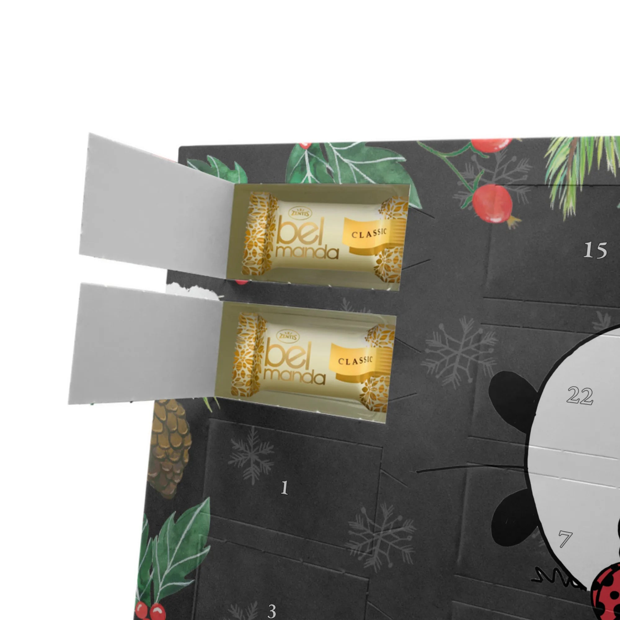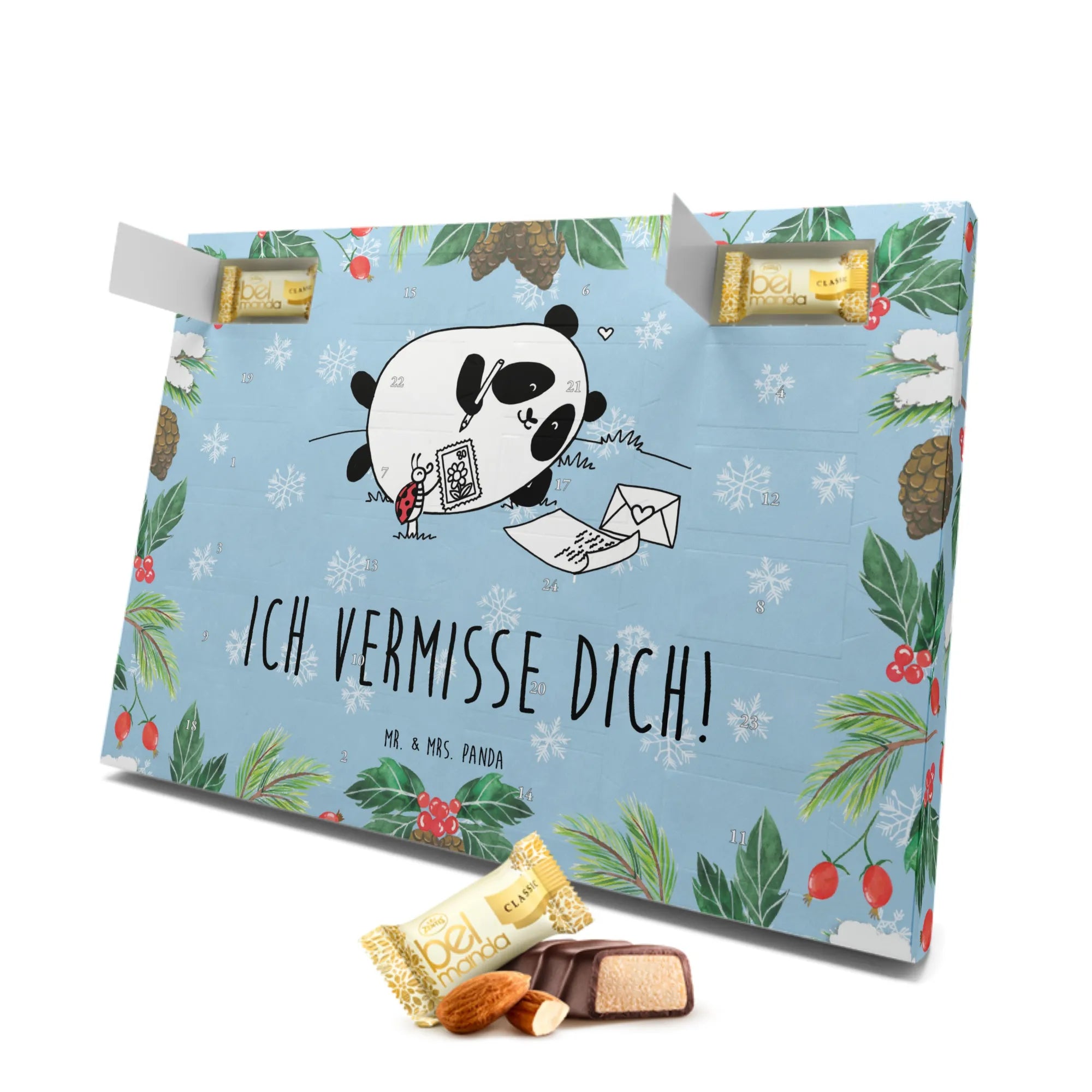 Mit einem liebevollen Design, das einen süßen Panda zeigt, der einem Marienkäfer einen Liebesbrief schreibt, bringt dieser Adventskalender nicht nur Vorfreude auf Weihnachten, sondern erinnert auch auf charmante Weise an die Menschen, die wir vermissen.