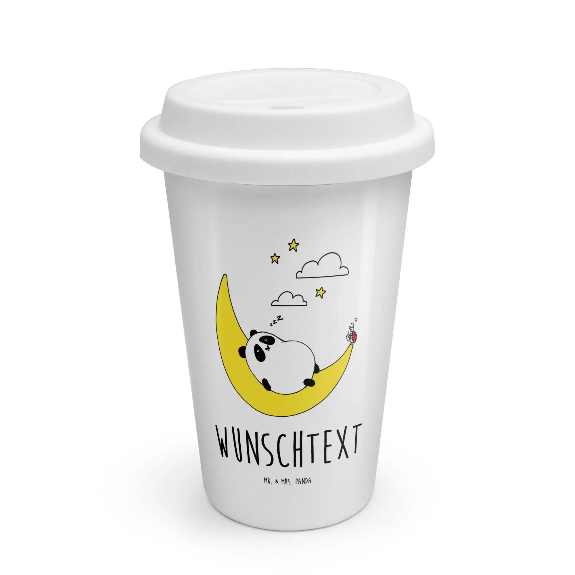 Der personalisierte To Go Becher "Easy & Peasy Take it Easy" von Mr. & Mrs. Panda ist der perfekte Begleiter für alle, die ihren Kaffee oder Tee auch unterwegs in vollen Zügen genießen möchten. Mit einem liebevollen Design, das einen niedlichen Panda zeigt, der auf einer Mondsichel schläft, und einem kleinen Marienkäfer, der ihm Geschichten erzählt, bringt dieser Becher jeden Morgen Freude.
