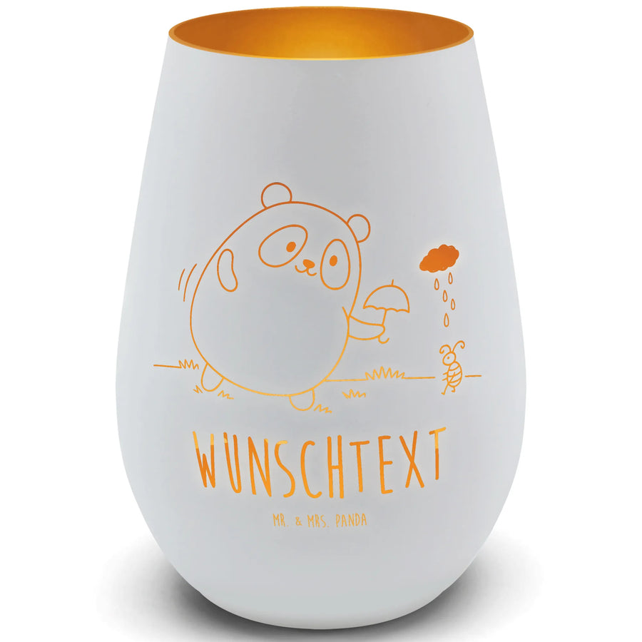 Złoty świecznik spersonalizowany Panda Solidarność - biały