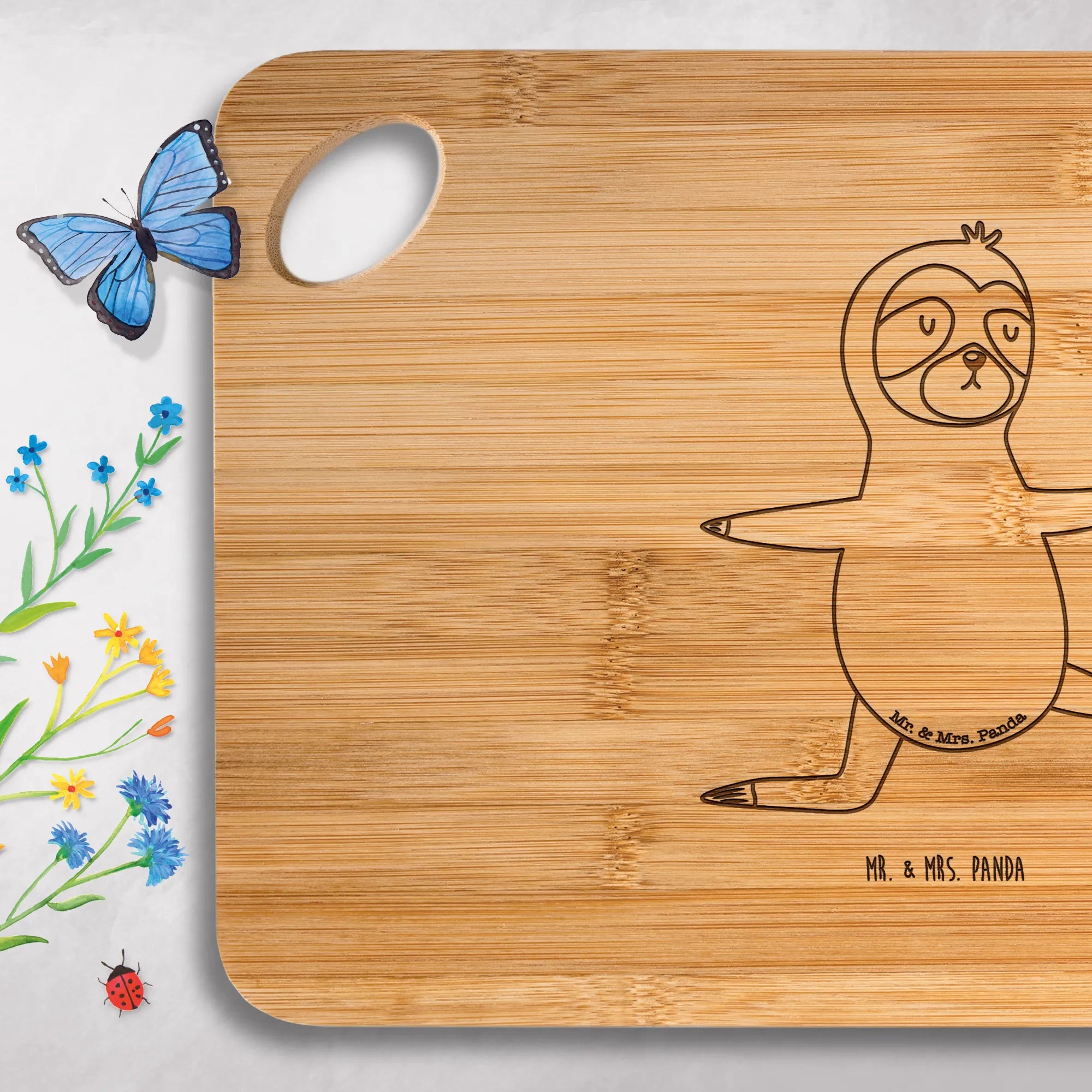 Das Schneidebrett Faultier Yoga aus der Faultier - Kollektion von Mr. & Mrs. Panda bringt Gelassenheit direkt auf deinen Frühstückstisch. Das von Mrs. Panda handgezeichnete Faultier sitzt zufrieden in der Krieger-Pose und erinnert dich liebevoll daran, auch mal tief durchzuatmen. Dieses Holzbrett eignet sich perfekt als Frühstücksbrett, Vesperbrett oder Servierbrett für Käse und Tapas und ist ein echter Blickfang in jeder Küche.