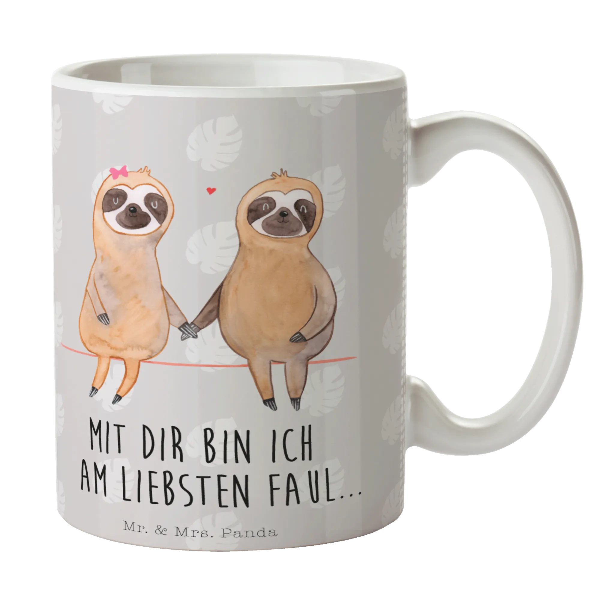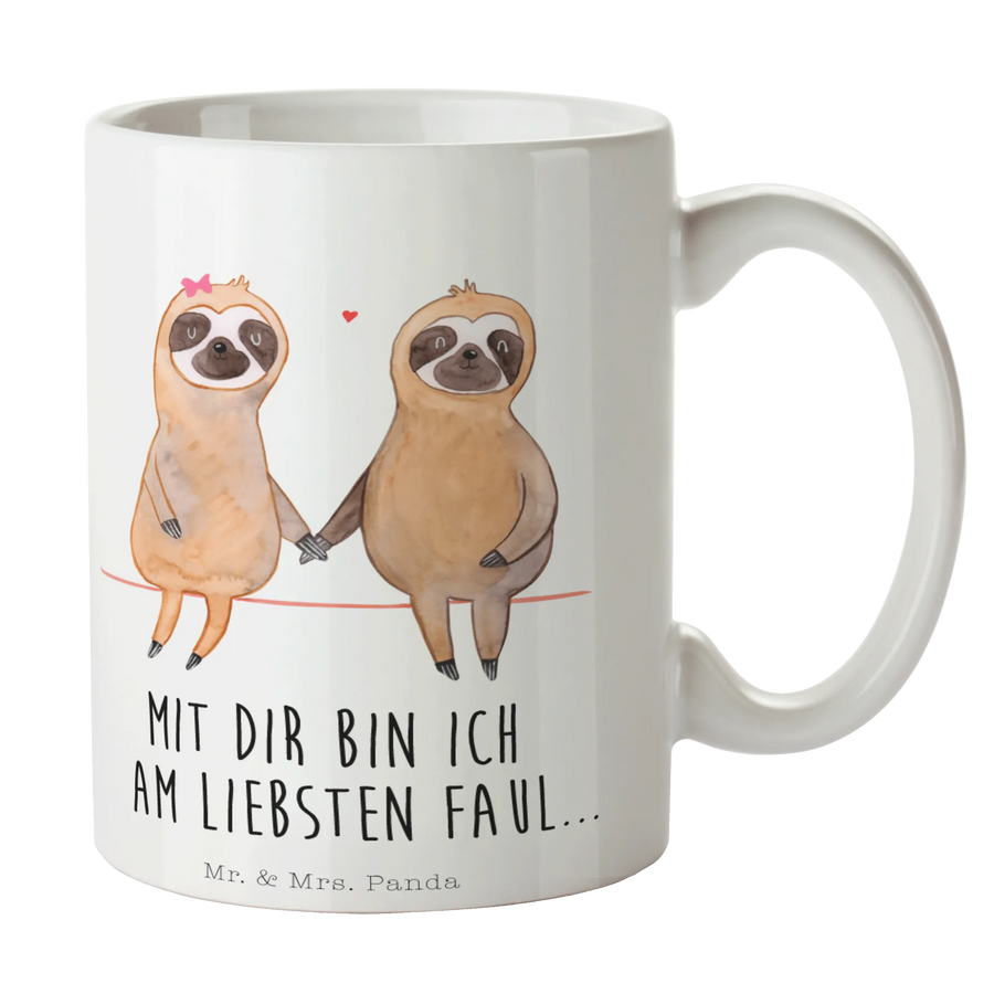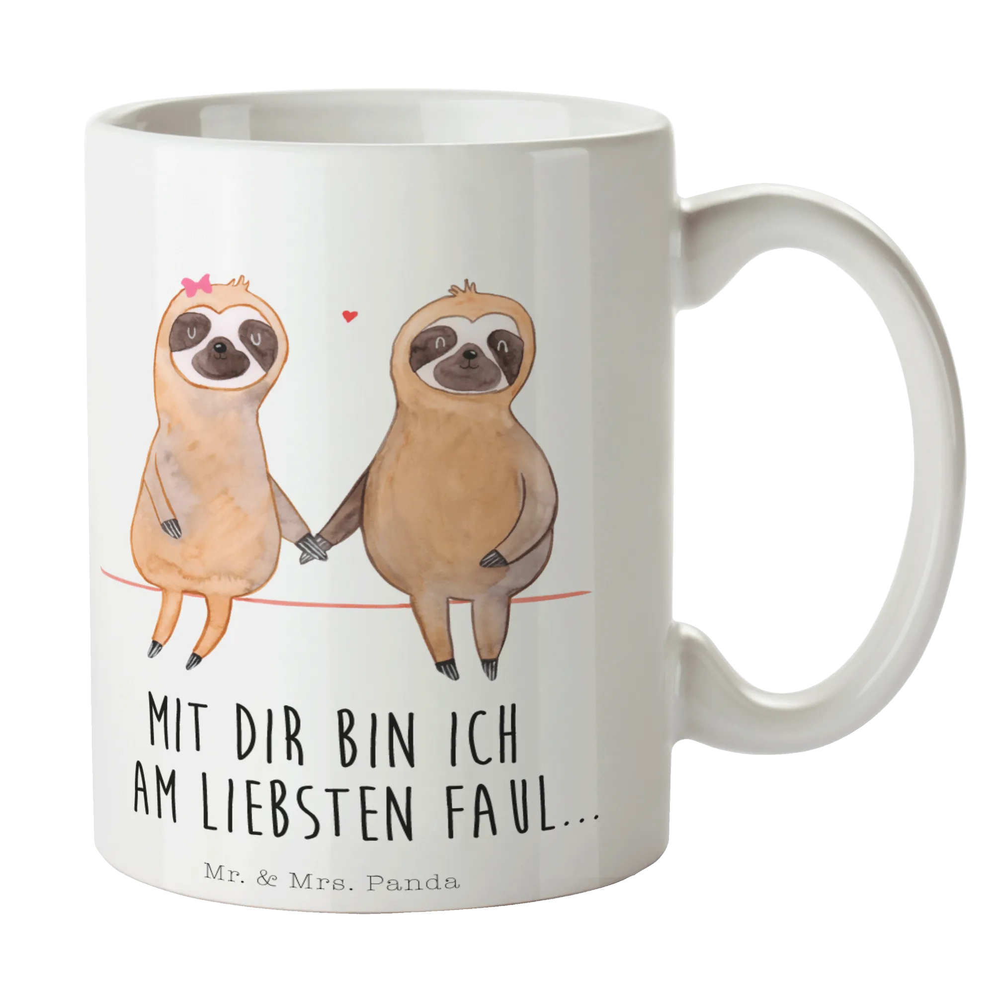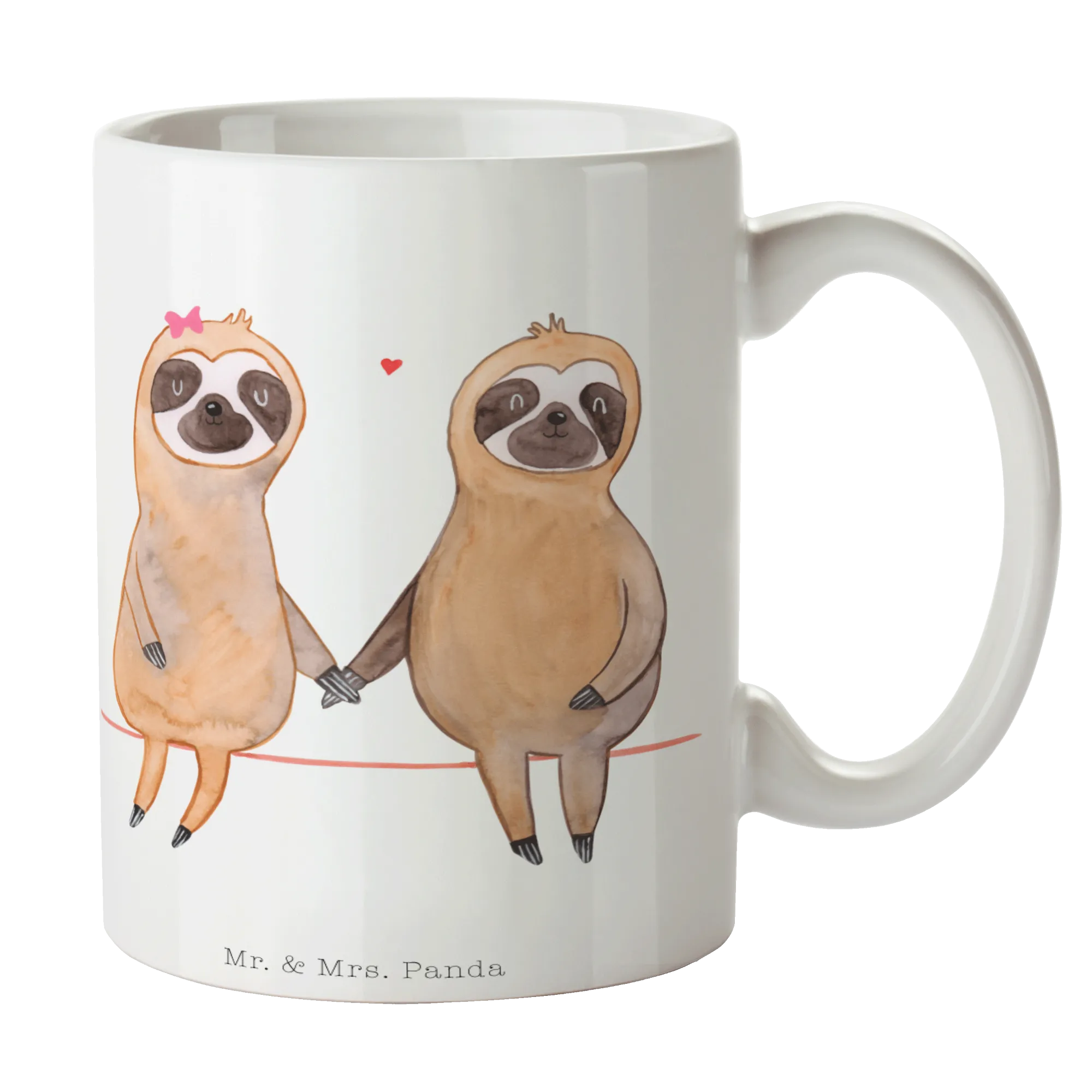 Kubek leniwiec para - z napisem - Ceramika - Biały