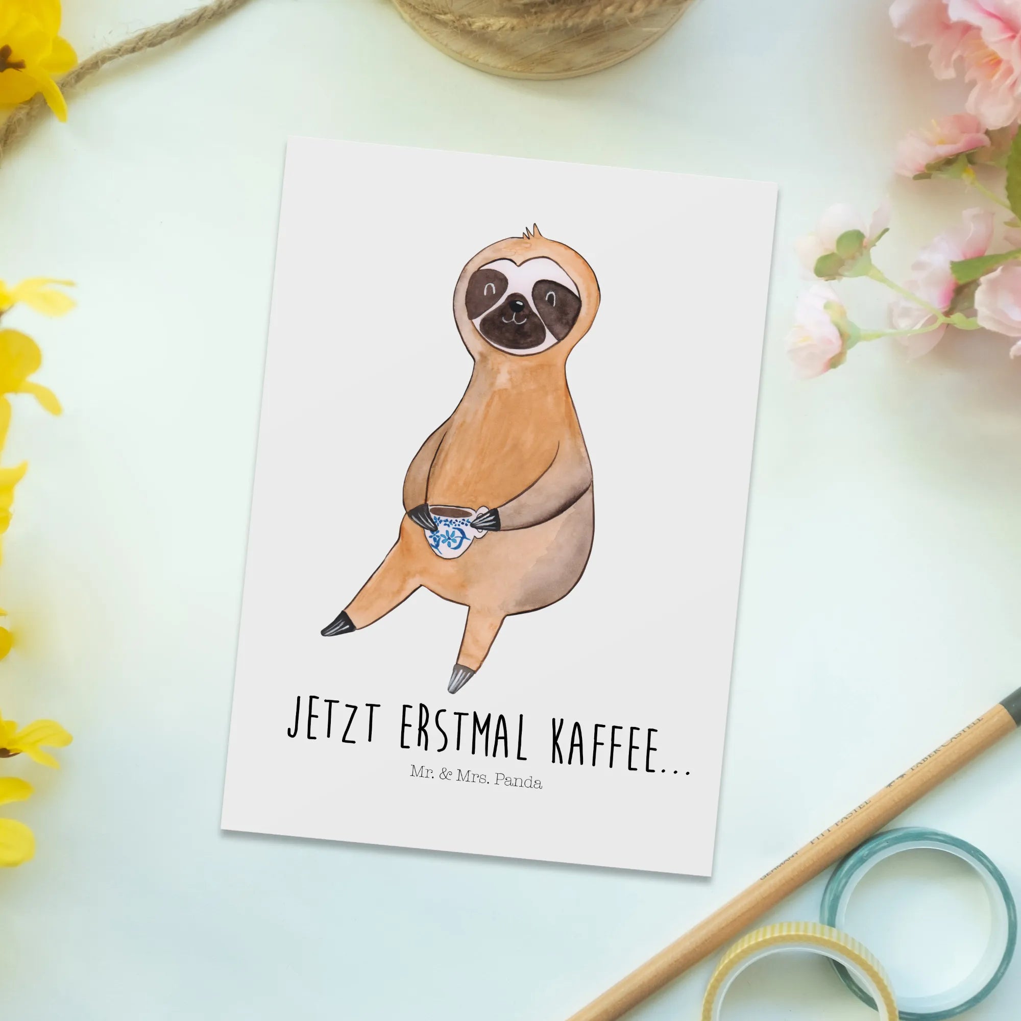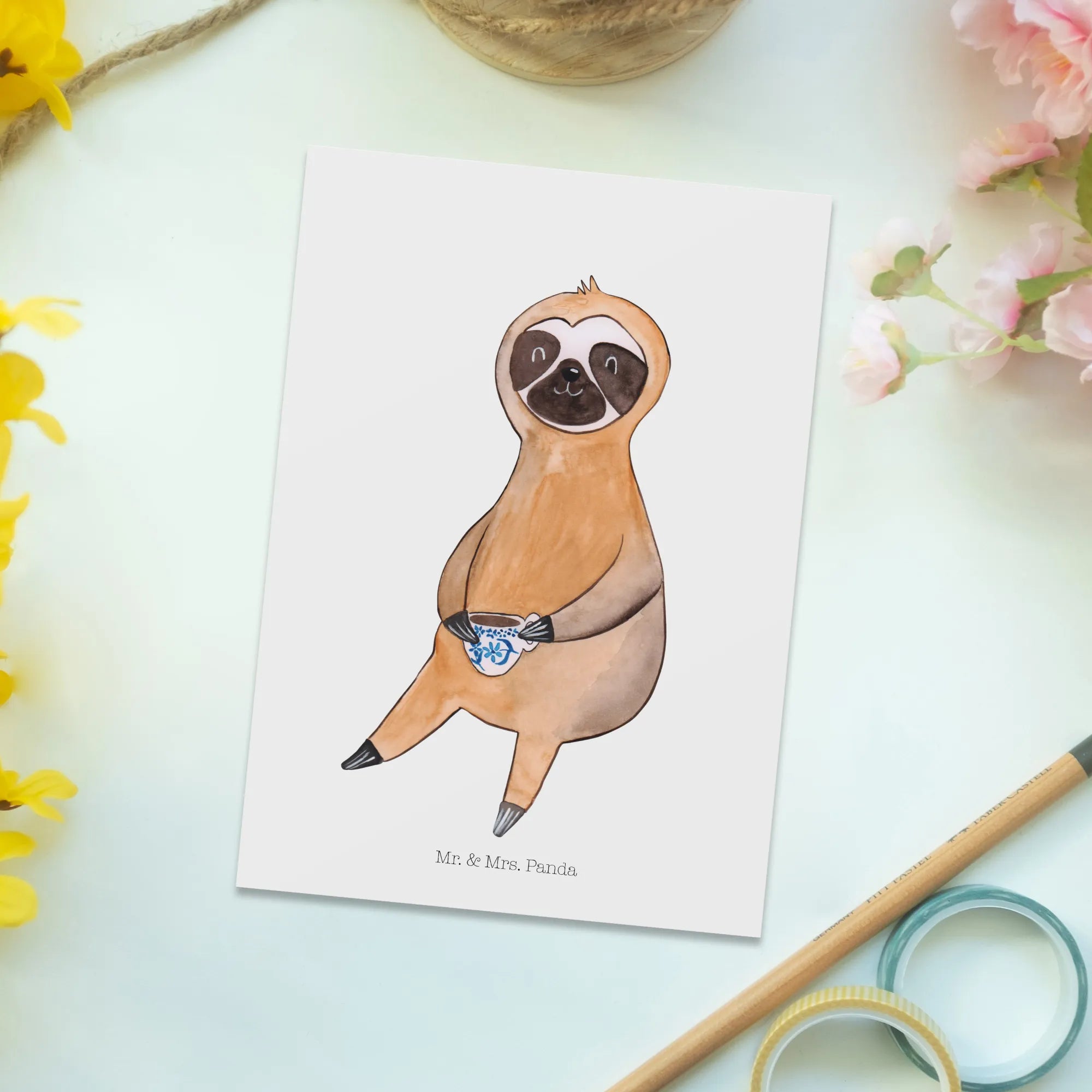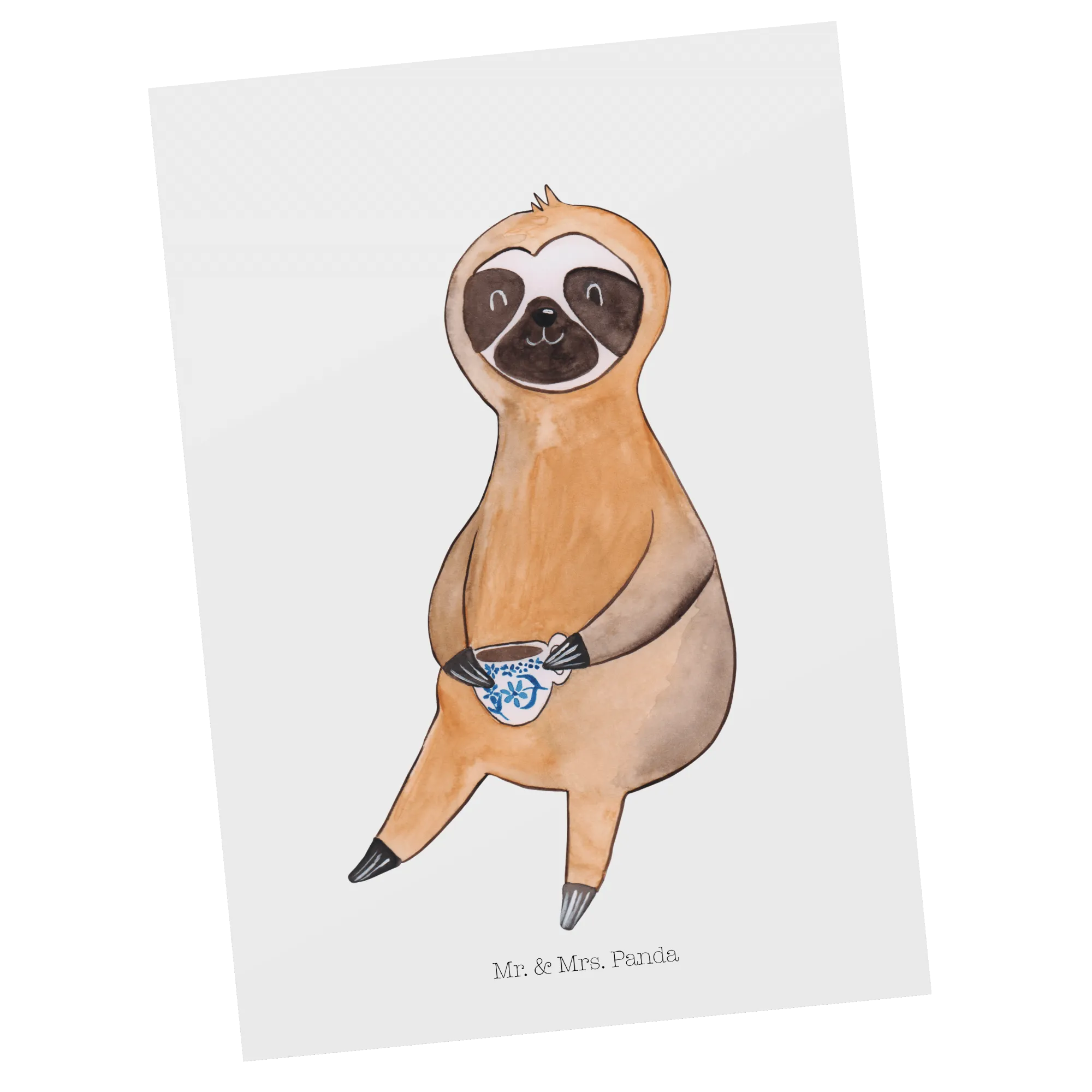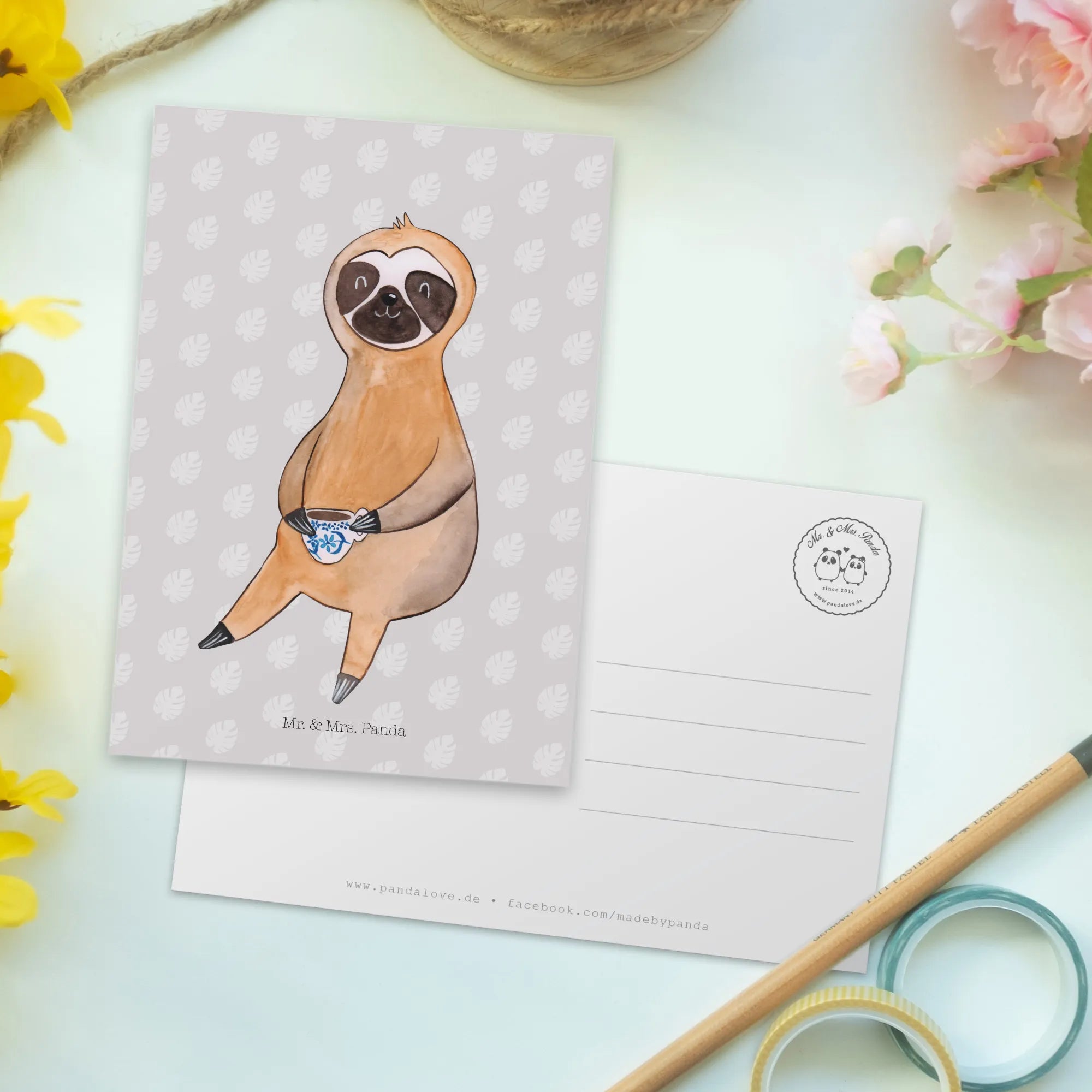 Pocztówka Leniwiec kawa - z napisem - Pastelowy szary