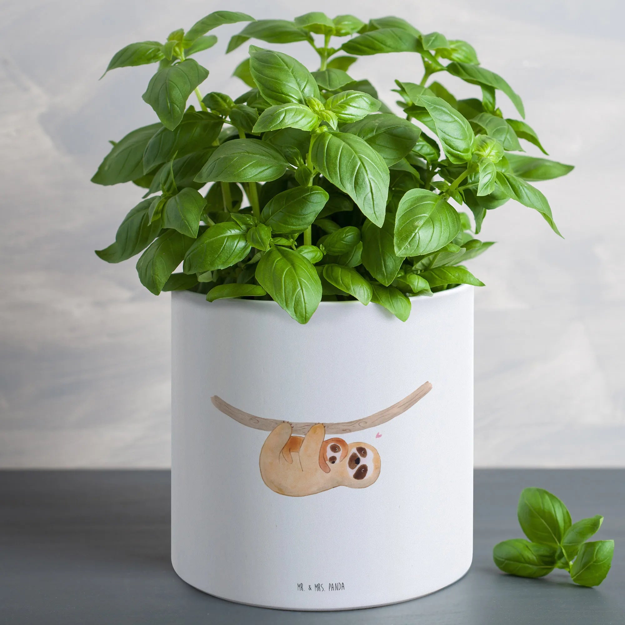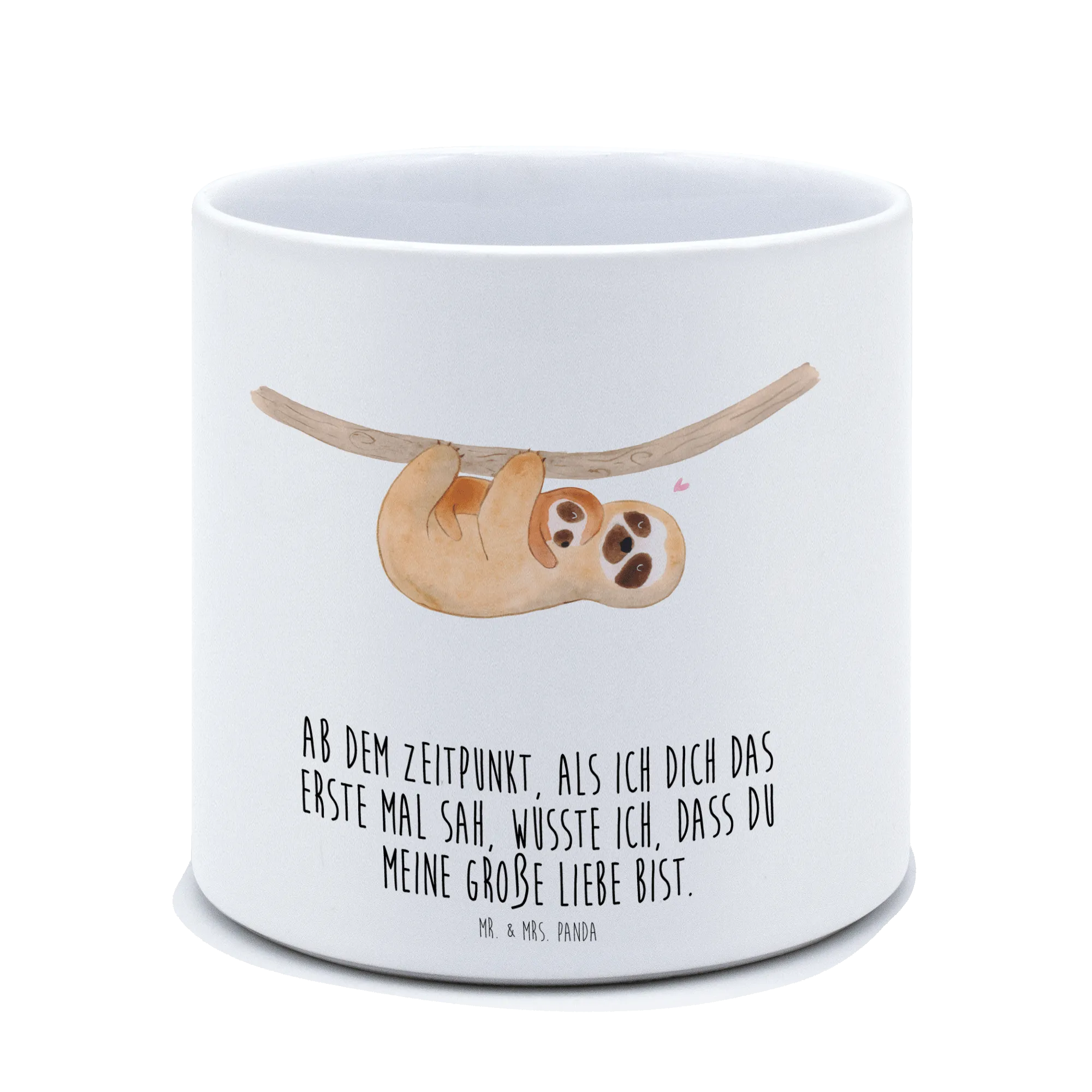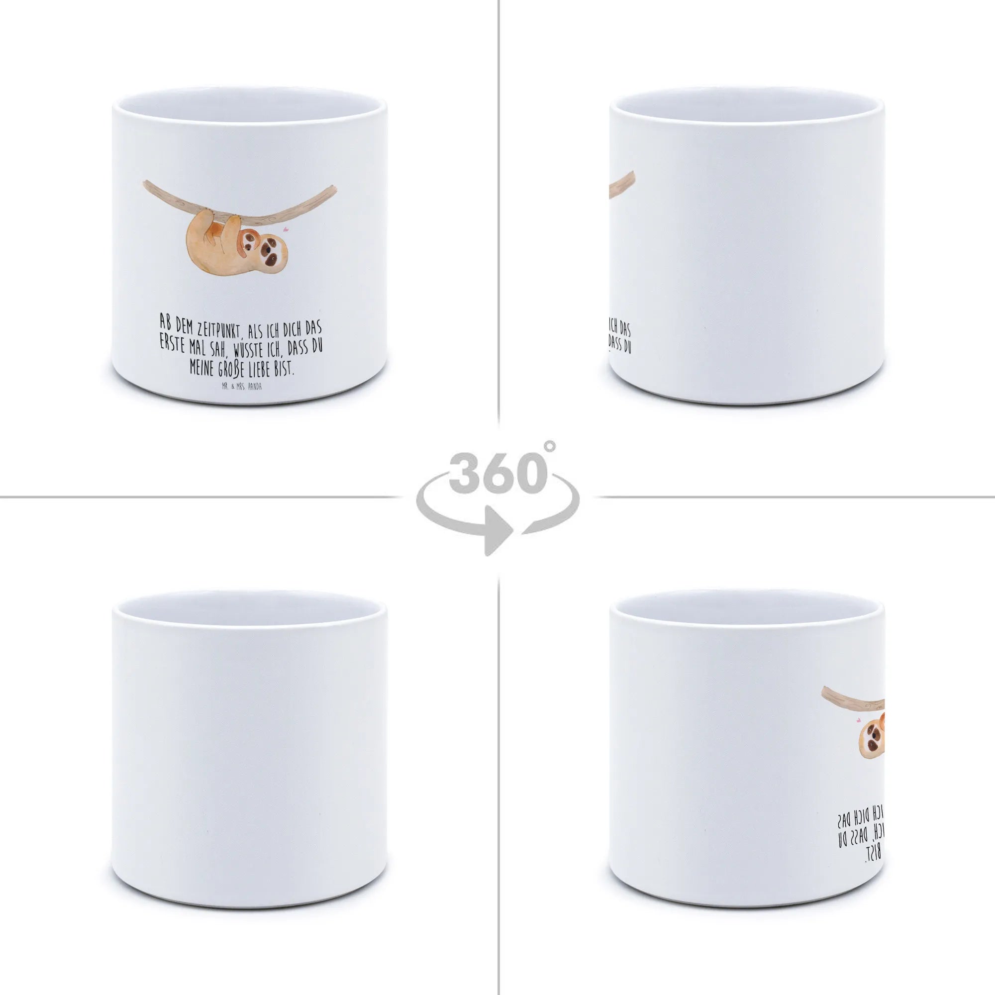 Das Motiv ist aus der beliebten Faultier-Kollektion von Mr. & Mrs. Panda und wird mit einem süßen Spruch verziert: "Ab dem Zeitpunkt, als ich dich das erste Mal sah, wusste ich, dass du meine große Liebe bist." Dies macht den Blumentopf nicht nur zu einem nützlichen Gegenstand, sondern auch zu einem liebevollen Ausdruck der Zuneigung. Verschenke diesen einzigartigen Blumentopf zu besonderen Anlässen wie zur Geburt eines Kindes, einem Geburtstag oder einfach als kleine Aufmerksamkeit für einen lieben Menschen.