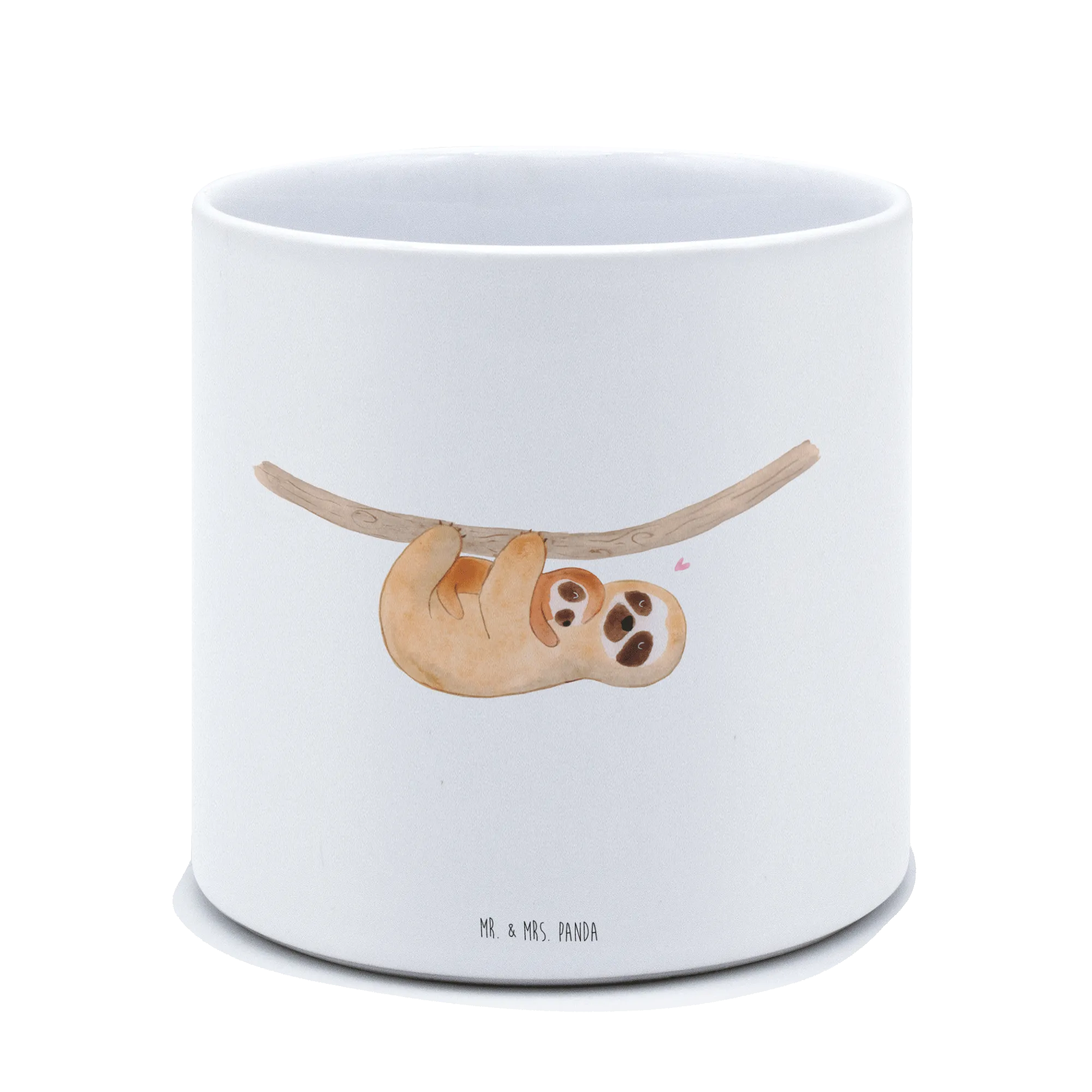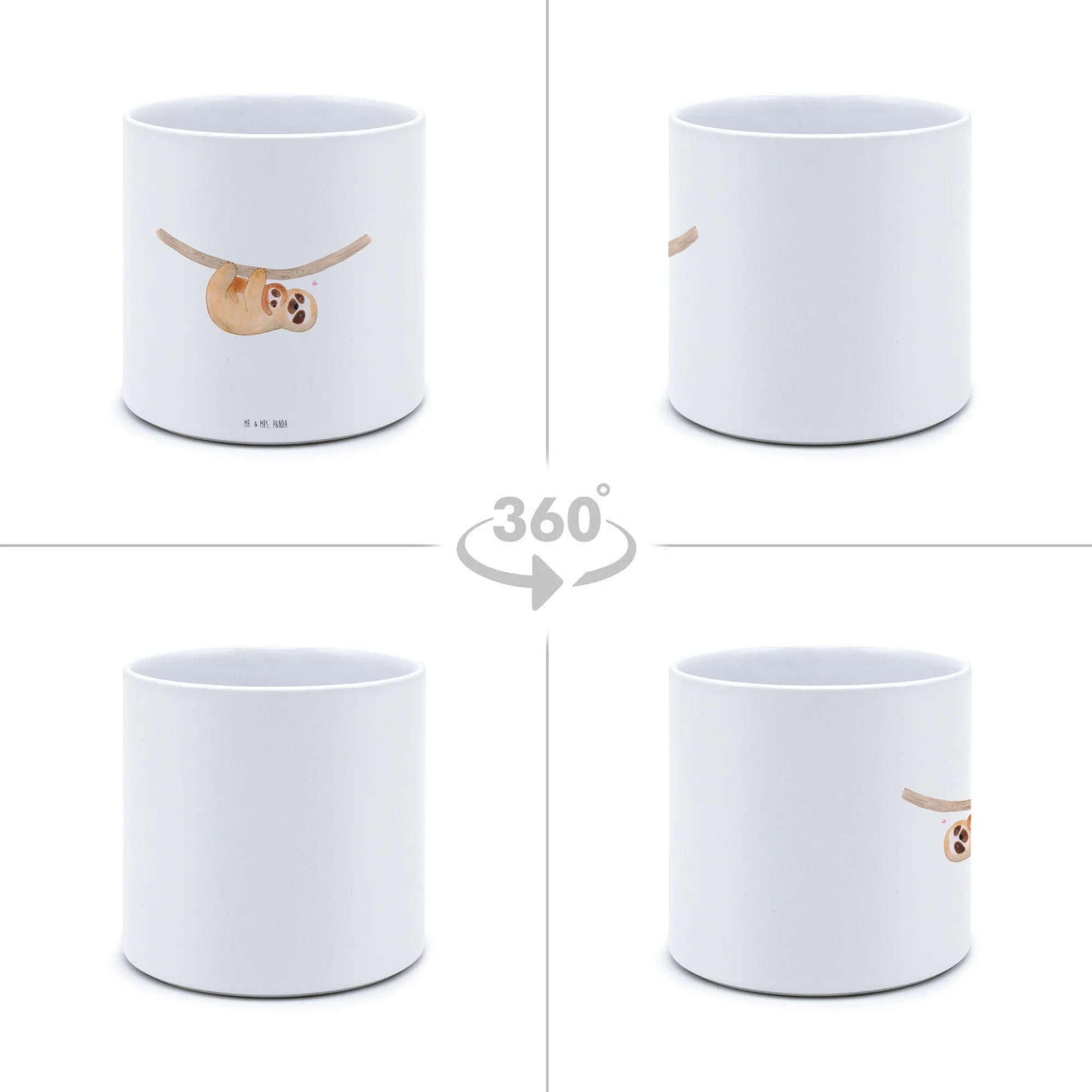 Dieser XL Blumentopf von Mr. & Mrs. Panda ist nicht nur ein praktisches Accessoire für deine Pflanzen, sondern auch ein liebevolles Deko-Element für dein Zuhause. Mit dem süßen Motiv eines Faultiers und seinem Baby strahlt dieser Blumentopf pure Zärtlichkeit und Liebe aus. Die liebevolle Handzeichnung zeigt, wie das Faultier an einem Ast hängt, während das kleine Faultierbaby zufrieden darauf schläft. Diese herzerwärmende Szene macht den Blumentopf zu einem perfekten Geschenk für frischgebackene Mamas, Schwangere oder einfach für alle, die Faultiere lieben!