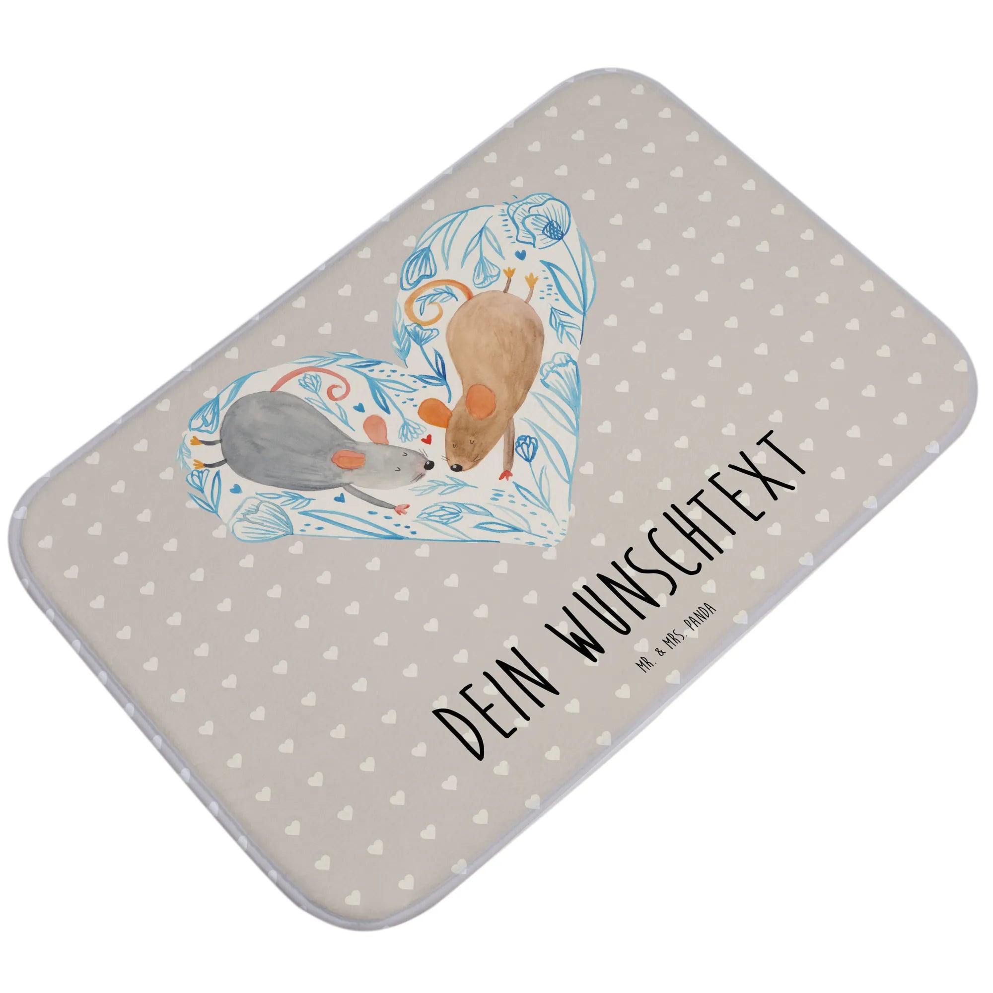 Unser personalisierter Badvorleger mit dem süßen Mäuse Herz Motiv ist das perfekte Geschenk für alle Verliebten! Ob zum Jahrestag, zur Verlobung, zur Hochzeit oder einfach als liebevolles Zeichen der Zuneigung, dieser Badteppich bringt ein Stück Liebe direkt in euer Badezimmer. Die beiden niedlichen Mäuse formen ein Herz und vermitteln die Botschaft "Wir zwei gegen den Rest der Welt." Ein besseres Liebesgeschenk kann es gar nicht geben!