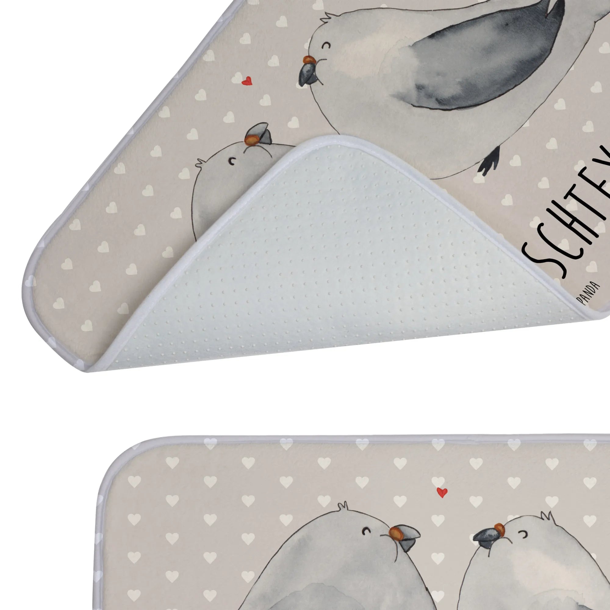 Personalisierte Badematte „Turteltauben Liebe“ – ein kleines, zauberhaftes Geschenk von Mr. & Mrs. Panda für alle Verliebten. Die zwei zärtlichen Turteltauben, das rote Herz und der liebevolle Slogan „Mit dir ist das Leben wunderschön.“ machen diese Badematte zu einem warmen Statement für Verbundenheit und Zuneigung. Perfekt für Jahrestag, Verlobung, Hochzeitstag oder einfach als Überraschung für deinen Partner oder deine Partnerin.