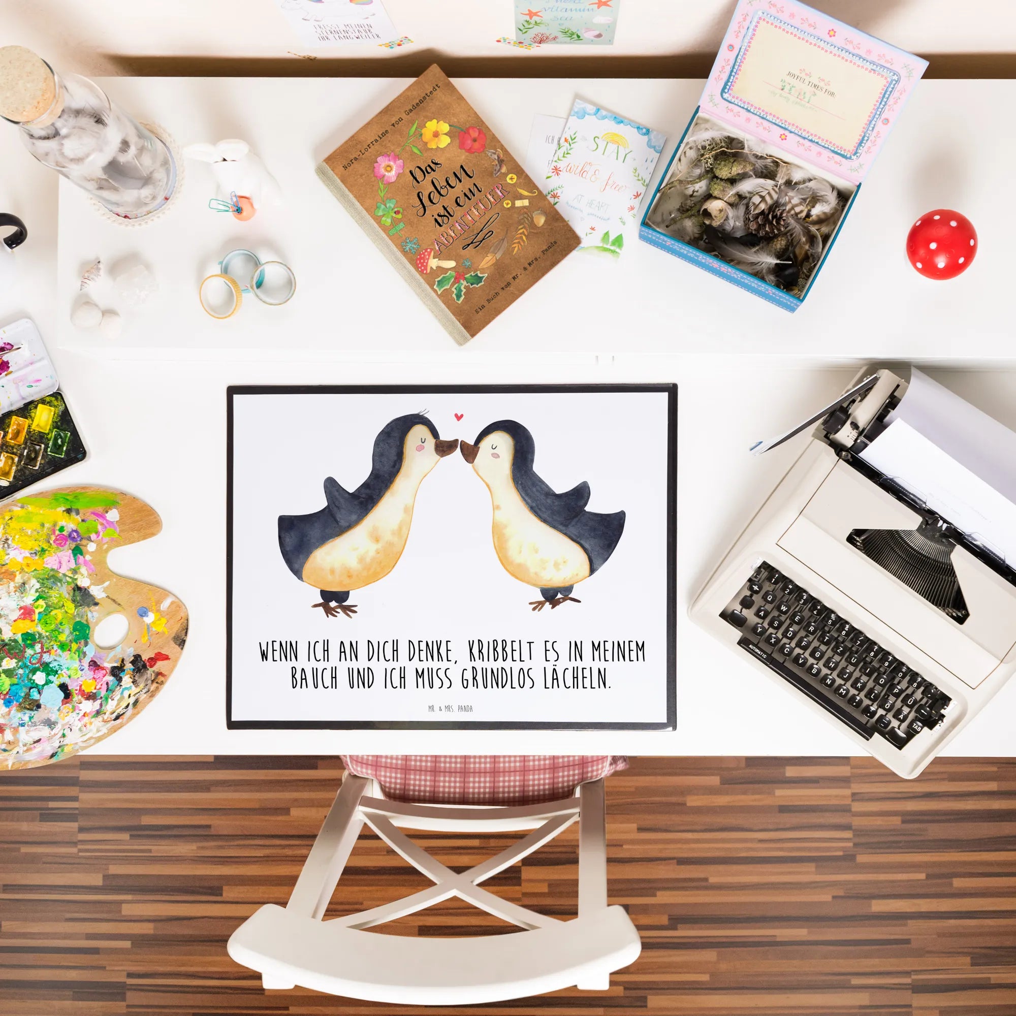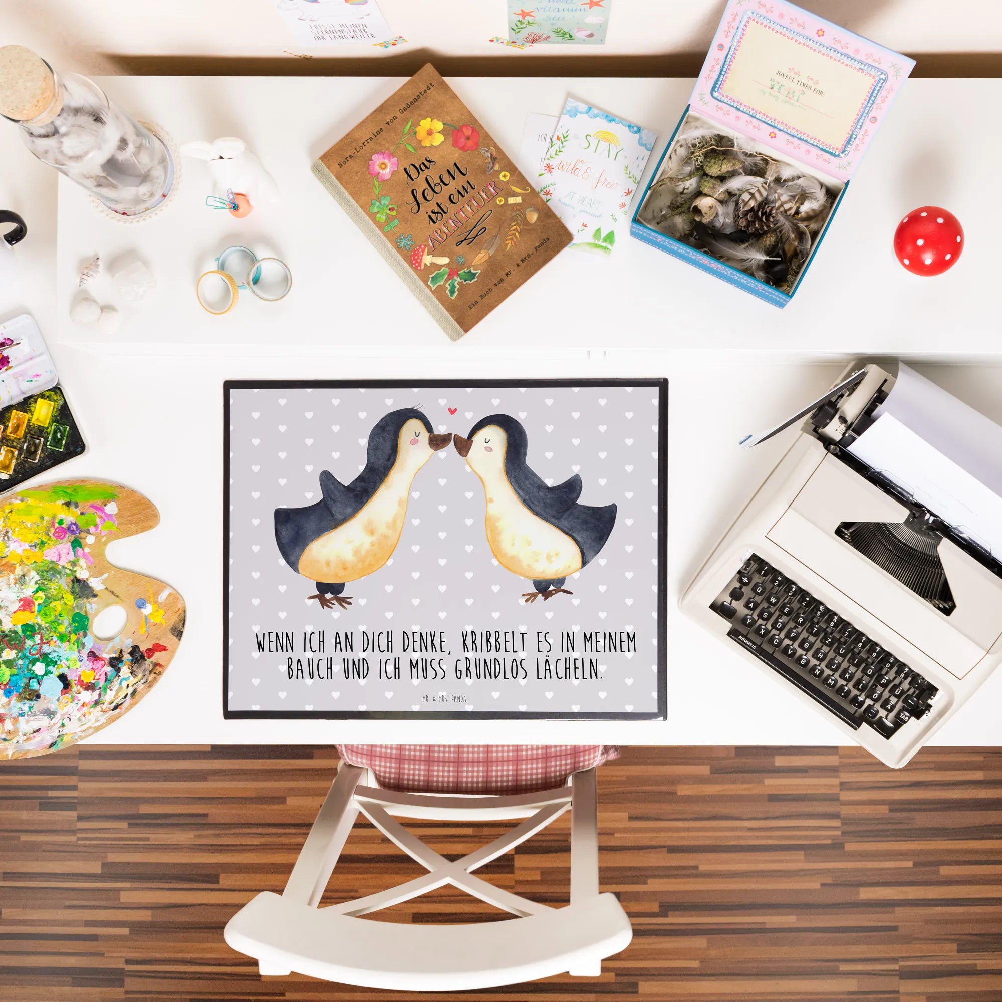 Podkładka na biurko Pingwiny Pocałunek - Pastelowy szary