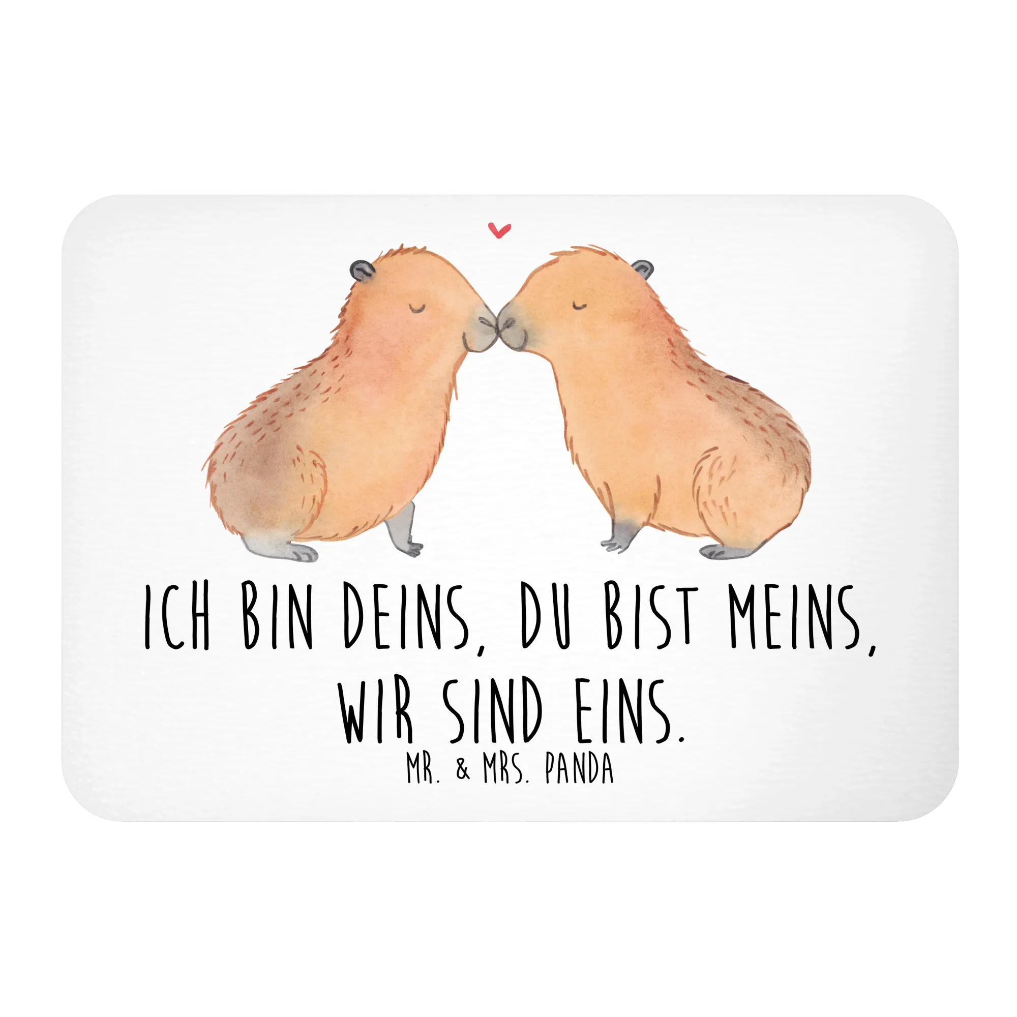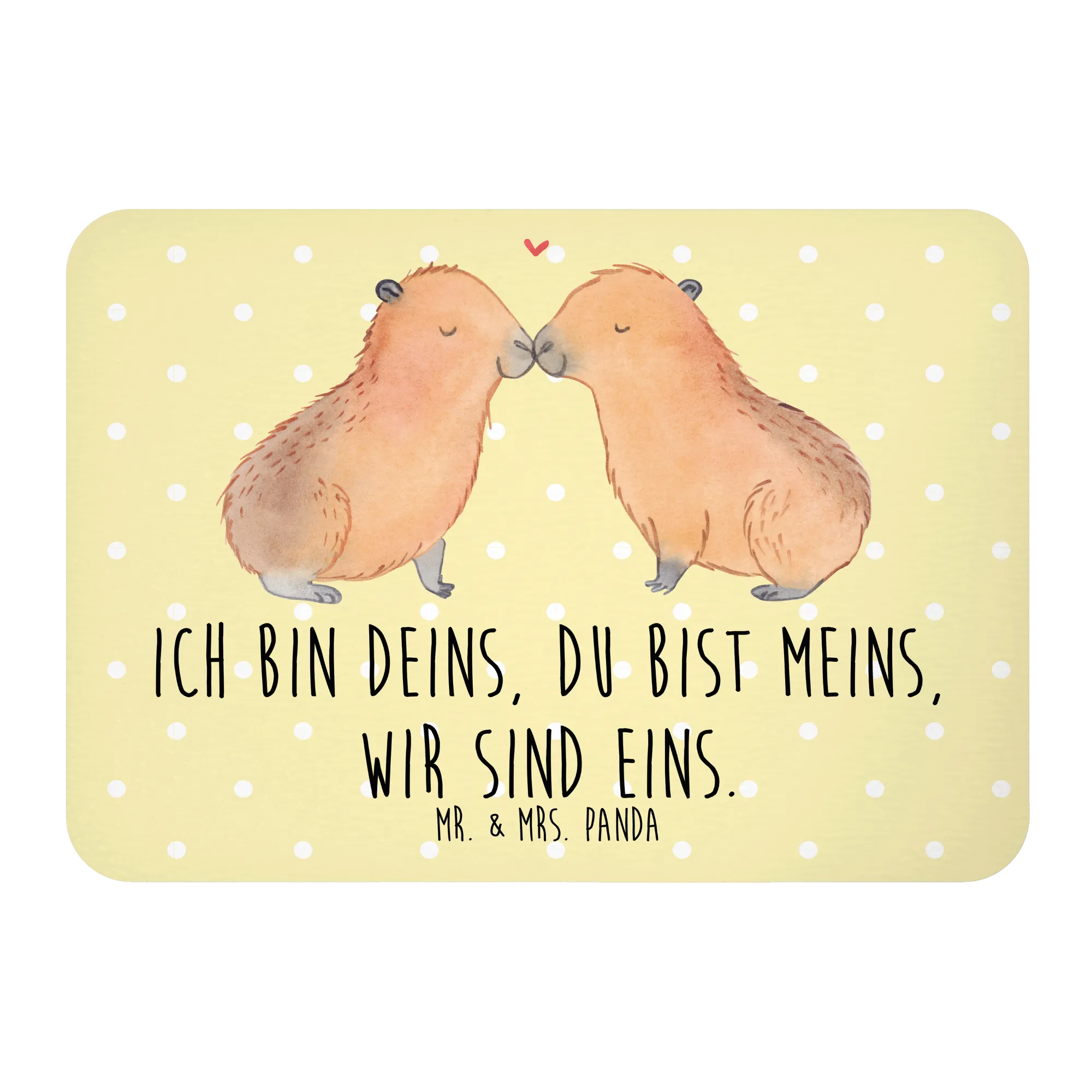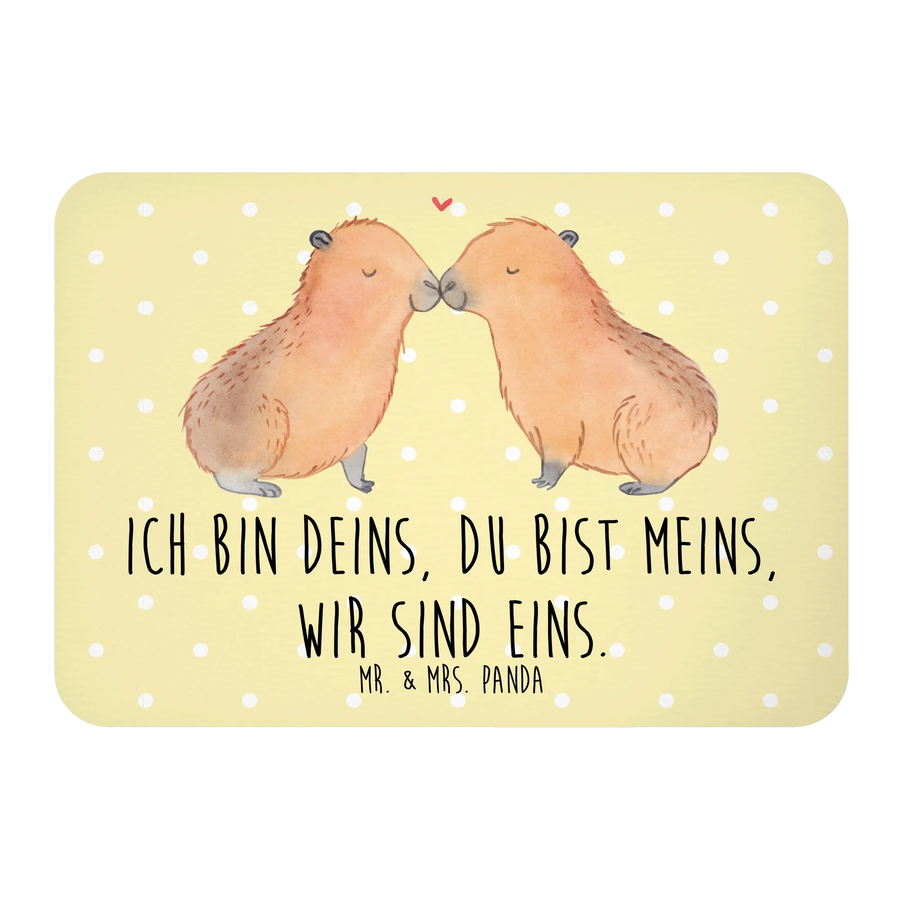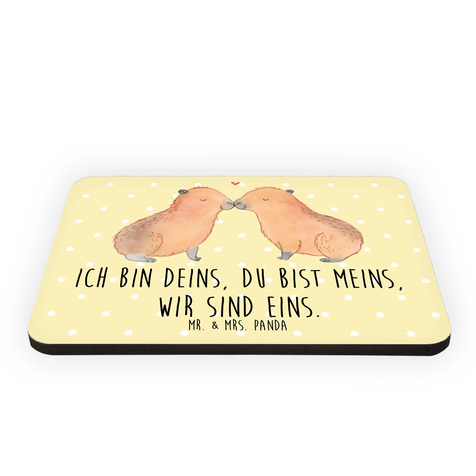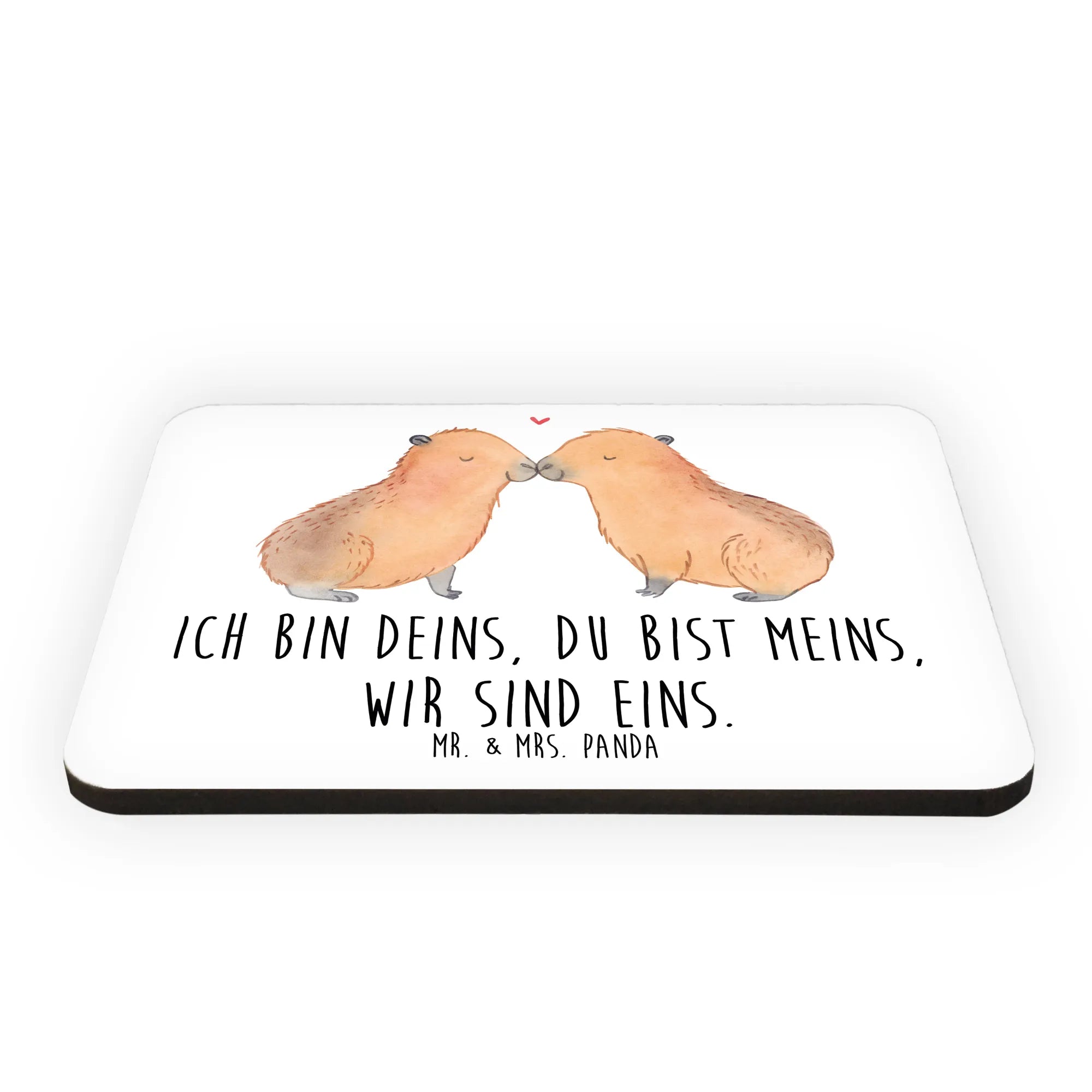 Du suchst nach dem perfekten Geschenk für deinen Lieblingsmenschen? Unser Kühlschrankmagnet "Capybara Liebe" ist genau das Richtige für dich! Handgezeichnet von Mr. & Mrs. Panda, zeigt dieser Magnet ein traumhaftes Liebespaar aus kuscheligen Capybaras, die sich innig küssen. Ihre geschlossenen Augen und die sanften, braunen Töne zaubern sofort ein Lächeln auf dein Gesicht. Über ihnen schwebt ein kleines, rotes Herzchen, das ihre besondere Zuneigung symbolisiert – ein wahrhaft romantisches Geschenk für jeden Anlass!